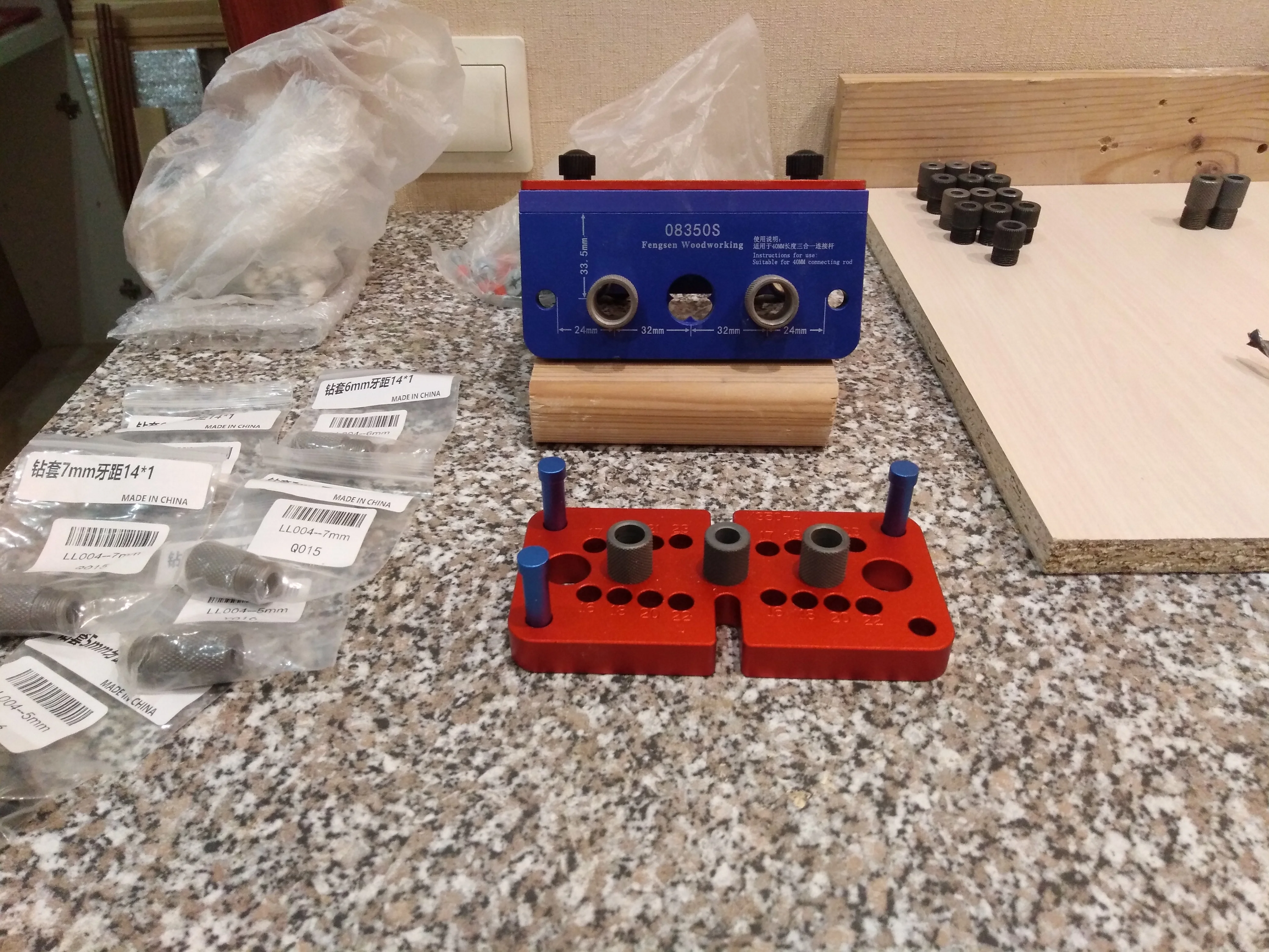 Пришло чуть быстрее месяца, сам аппарат качественный, втулки закручиваются хорошо, есть небольшой люфт 0,4 миллиметра внутри втулок, без него конечно было бы идеально, непонятно зачем он там, это нужно учесть когда сверлите под чопик, пришлось после контрольной сборки расширить отверстия, чтоб бока комода не выступали из под крышки, для этих целей нужно искать что-то другое. А под комфирматы и саморез эта вещь просто идеальна, после сверления, при скручивании немного поджать рукой и получатся идеальные зазоры, не нужно возиться с линейкой и вымерять миллиметры в ручную, это очень увеличивает скорость работы! Рекомендую!