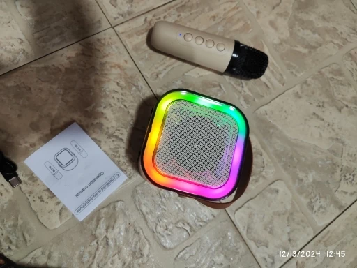 Я еще не использую его, я только начал загружать микрофоны, она выглядит красиво, она маленькая. Размеры 8x8x7. Он имеет фары и 2 микрофона плюс зарядное устройство. Хорошая деталь, хорошее качество