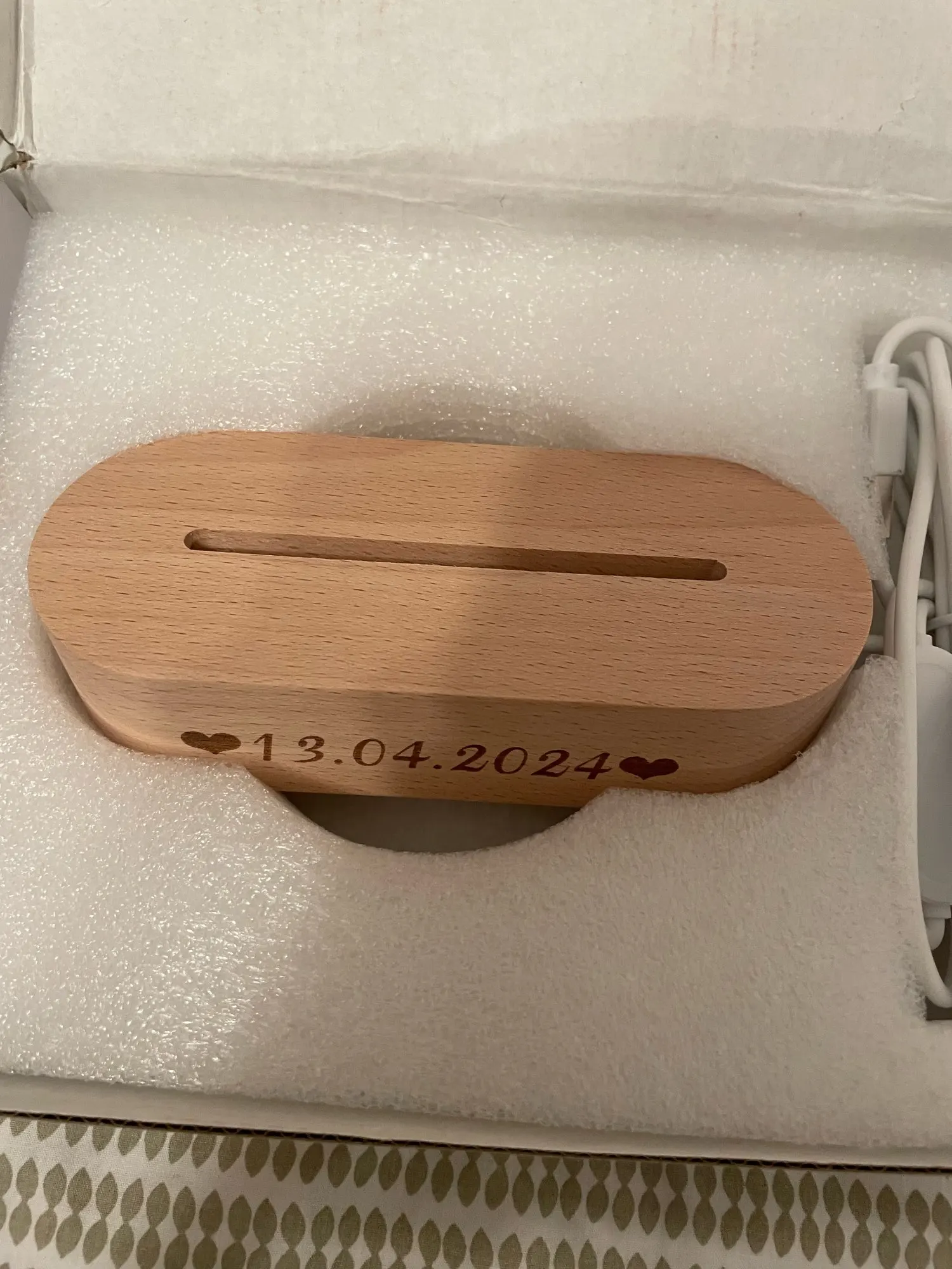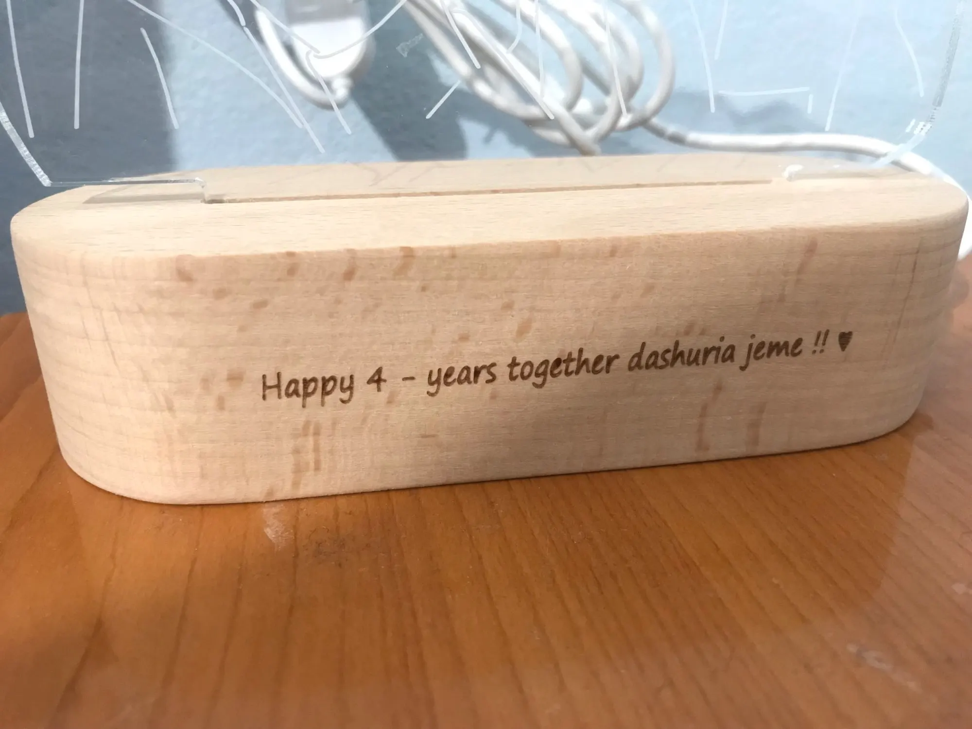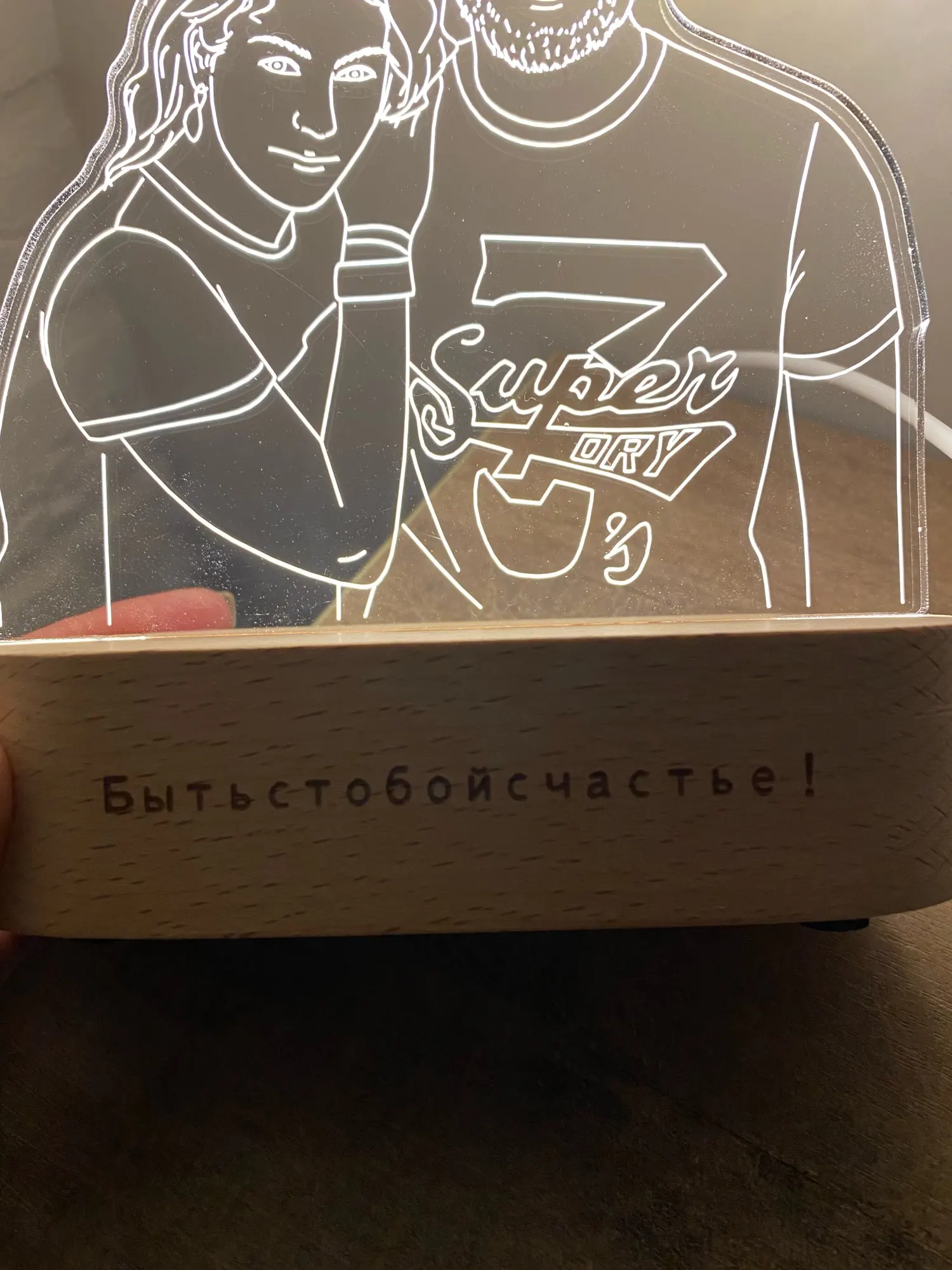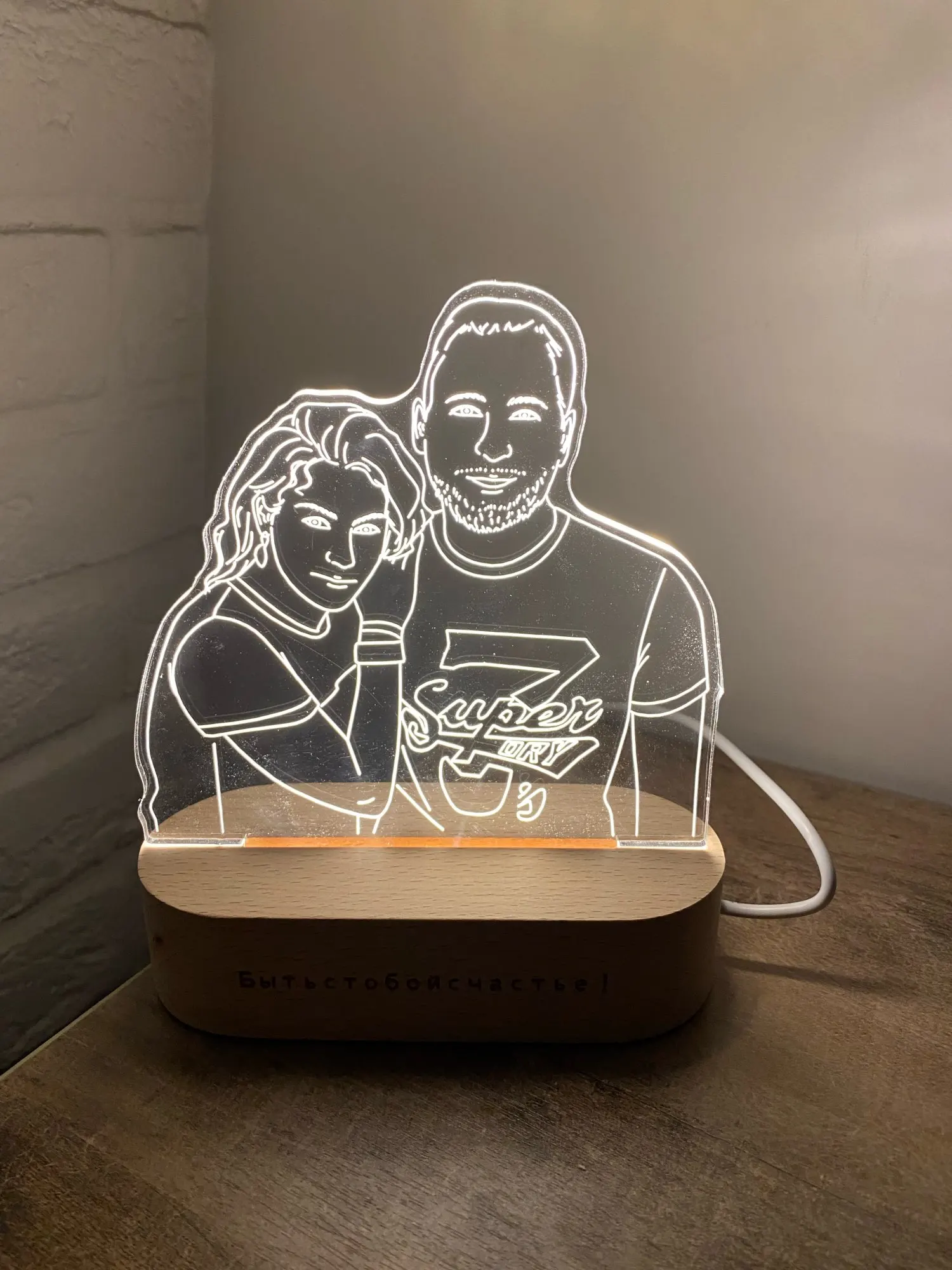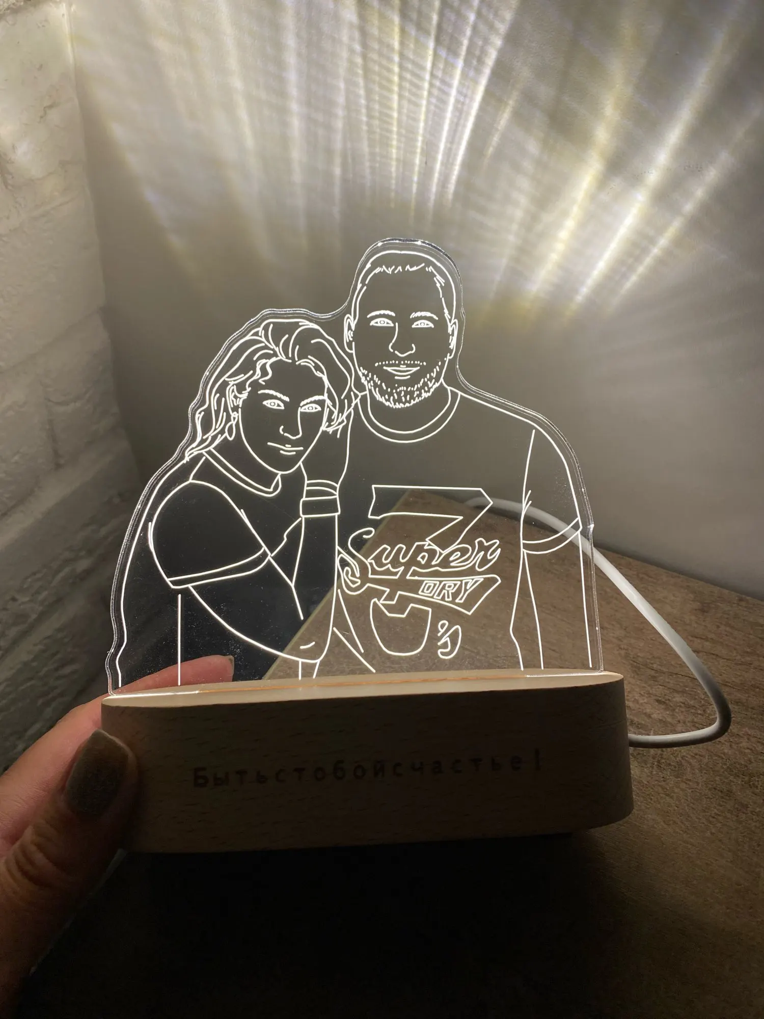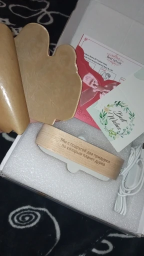 Крутая вещь получилась. Обалденная!!! Нет слов! Я оочень довольна. Спасибо огромное продавцу! Прекрасный романтический подарок!!! Быстро сделал, отправил и пришло раньше срока. Можно выбирать свет на выключателе и надпись, Приложу фото и все сами увидите!