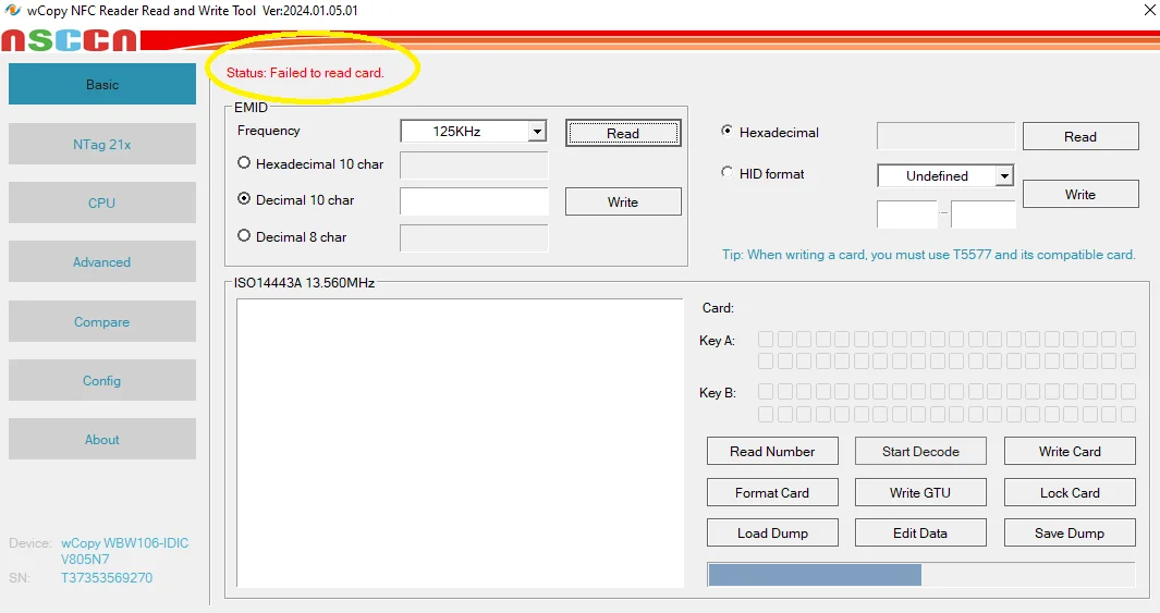 Отличный прибор, читает и пишет как em-marine так и mifare, взломал зашифрованную метку Mifare Classic 1k примерно за 7 минут, записал на метку из комплекта без всяких проблем. Пользоваться лучше ПО которое выложено на сайте nsccn.com качайте актуальную версию и будет вам счастье, только этим ПО смог декодировать метку, другие просто вылетали с ошибкой. К покупке этот чудо ридер крайне рекомендую ???????? Доставка быстрая за 9 дней.