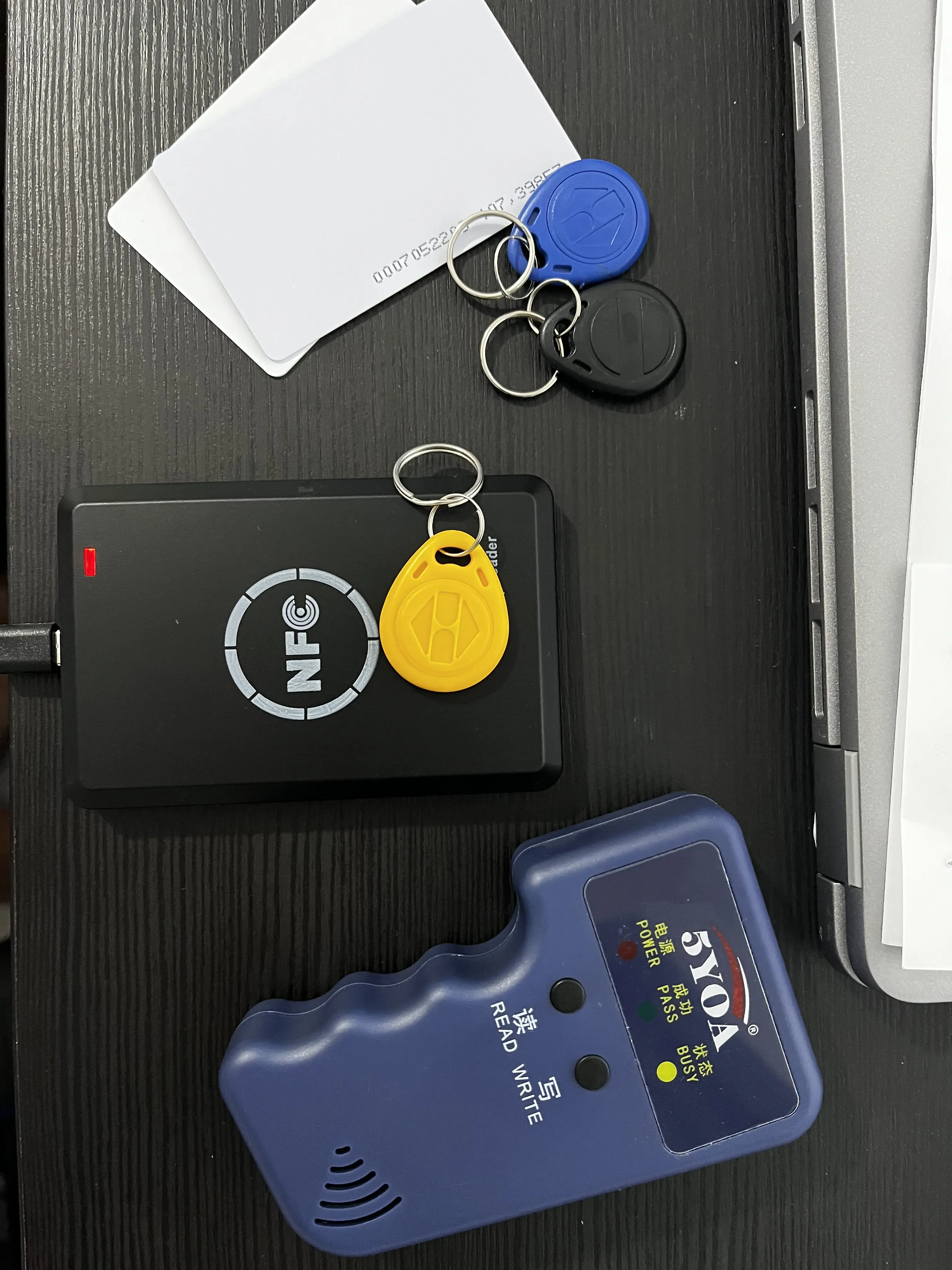 Ответ: если вы покупаете копировальный аппарат RFID + 5 брелоков UID + 5 карт T5577. Брелоки UID из 5 шт. работают с частотой 13,56 МГц, используются для копирования карты MF 1k. 5 карт T5577 работают с частотой 125 кГц, используются для копирования карт EM4100, tk4100. Это карты разного типа.