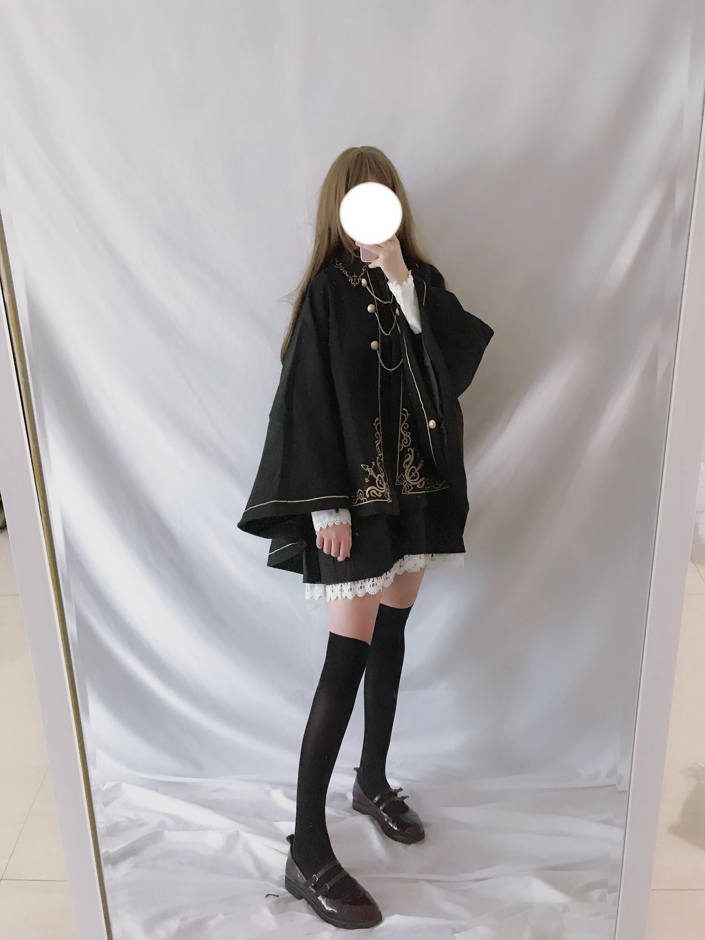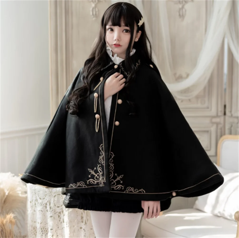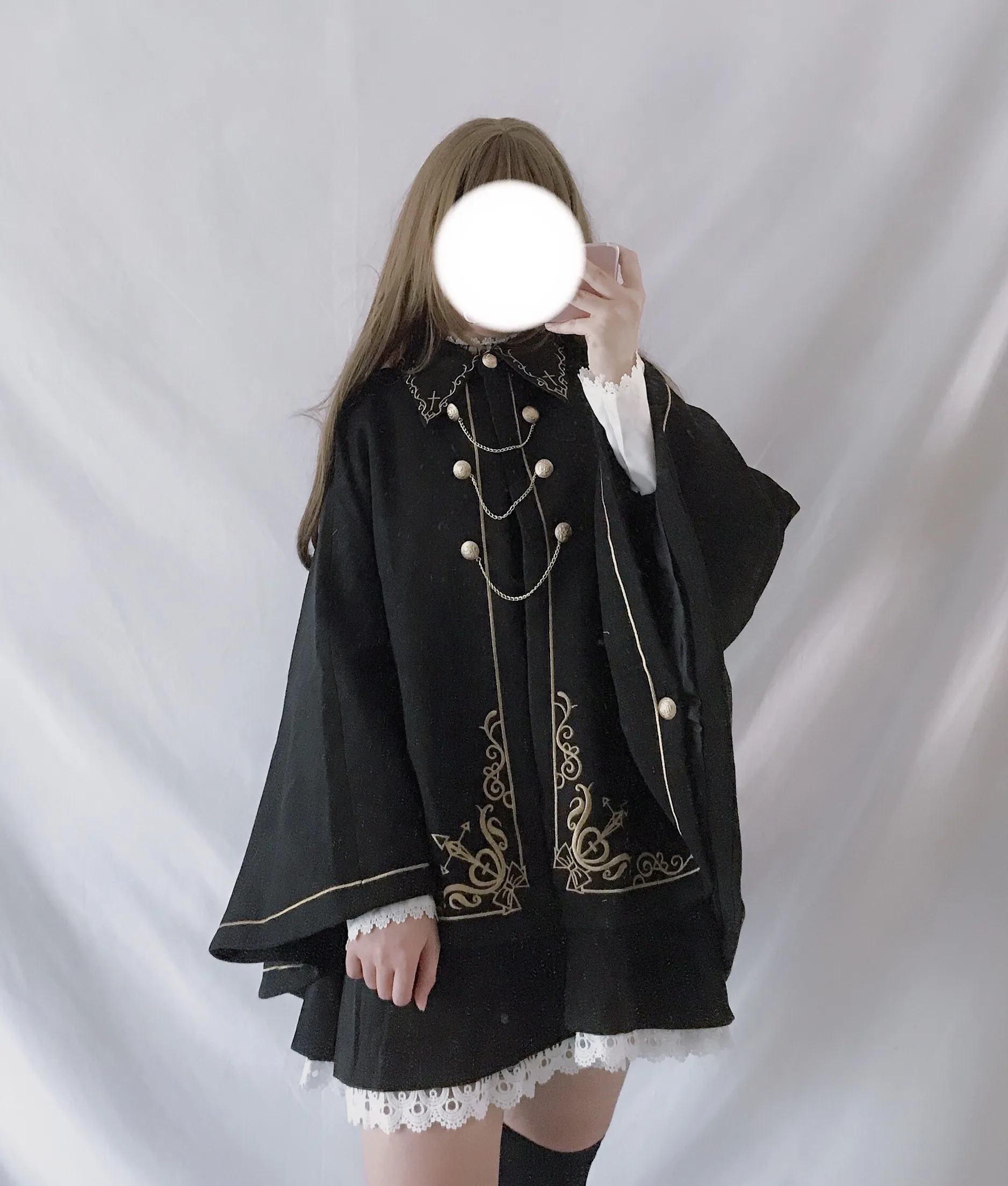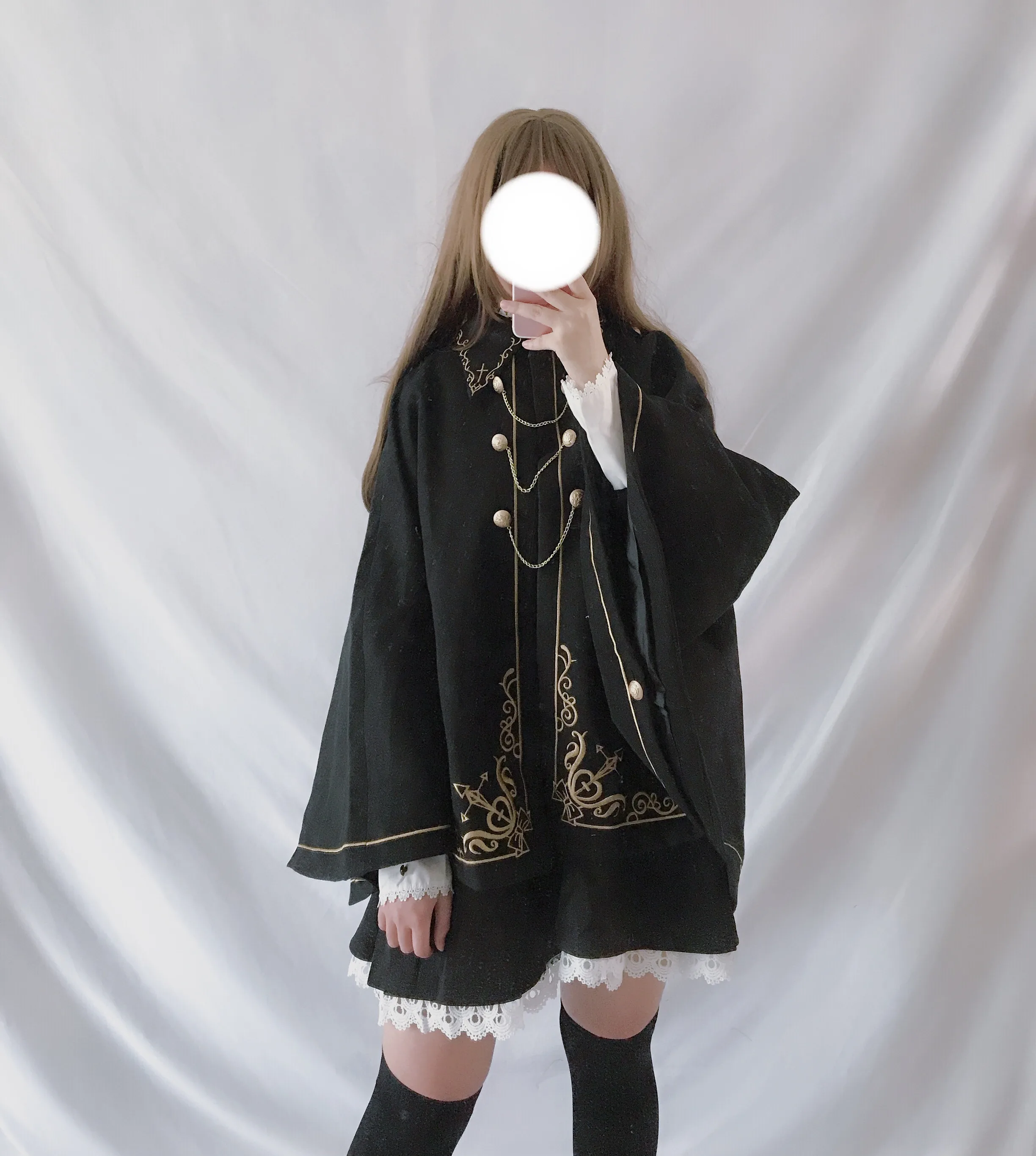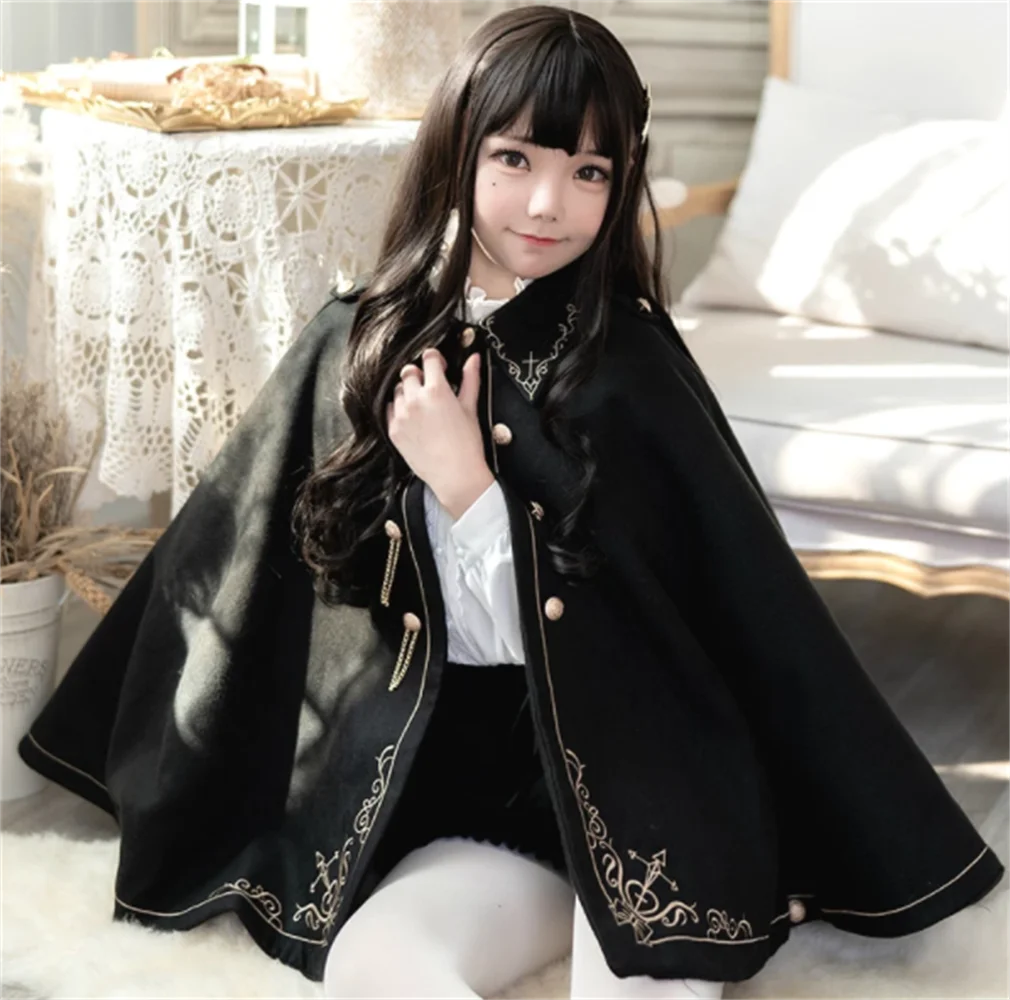 Japanese Harajuku kawaii girl autumn winter dark lolita cloak polo collar batwing sleeve gothic lolita coat retro victorian loli
