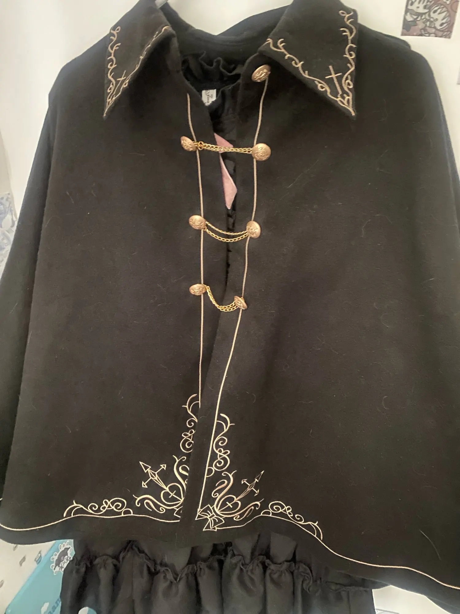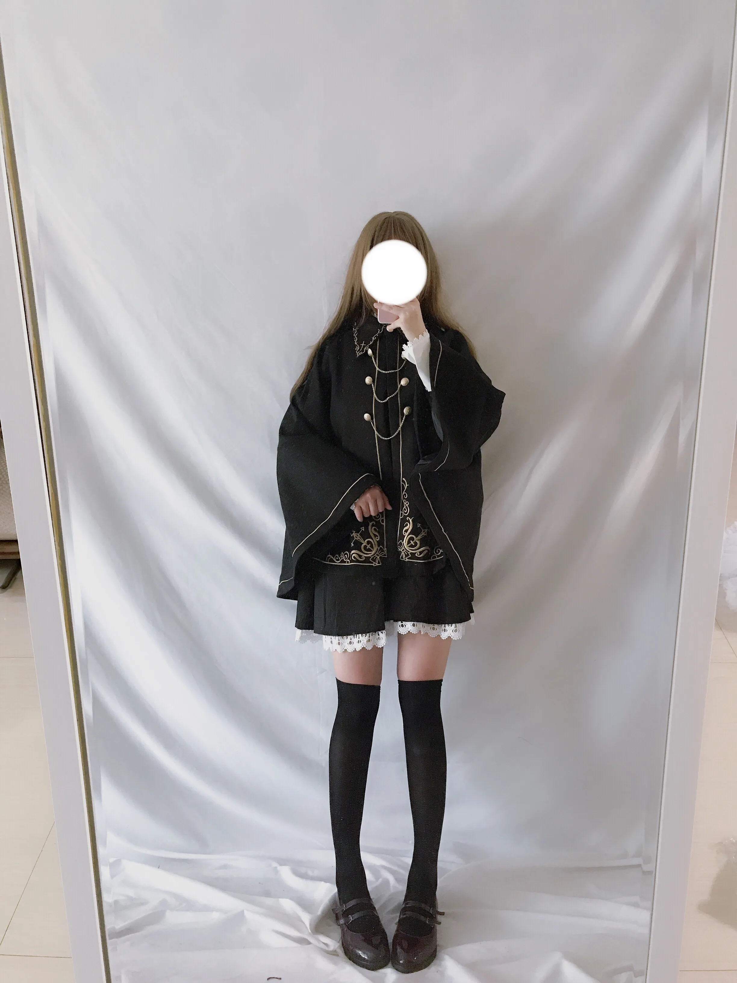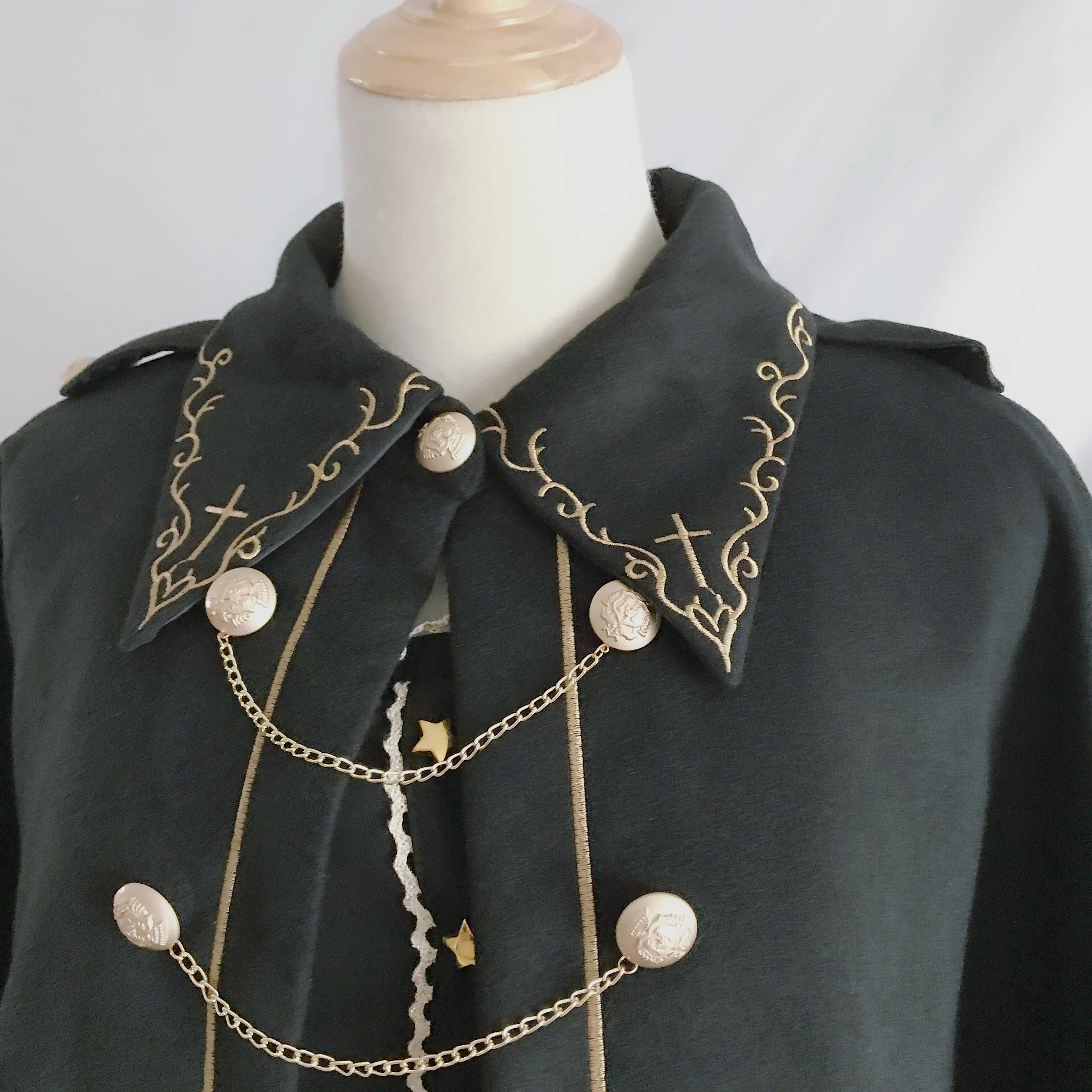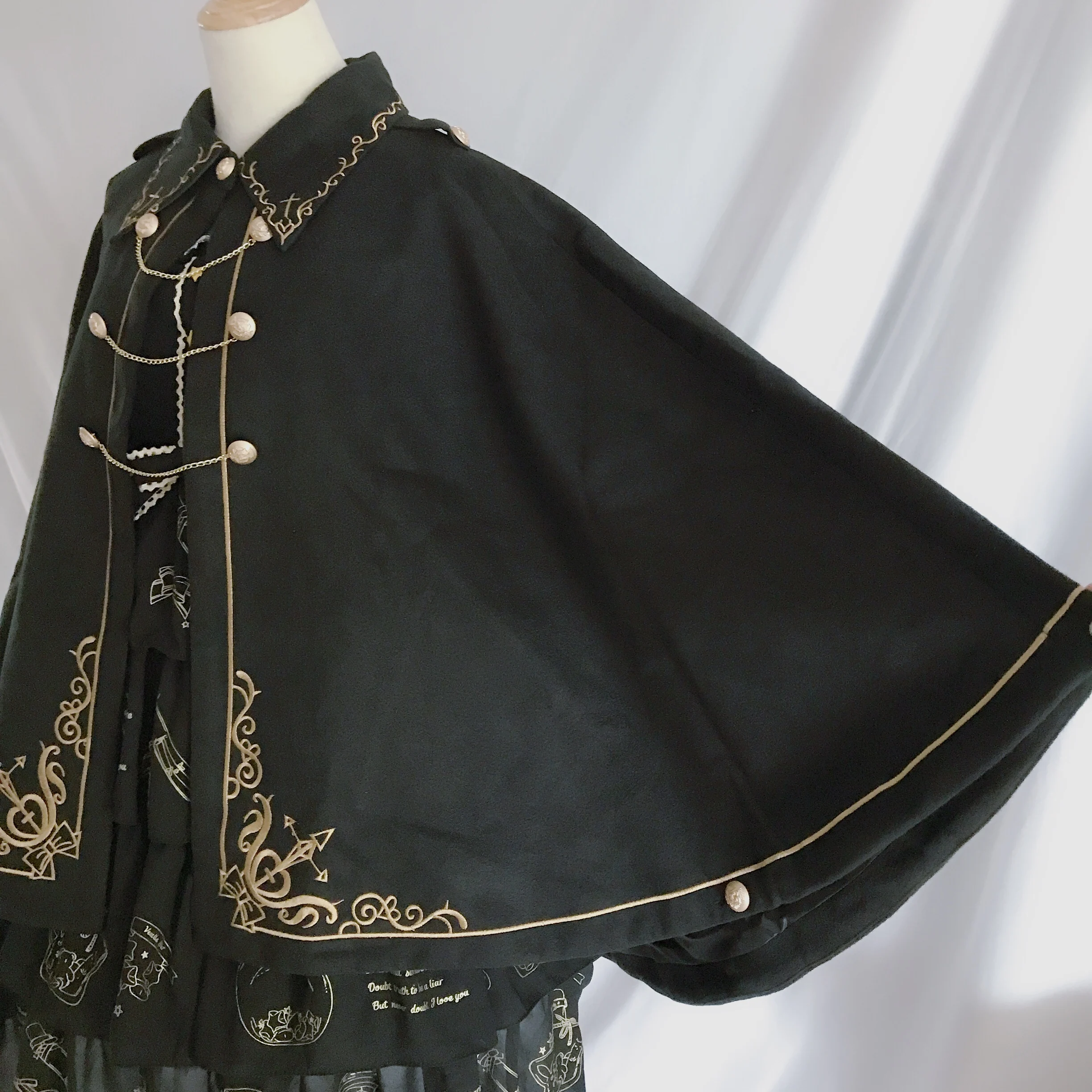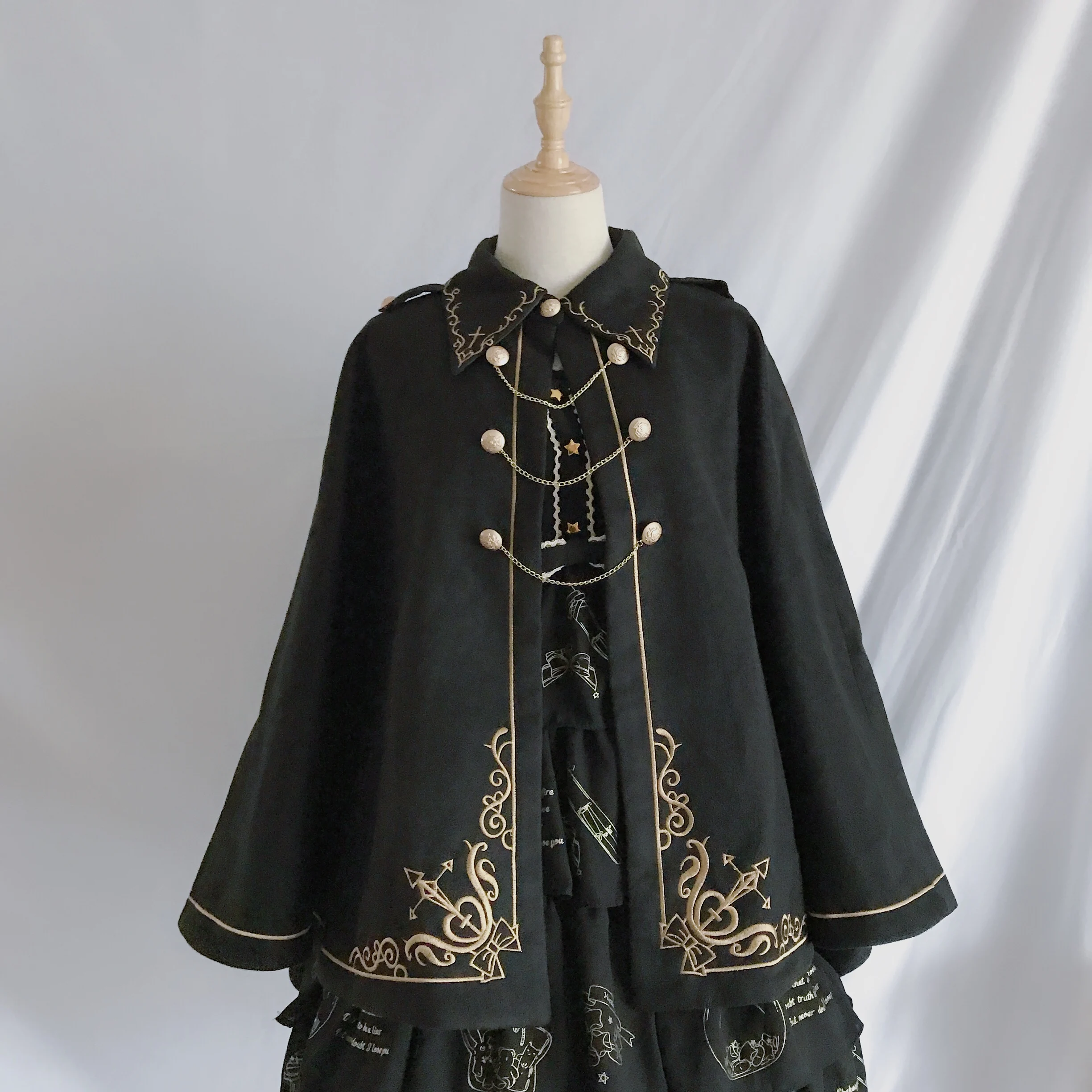Japanese Harajuku kawaii girl autumn winter dark lolita cloak polo collar batwing sleeve gothic lolita coat retro victorian loli