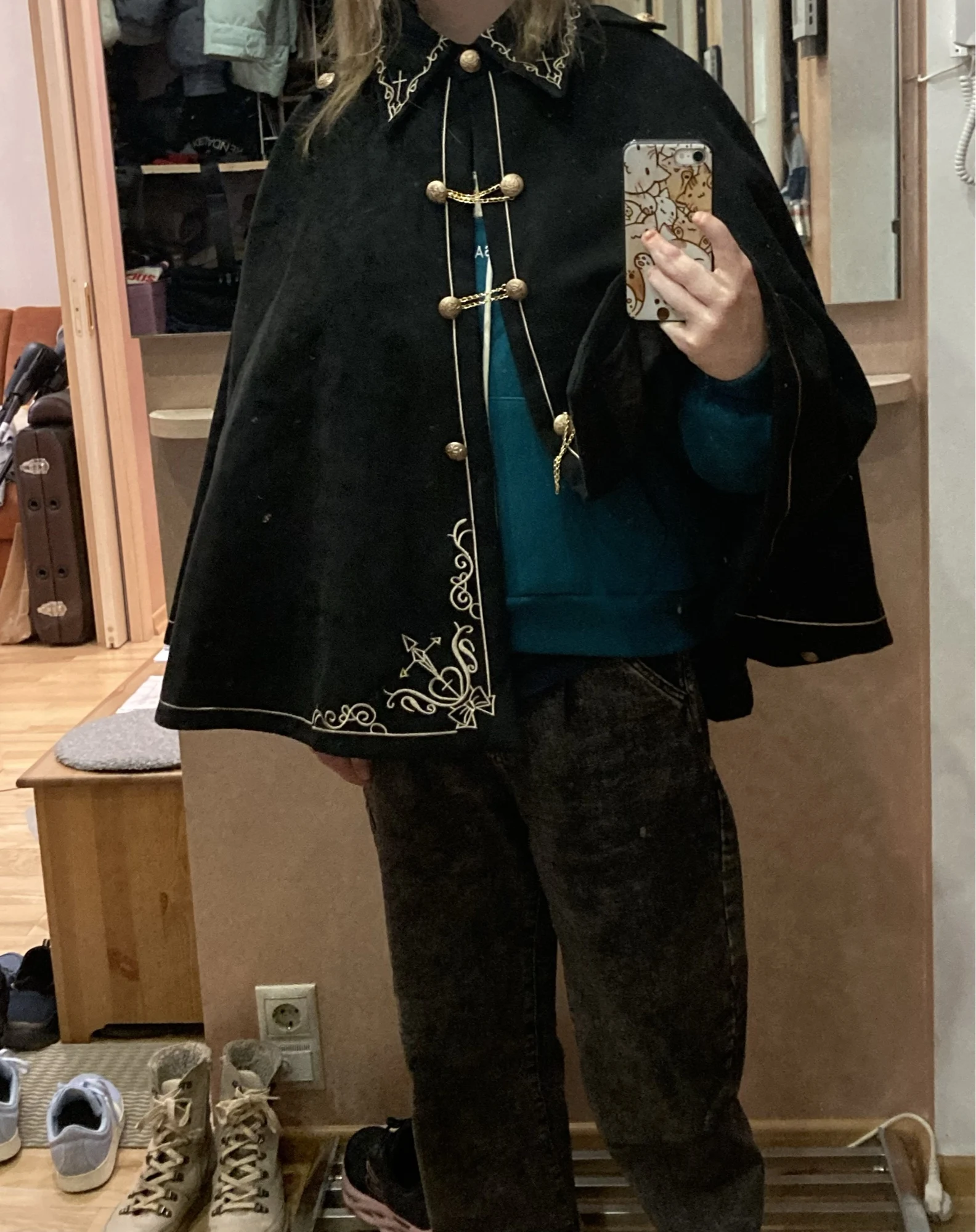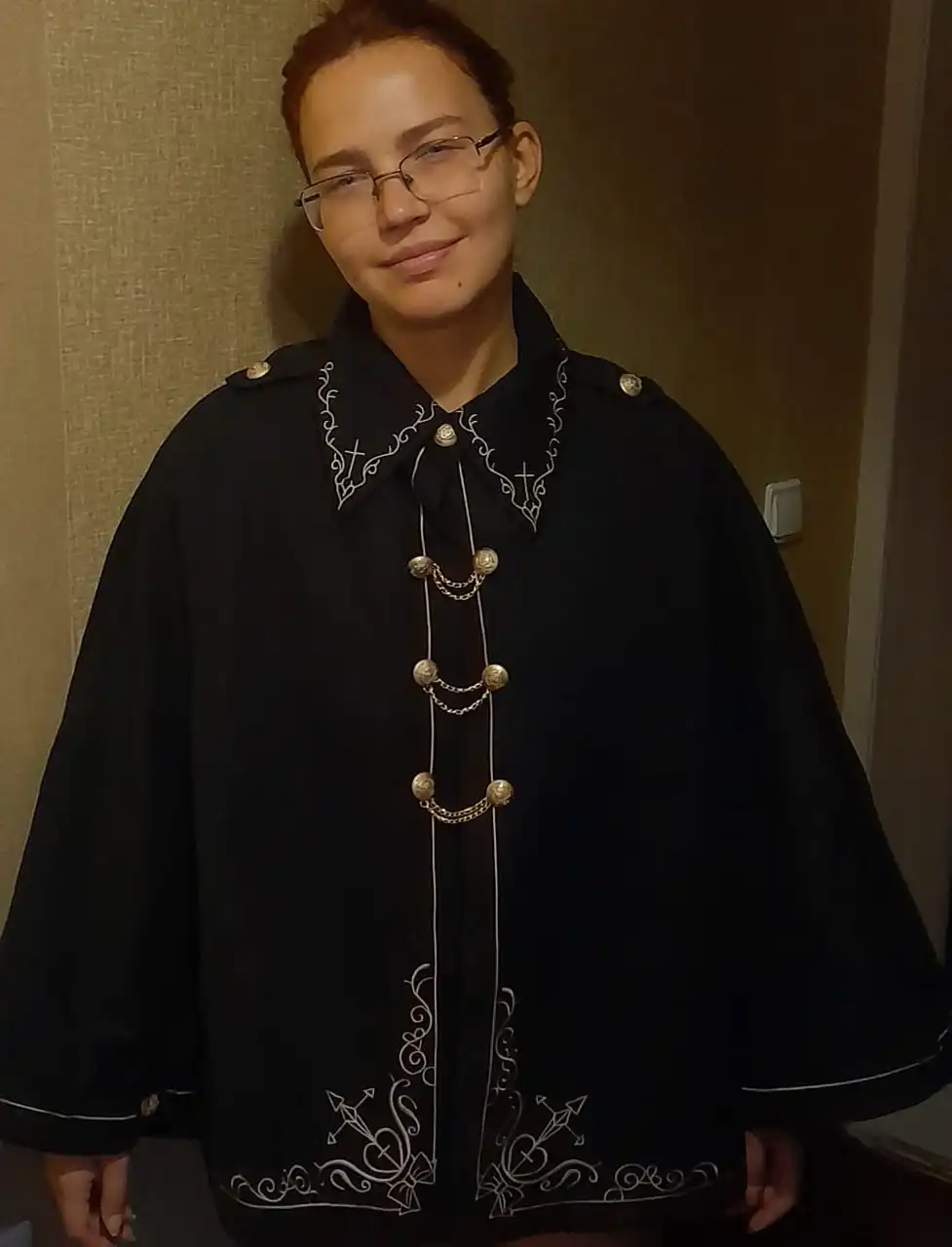 Чудесный плащ-пальто, очень тёплый. узор именно вышит, а не приклеен, плюс снизу имеются дополнительно пришитые пуговицы, чтобы сделать "рукава". Цепи не пришиты, на замочках, так что при необходимости можно отрегулировать их натяжение. С продавцом не общалась, но к покупке однозначно рекомендую.Anastasia M. 12 сентября 2024