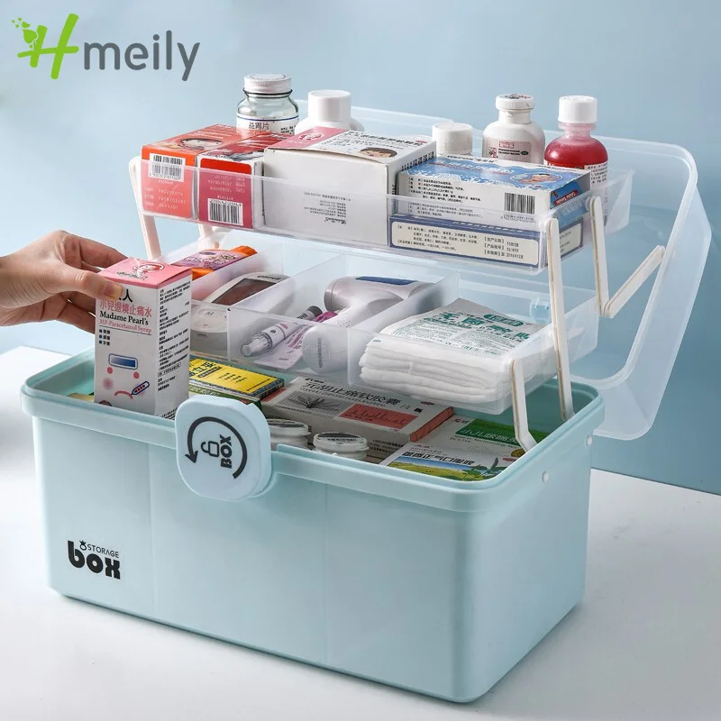 Большой Ёмкость первой помощи контейнер Пластик Органайзер хранилище лекарств для коробка 3 слоя Семья светодиодный Многофункциональный фонарик для использования вне дома, в походах, в экстренных случаях таблетки коробка