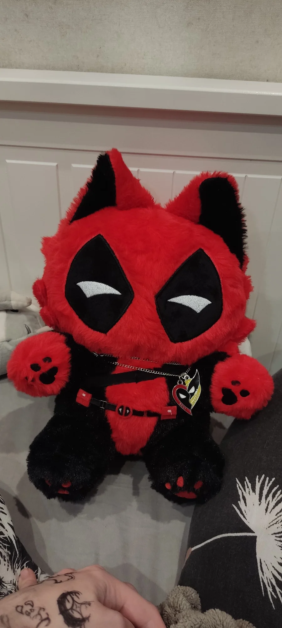 товар обалденный! пришло именно то, что я и хотела. ремешочек на нëм уже имеется, косточка уже внутри него, а так же привезли кулончики! я конечно купила заранее кулоны(оказались огромными),но удивилась, когда их всë таки положила. пришëл за 8 дней и это огромный плюс! думала придëт намного позже, ведь изначально мой молодой человек покупал мне на день рождения, но пришëл через два дня после дня рождения. пришëл супер быстро и я этому рада. игрушка не повреждена, доставка и упаковка плотная, качество отличное, всë имеется в ней как в описании так и на фото. вообщем, всем советую, не ошибëтесь! а создателю данной игрушки, я руки целовала💋 а чтобы сделать кулончик так же, как на фотке с дэлпулом, то сначалс снимите с обеих цепь, просуньте обе в одну, а потом с одной стороны застегните ещë одну. постарайтесь прокрутить как на фото вокруг шеи и вуаля! у вас получится точь-в-точь!