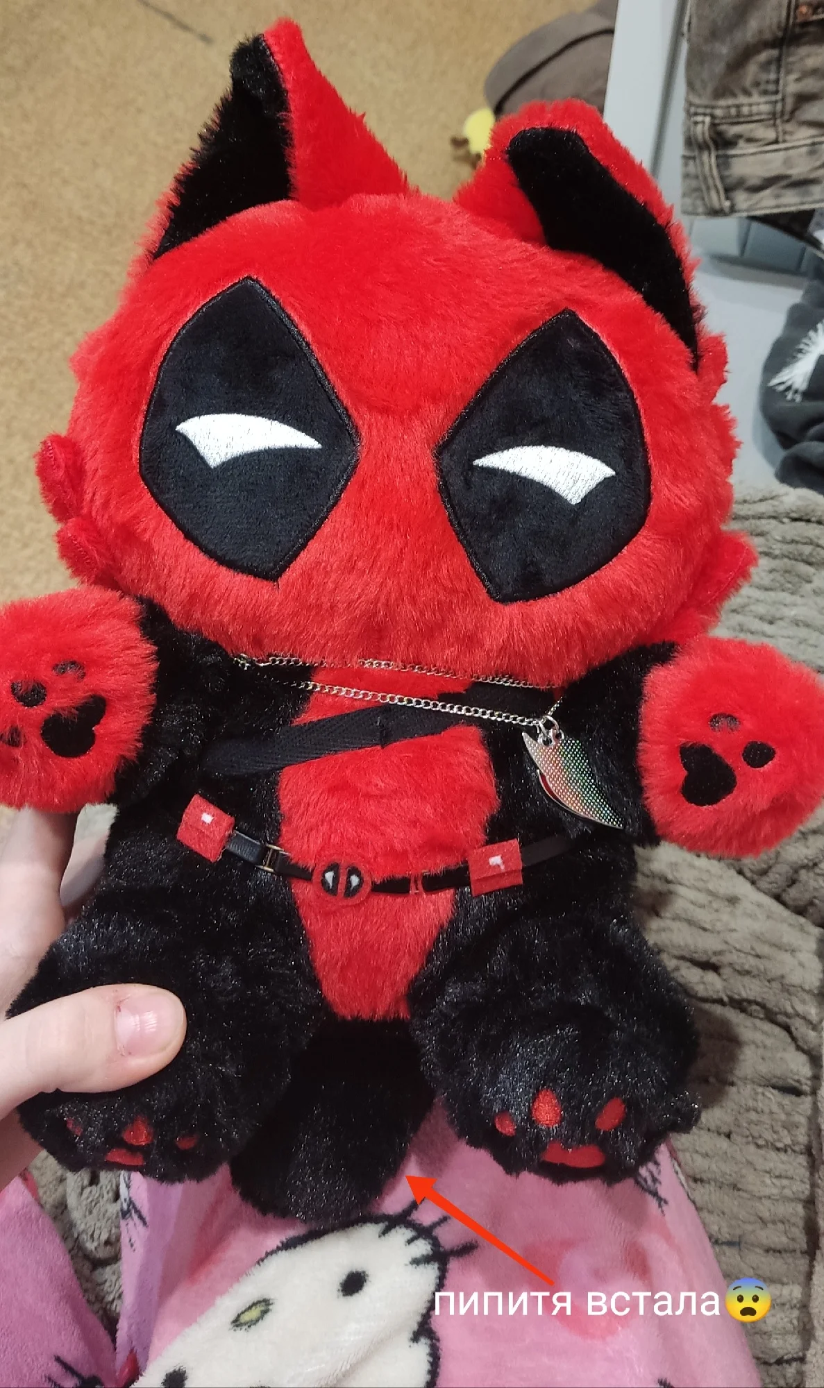 Посылка долго отправлялась. Было написано что придёт 7-го декабря, но саму посылку отправили 6-го, сам Дэдпульчик пришёл 12-го, но т.к. никого не было дома, посылку я получила уже 13-го. Самой игрушкой я очень довольна. Дэдпул мягкий, нигде не торчат ниточки, ремешок вроде качественный. Кароче игрушкой я ооочень довольна :3