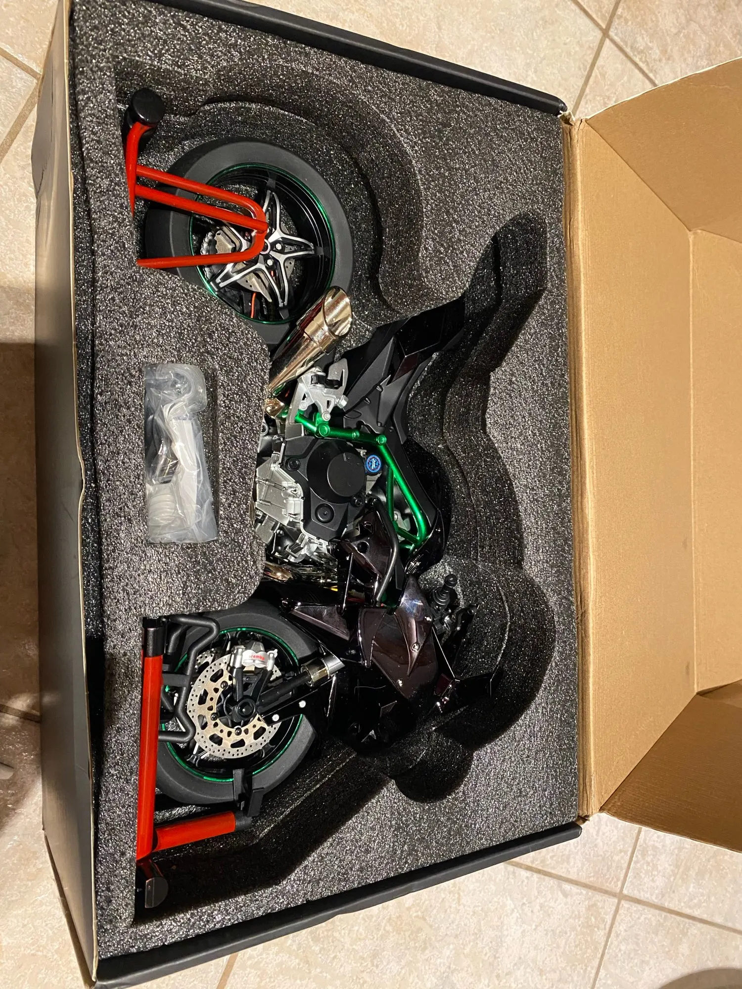Абсолютно потрясающая модель. Детали превосходны. Улучшите с помощью передних и задних фонарей. Зажигание и звук дыма, выходящего из выхлопной трубы, делают его таким реалистичным. Доставка заняла менее недели, чтобы СГ. Спасибо продавцу за примерное обслуживание! Продолжайте отличную работу!