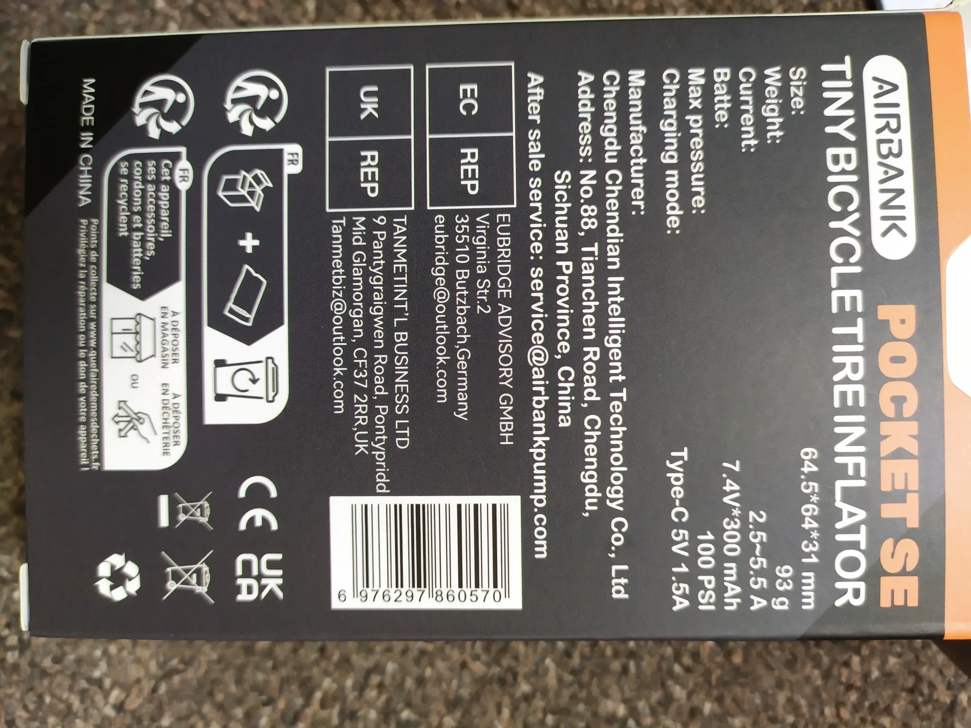 AIRBANK Pocket SE Беспроводной электронасос для велосипеда