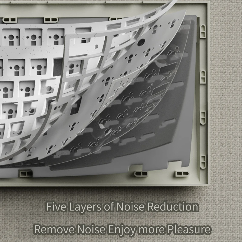 Пять слоев слоя шумоподавления + прорезь по одной клавише для удаления шума, обеспечения равномерного ощущения прикосновения и звука клавиш, что делает клавиши удобными при нажатии.