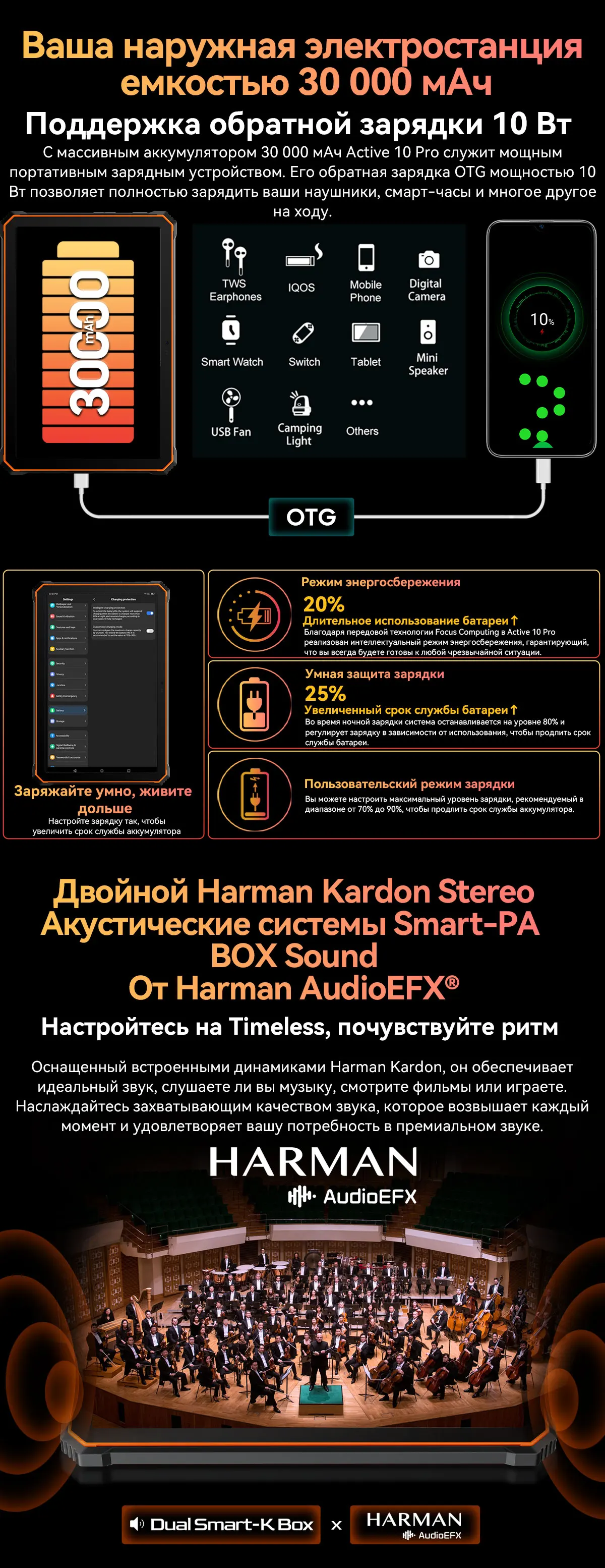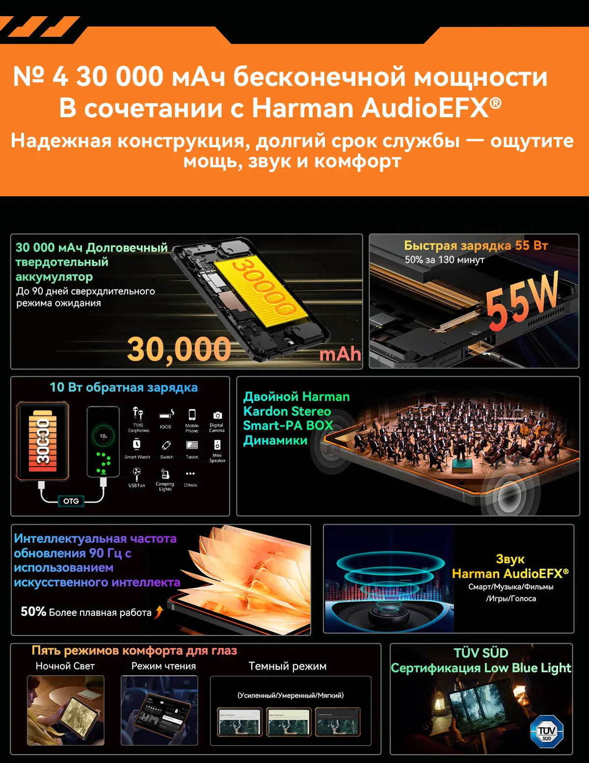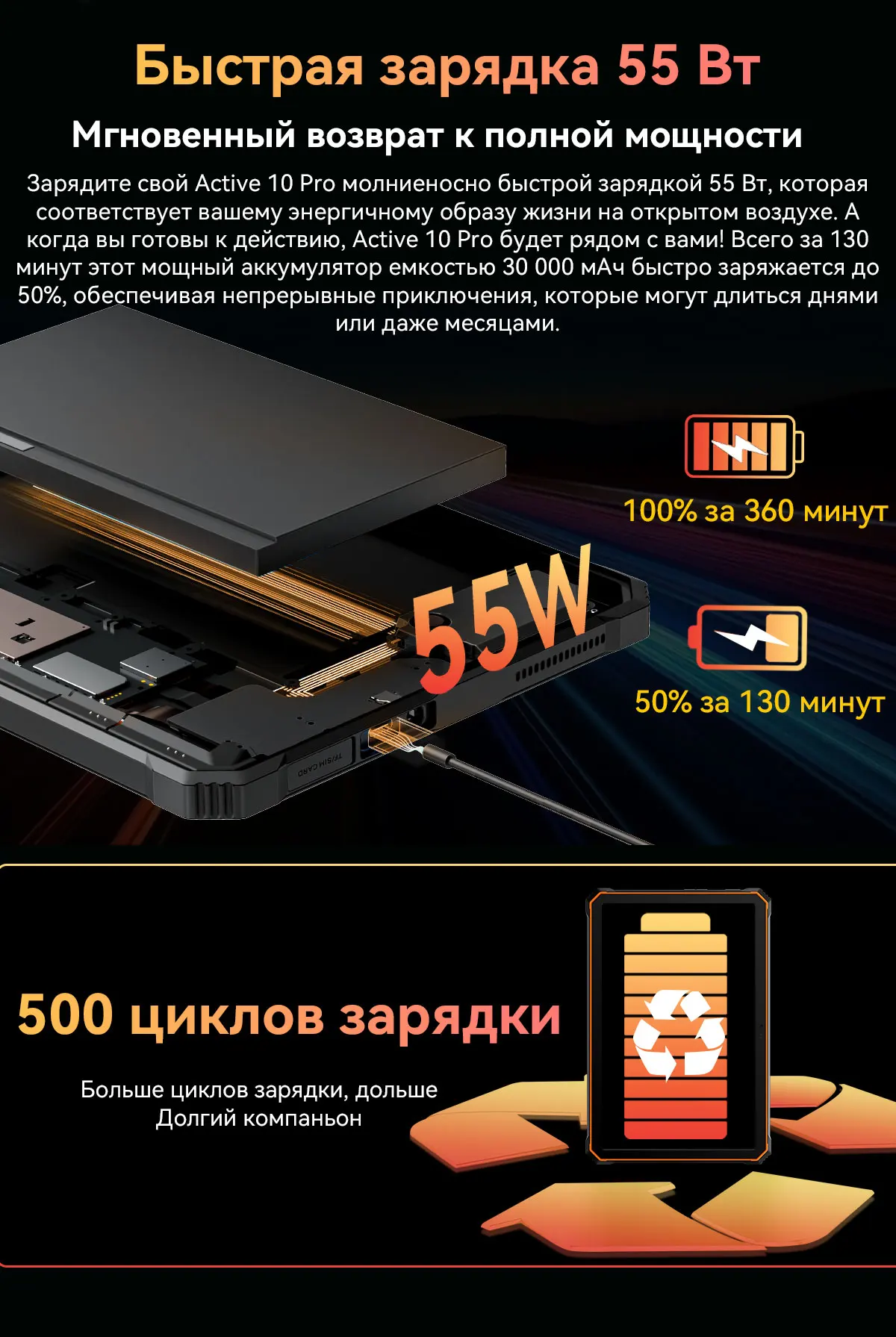 Батарея: 30000МАч с быстрой зарядкой 55 Вт