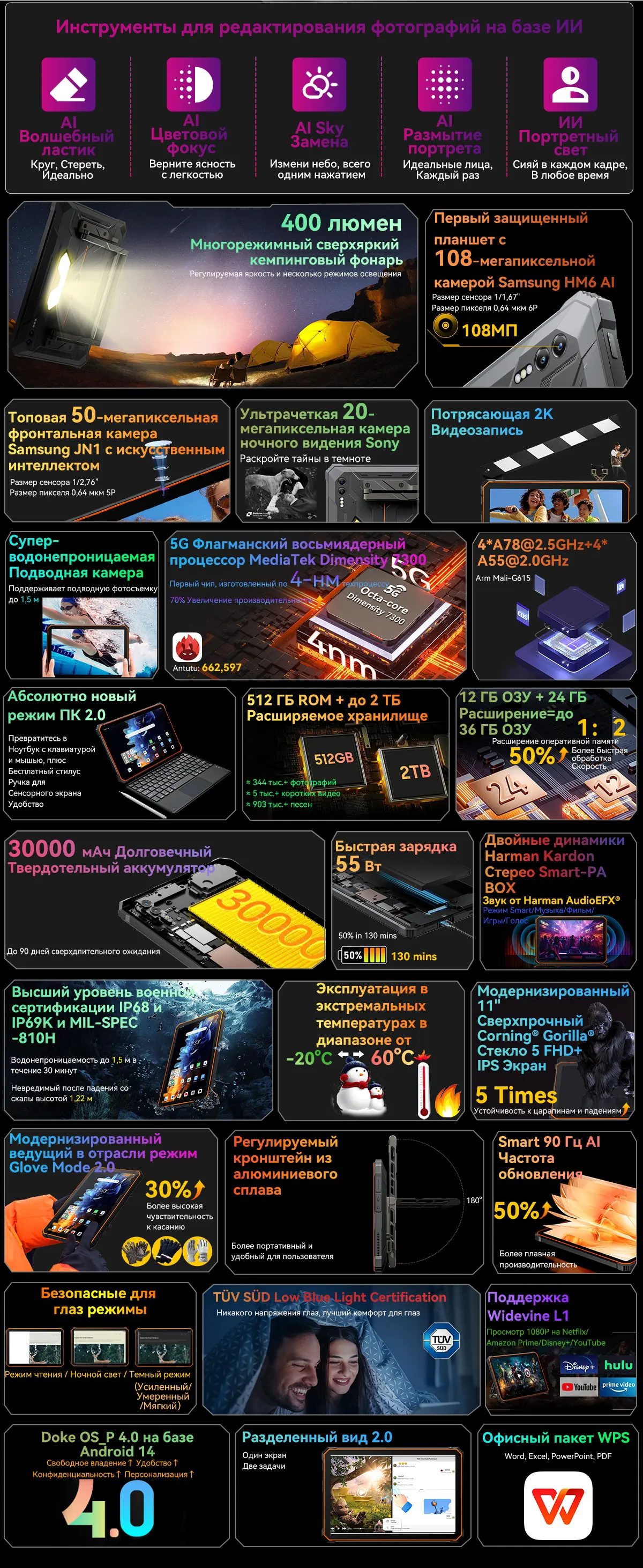 Планшет Blackview Active 10 Pro, 10.95", 8/512ГБ, 12/256ГБ, Wi-Fi+5G