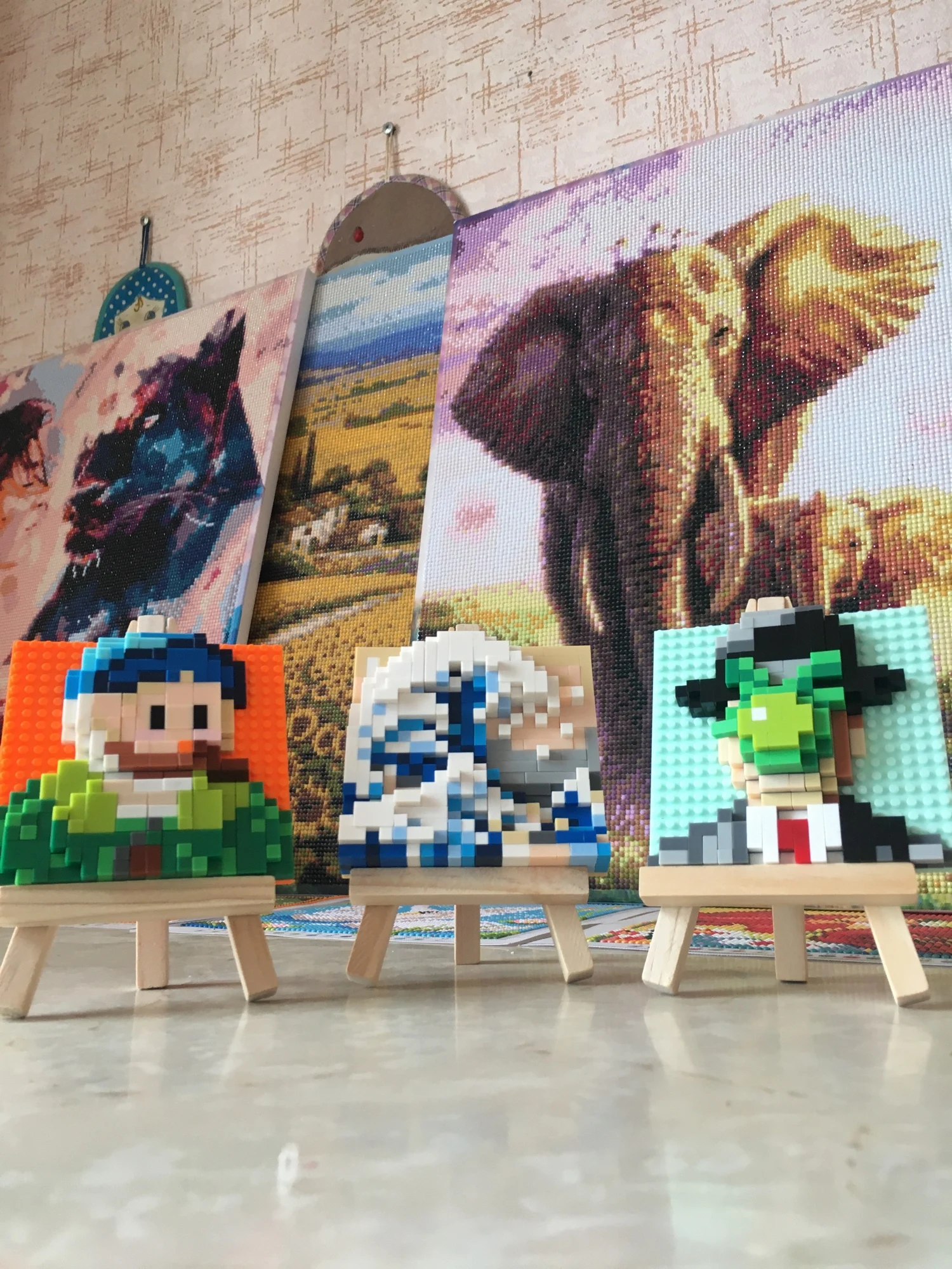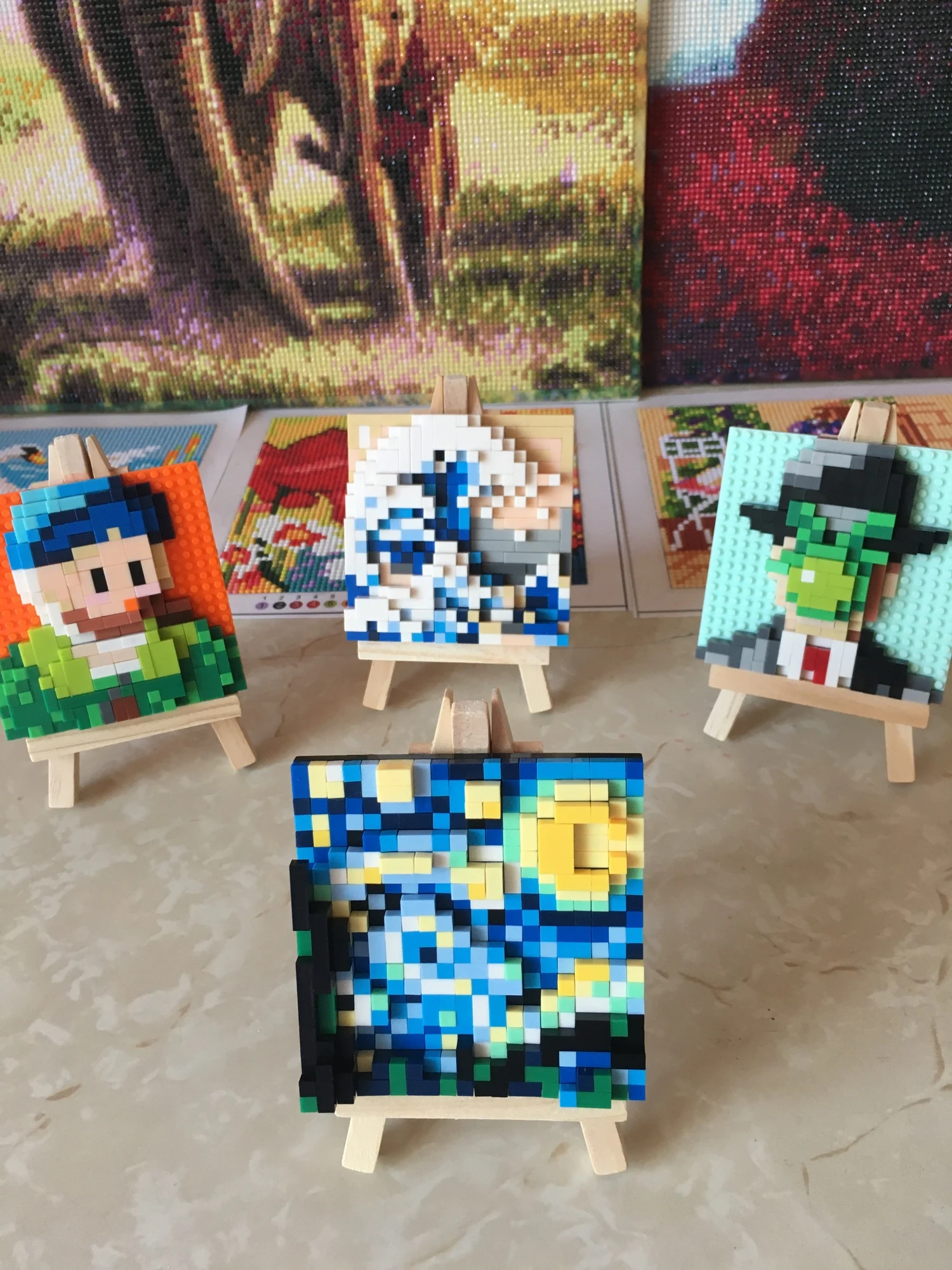 Блочные конструкторы с некоторыми известными картинами на "мольберте"
