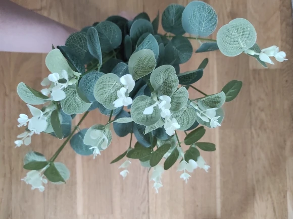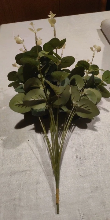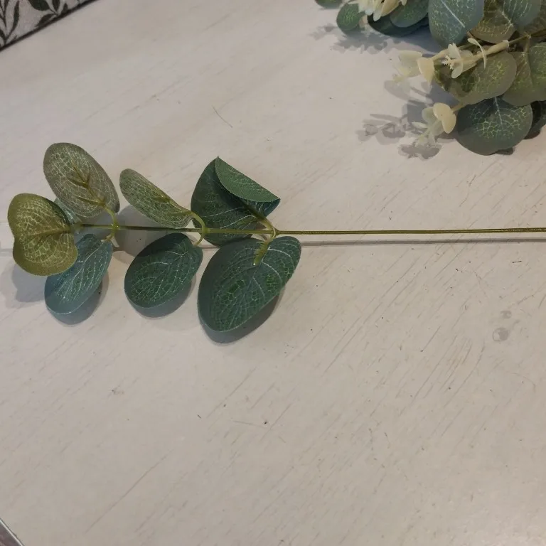 вполне хорошие веточки. полностью как на фото. в стебле металлическая проволока, их можно формировать по желанию. большие листья тканевые а верхушки пластиковые. упаковка простой пакетик, пара листочков помялись, но выглядит полностью как на фото продавца. пришло очень быстро.7673 u. 21 января 2025