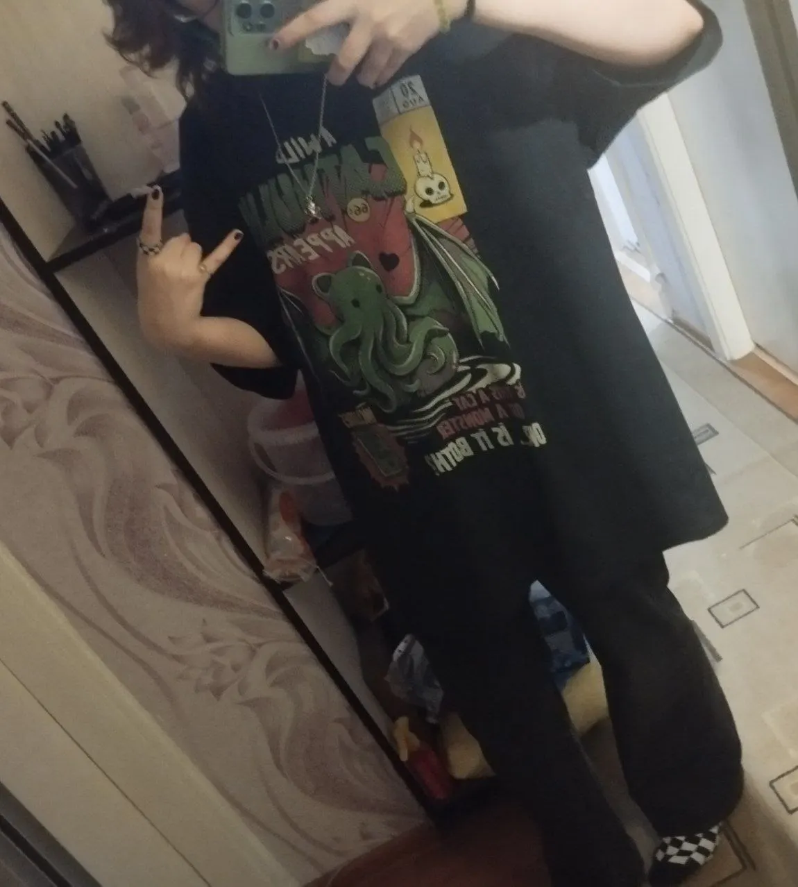 шикарная ткань, не просвечивает. принт крутой, видела эту футболку на Shein, но не успела купить ☹️. короче я счастливи, размер вроде норме, как оверсайз