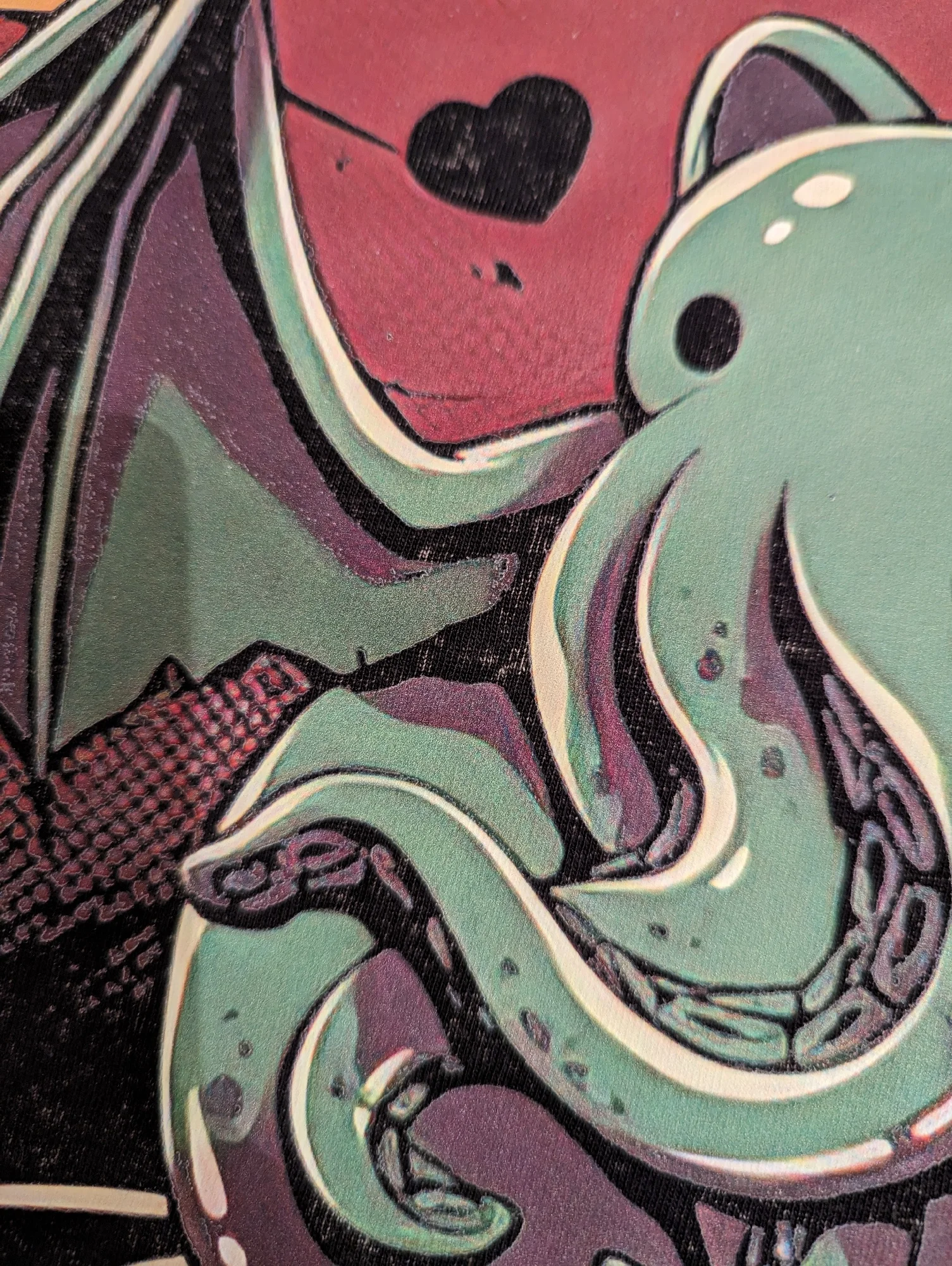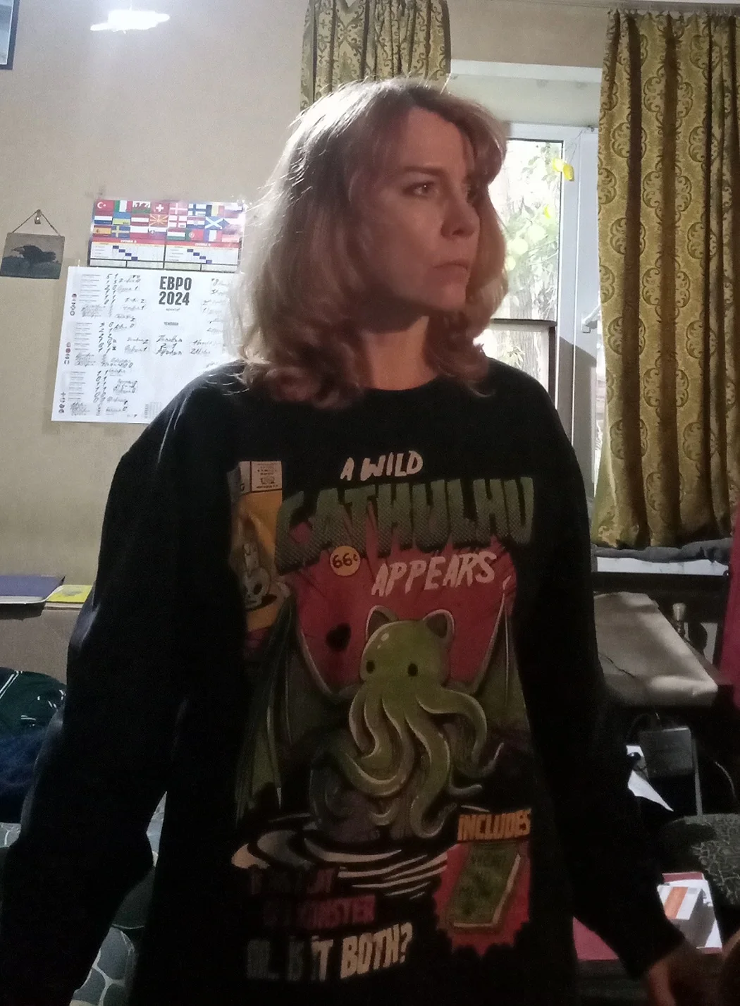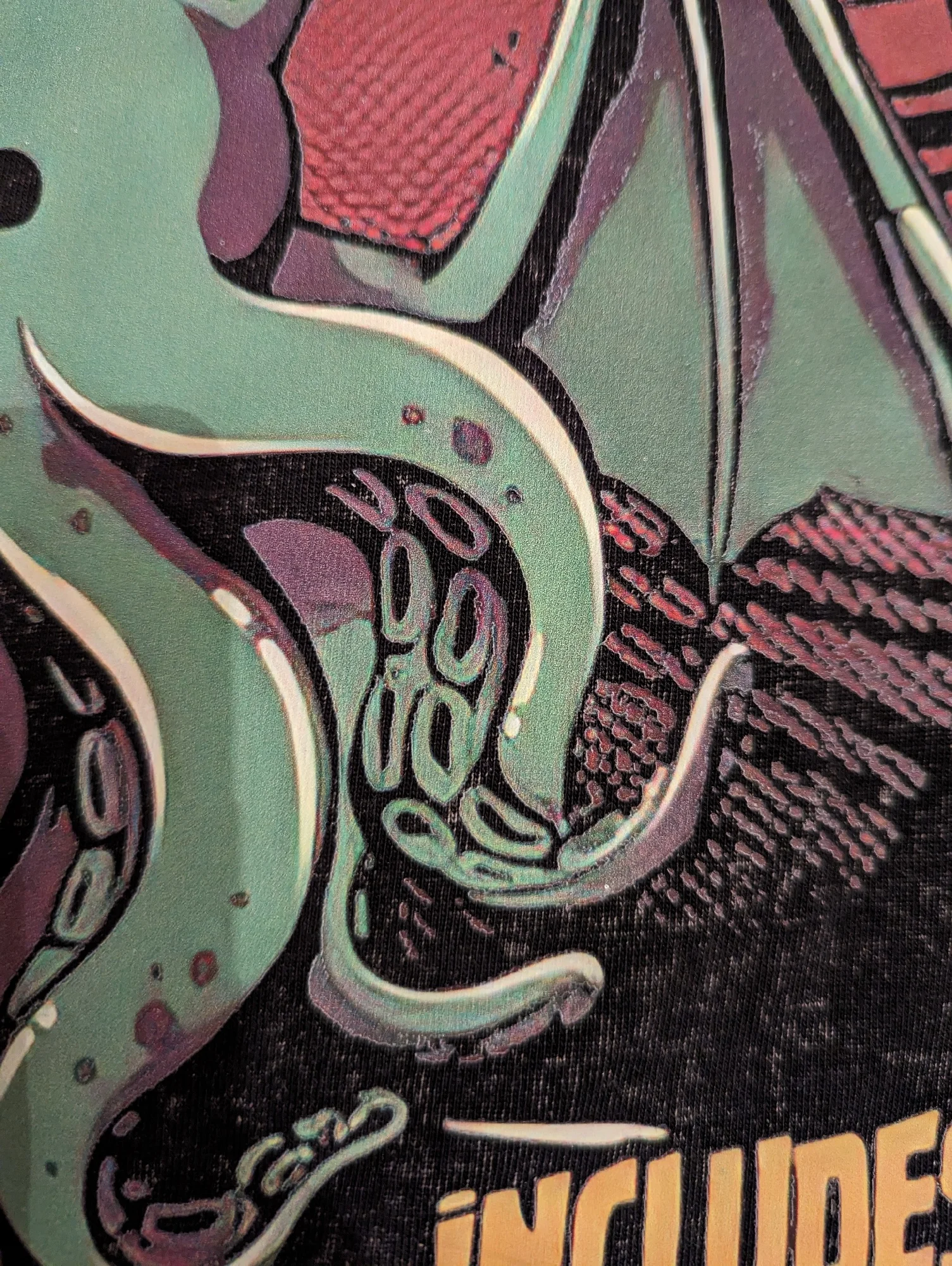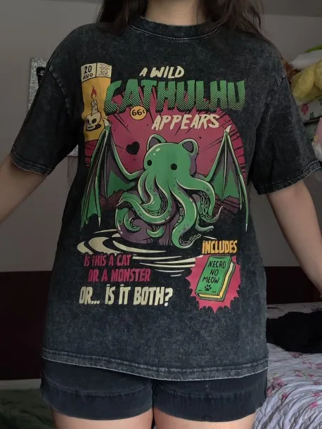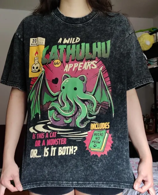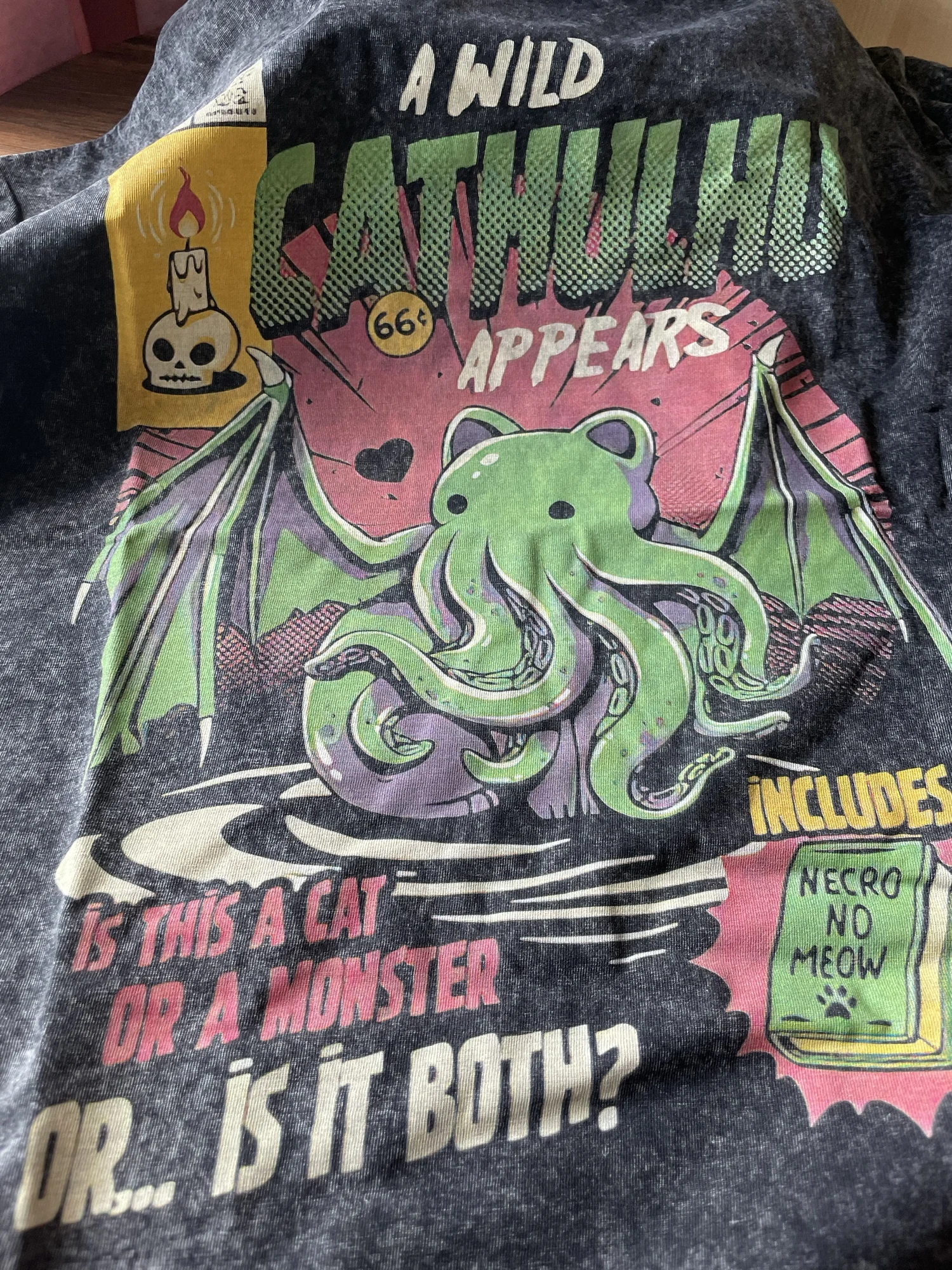 Футболка с Котулху (гибрид кота и Ктулху). Продавец утверждает, что мужская, не буду с ним спорить.
