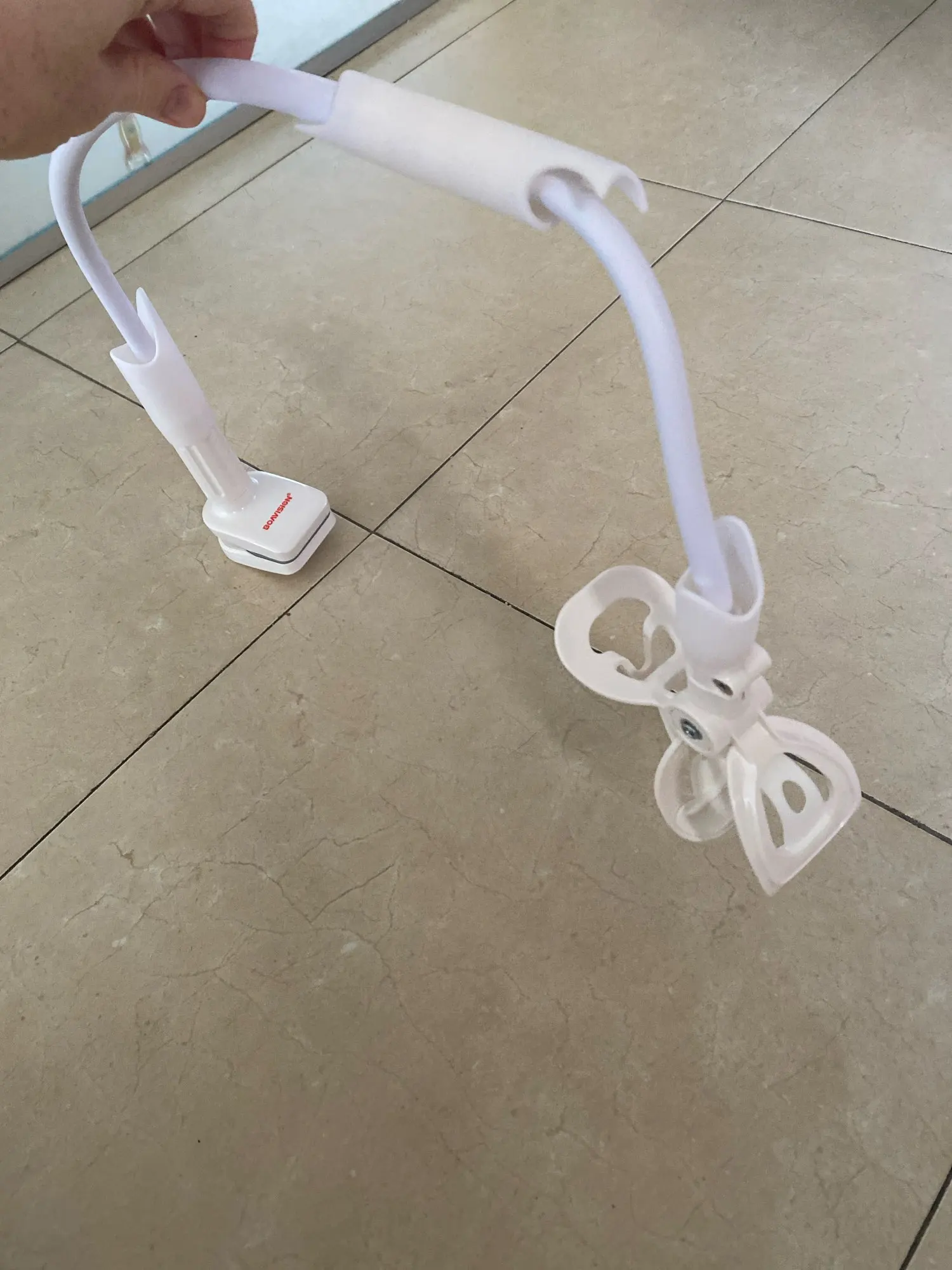 Это самый крутой держатель который когда-то у меня был. Держит крепко, прищепка плотно захватывает и оборачивается на 360 градусов(телефон или камеру можна поставить в вертикальном и горизонтальном положении и вообще как удобно), широкий розъём, прикручивали и к кровати и к столу держится супер, не могу нарадоваться????, спасибо! Вот только не разобрались для чего ремешки всякие на липучках, но может позже разберёмся. Рекомендую отличный товар!!! Отправили быстро, всё красиво упакованно, ничего не повредилось