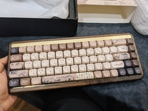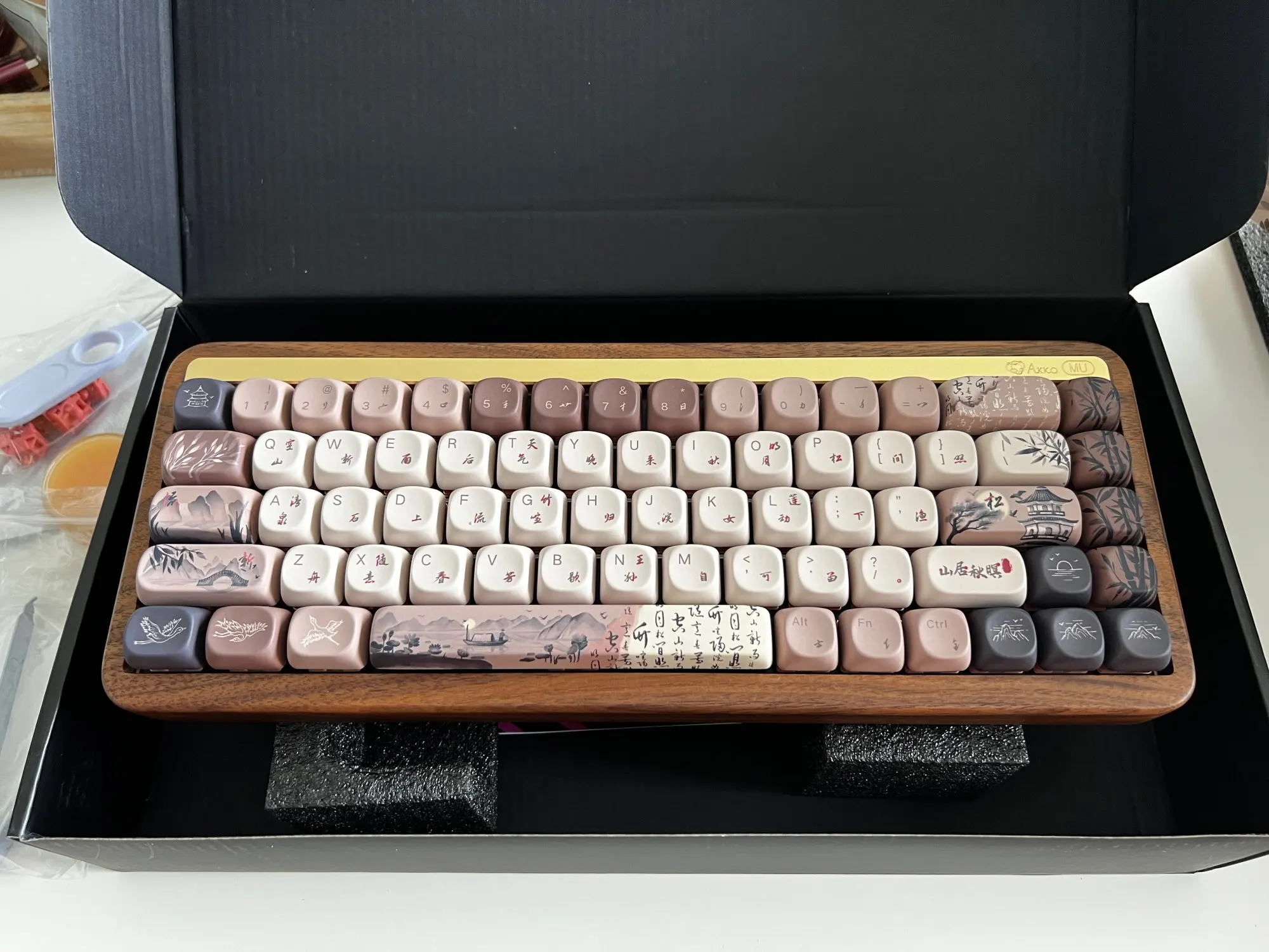 Embrace the beauty of Chinese poetry and landscape art with the MU01 Mountain Seclusion keyboard. The keycap feature the complete poem "Autumn Twilight in the Mountain Abode" alongside stunning Chinese landscape paintings.