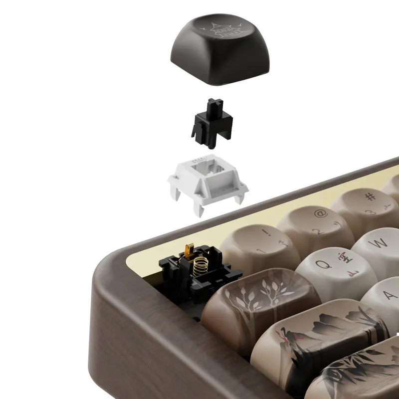 Crafted from exquisite walnut wood using CNC precision. Walnut wood imbues this keyboard with elegance and durability. Whether for daily use or professional applications, the MU01 Mountain Seclusion offers an alluring blend of natural beauty and modern technology, delivering a unique typing experience.