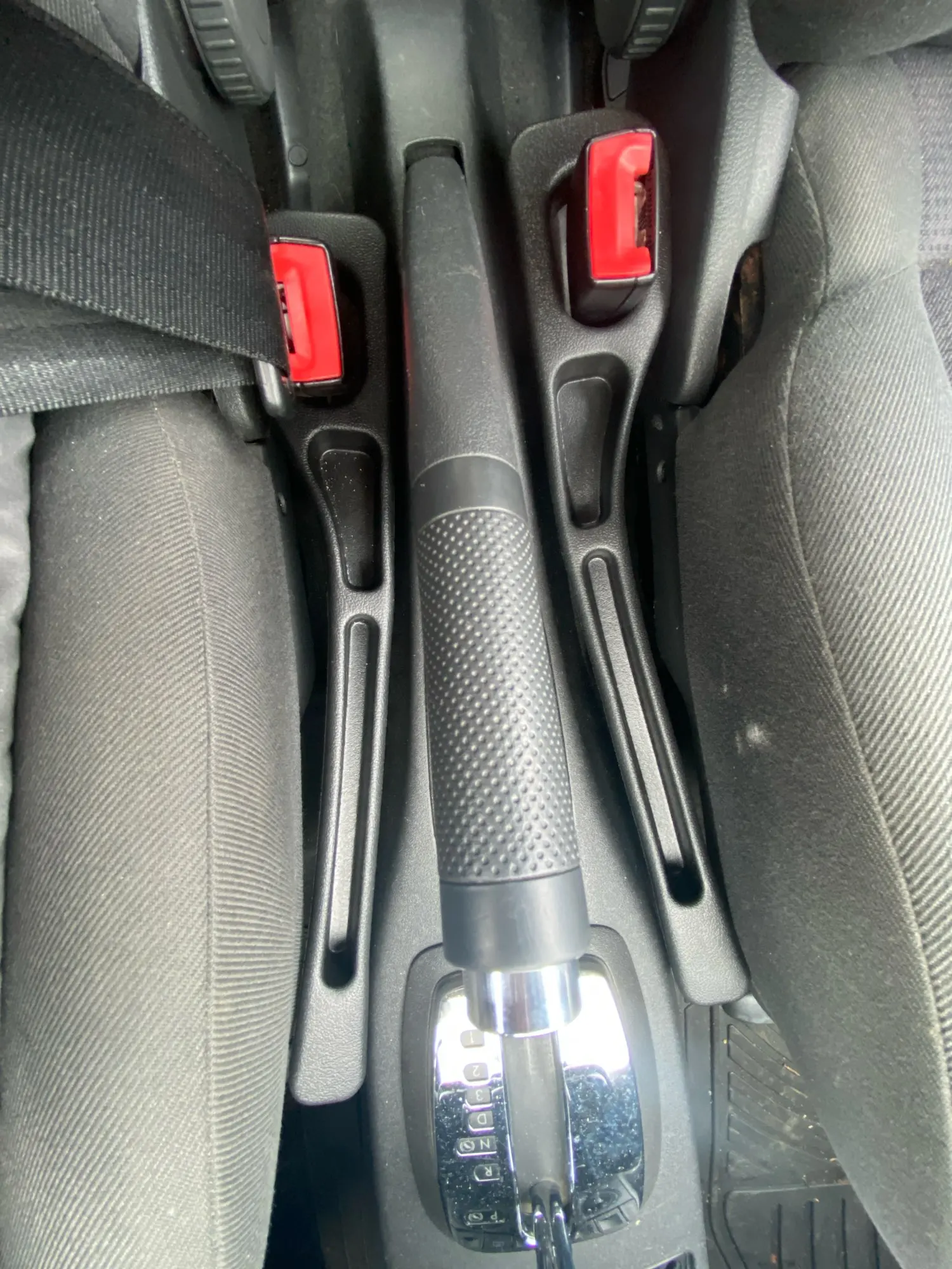 Сиденье автомобиля зажато в левой Нише; Что-то застряло в правом зазоре. Я купил его как пару, когда купил. Я могу закрыть пробел с этим, так что я не могу пролить что-то и упасть между пробелами. Люди на переднем сиденье не имеют хорошее место, чтобы пойти, когда они заряжают свои телефоны. Поместите его в длинную канавку, чтобы он хорошо сидил