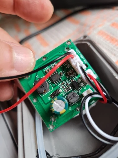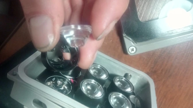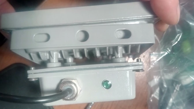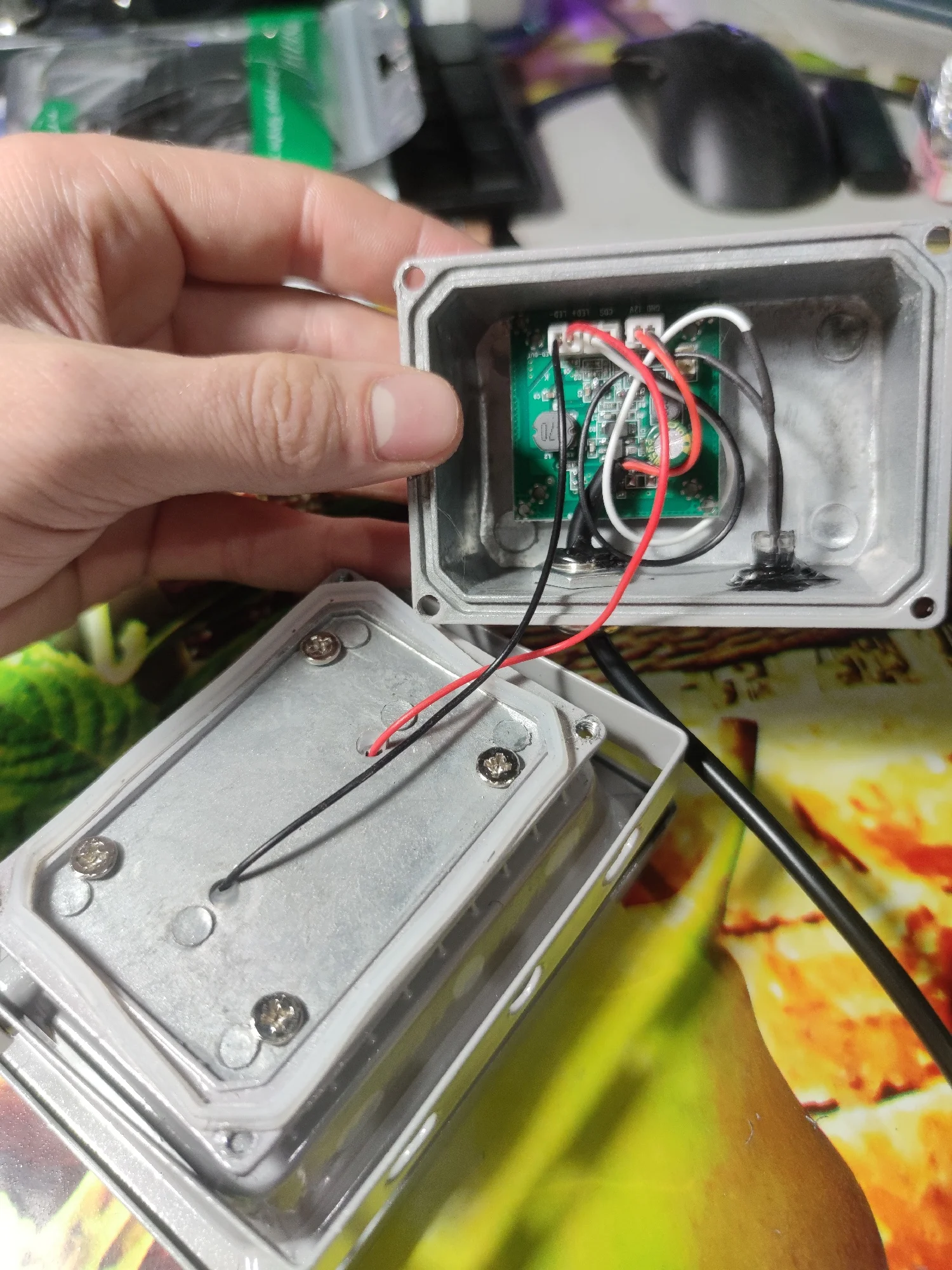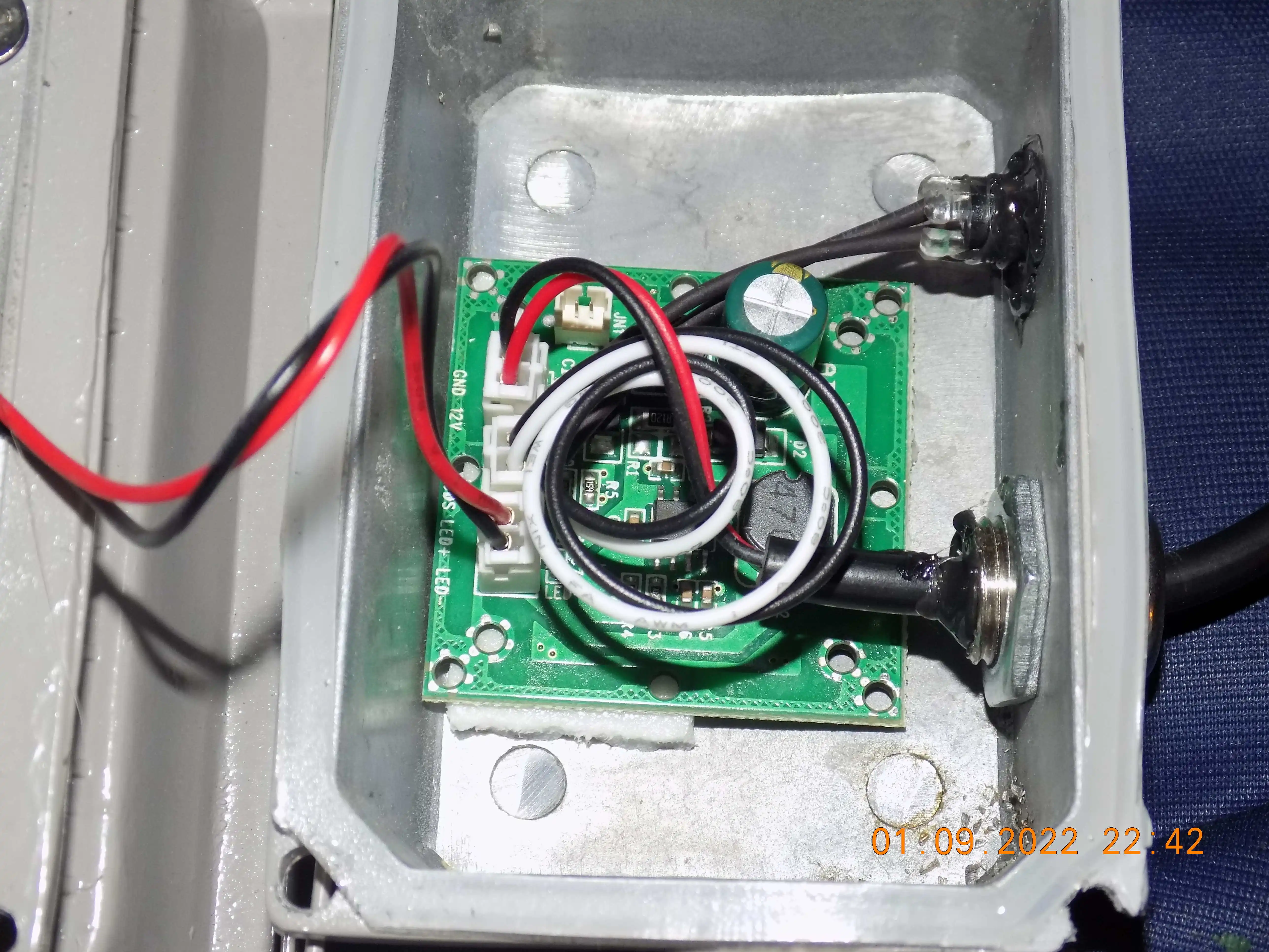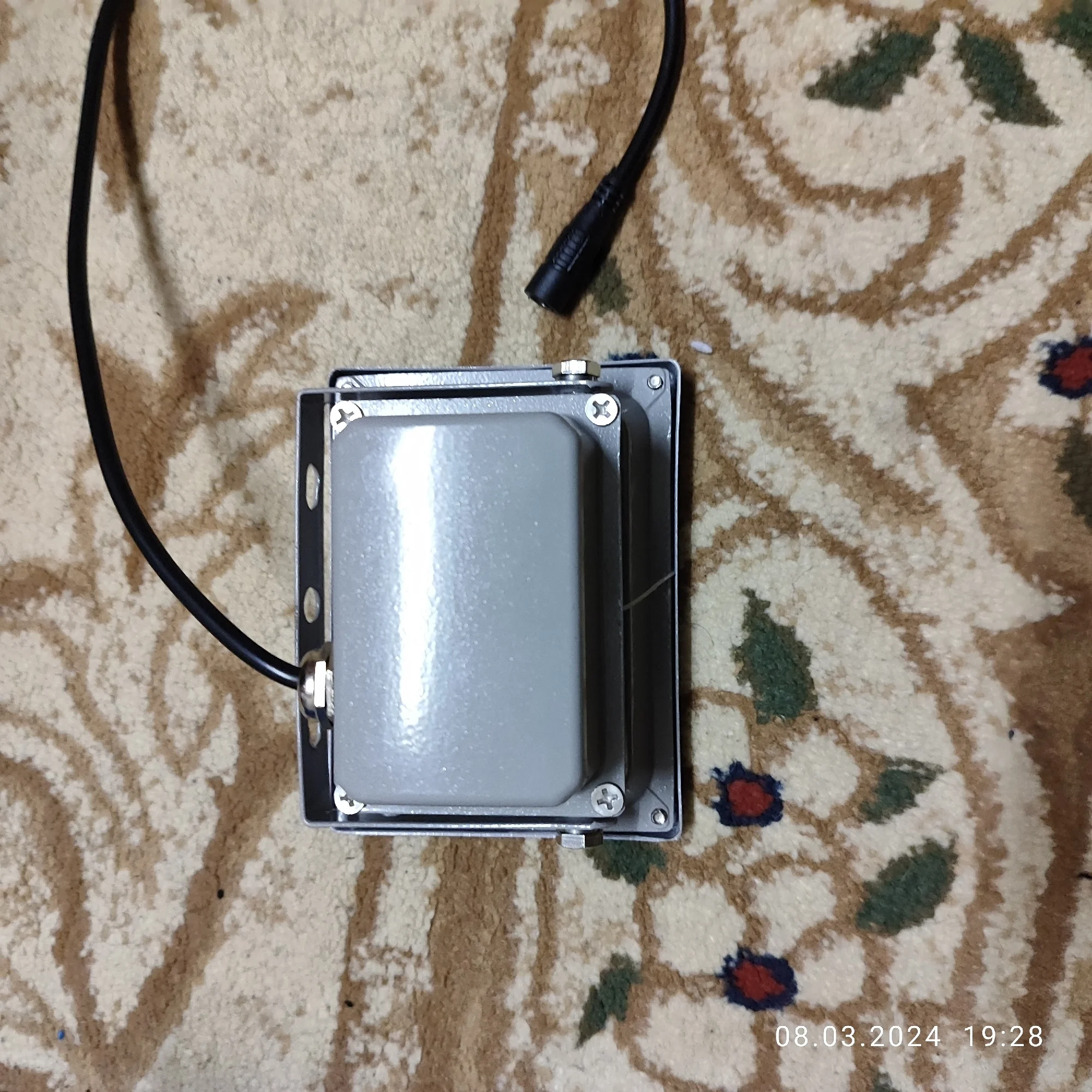 Доставка 21 день. Заказываю второй уже. Луч узкий. Диаметр линз 22 без маркировки нащелкиваются на сами диоды и капля клея чтобы не вибрировали, снимаются при необходимости. Чтобы угол был шире можно плату открутить и чуть согнуть основа алюминий, без фанатизма чтобы дорожки не треснули. Плата драйвера приклеена на герметик, разъемы датчик на герметике, Стекло действительно толстое стекло не пластик, есть прокладки силиконосодержащие. Где плата драйвера есть еще место, можно например внутрянку адаптера туда переместить и подводить 220 вольт. Изначально питание 12 Вольт, потр около Ампера. БП нужен 12 В 1 А минимум но лучше с запасом для надежности 1,5-2А. Метров на 30 светит, если нужно дальше 30и добавить еще, заменить линзы на ещё более узконаправленные ( буду экспериментировать с линзами 5-10 градусов) мне нужно 100 метров пробить. После экспериментов дополню что получилось.