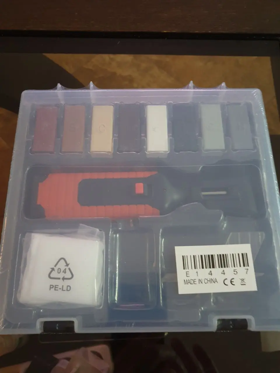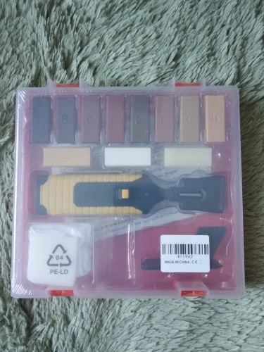 В комплект входит Универсальный ассортимент материалов, которые можно использовать для ремонта ламината и поверхностей в самых популярных цветах.