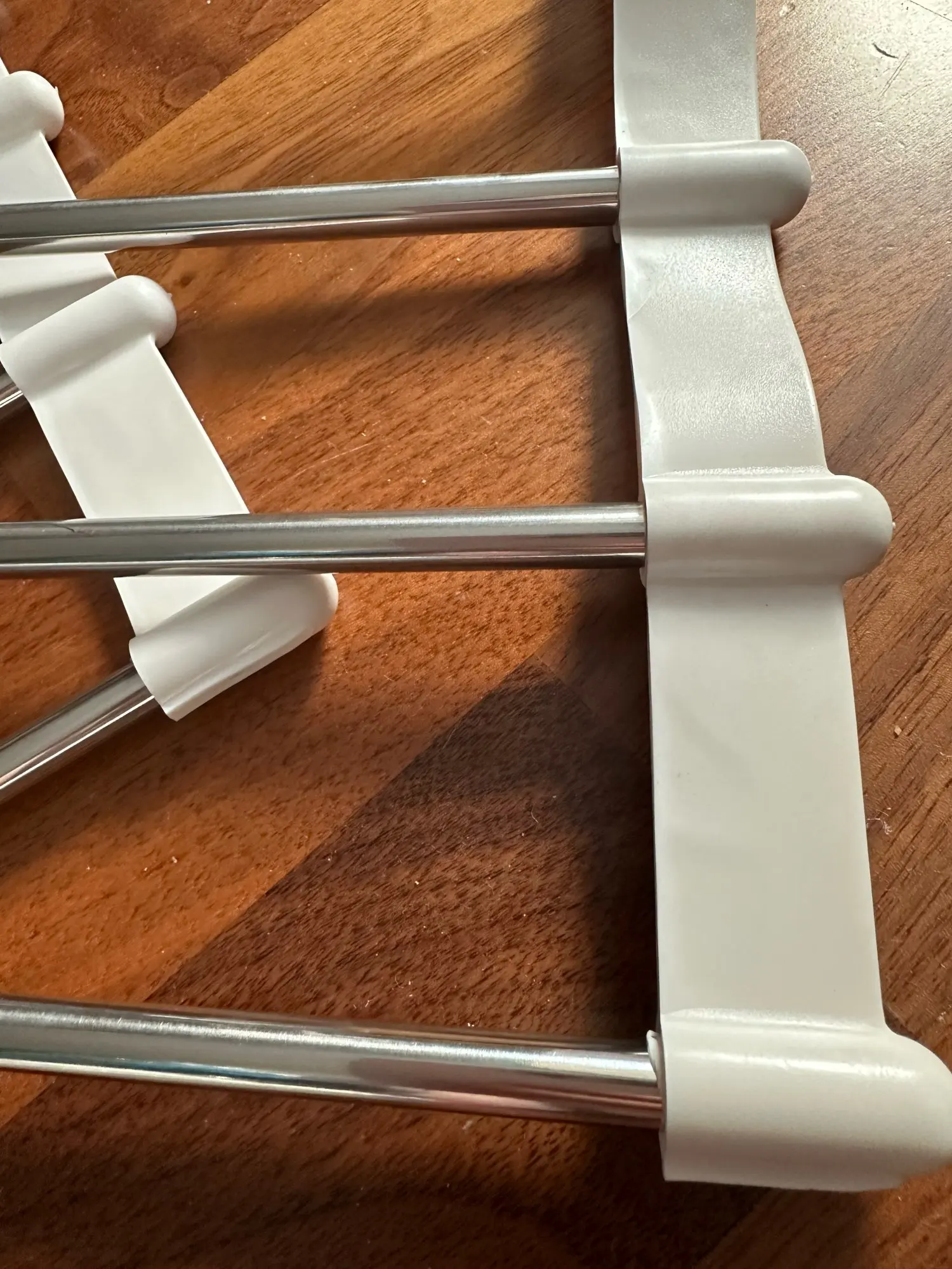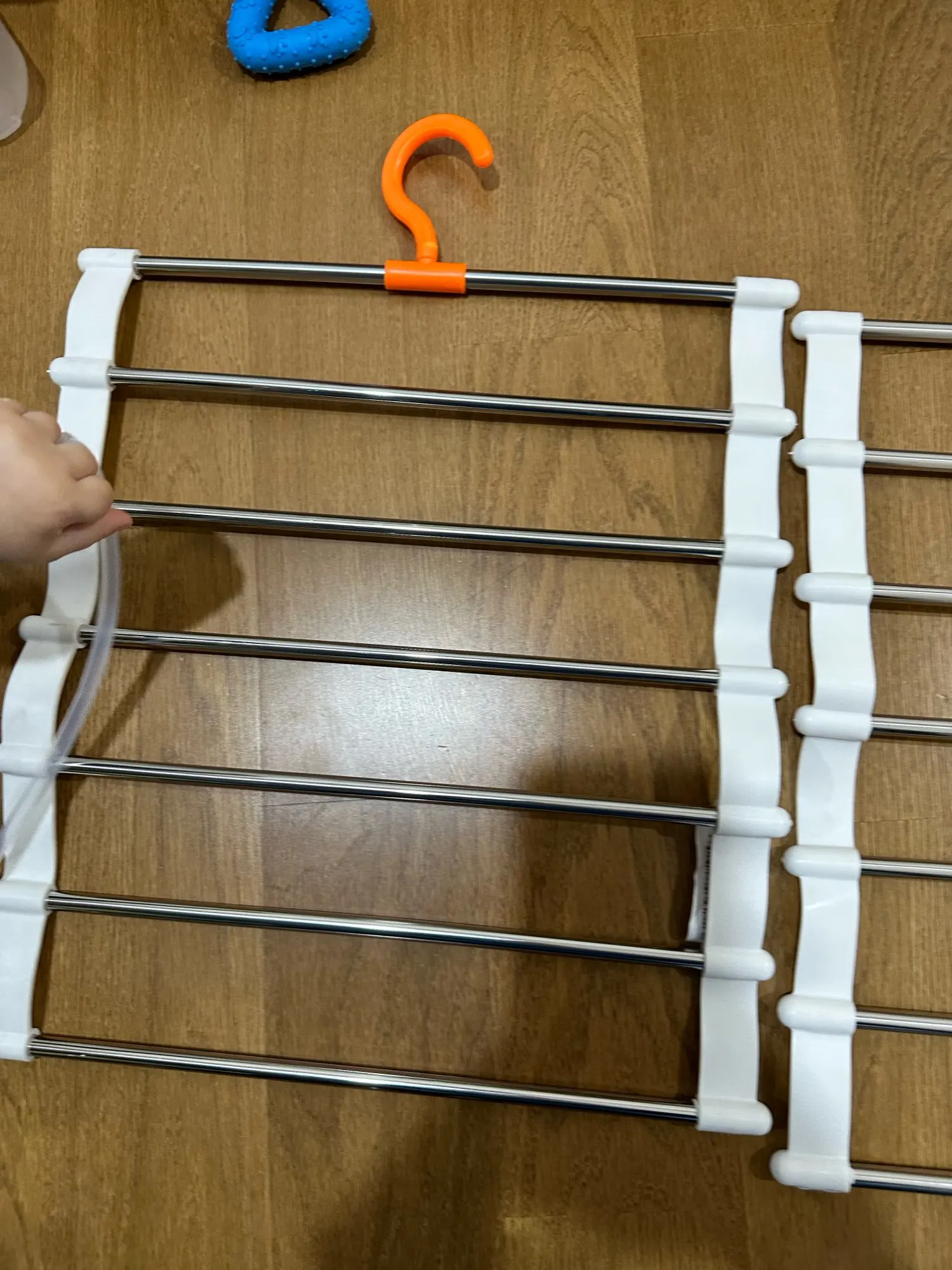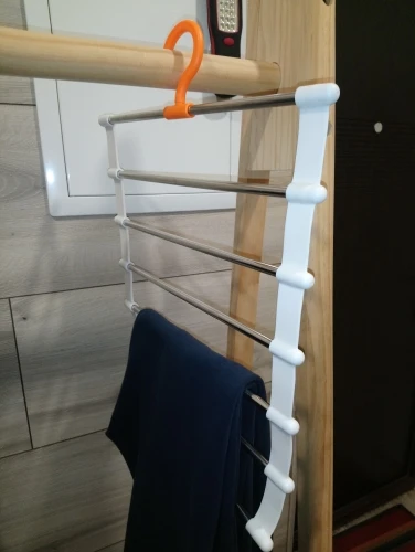Доставка 10 дней, с монетами цена 60 грн, Крапкая вешалка, давно такую искала, выдерживает 6 пар джинс. Перемычка из плотной резины, без запаха. Колышлики съемные. Рекомендую!