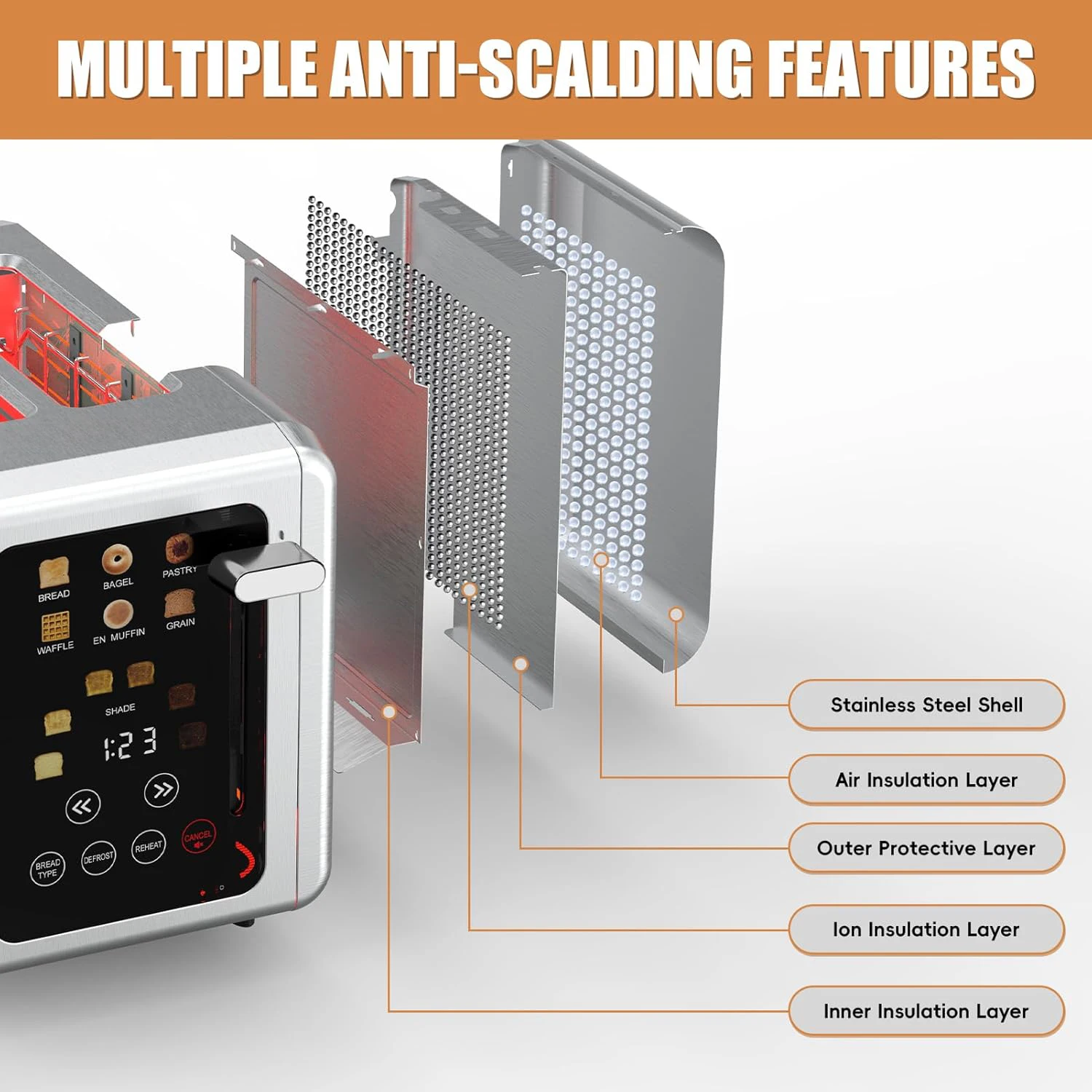 RAYFURN ЕС тостер из нержавеющей стали с двумя ломтиками и сенсорным экраном домашний автоматический тостер для хлеба для машины для завтрака 6 уровней брата