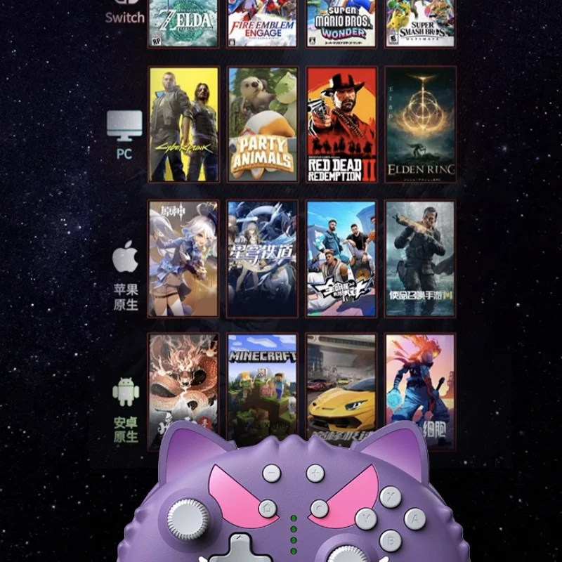 Игровой контроллер Фиолетовый Дьявол, беспроводной Bluetooth 200 Гц, с дистанционным датчиком зала, Abxy, вибрация, s ТВ, паровой выключатель, черный миф Wukong