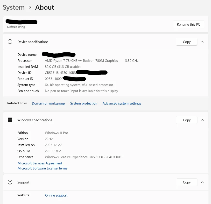 Прибыл быстро почтой SG, не был остановлен на таможне. Windows 11 Pro предактивирована (обновления установлены без каких-либо проблем), Ryzen 7840HS-Зверь, 32 ГБ DDR5 Ram, 1 ТБ Kingston SSD, WiFi6 и Gb-fast ethernet все работают отлично. Компьютер работает очень быстро, остается полностью тихим и прохладным при обычной нагрузке. Очень доволен!Michael P. 29 декабря 2023
