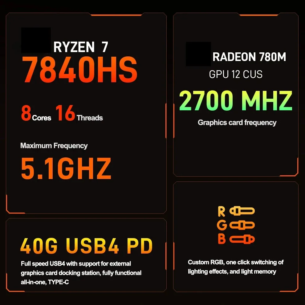 SZBOX Мини ПК Ryzen 7 7840HS/8845HS 32ГБ 1ТБ