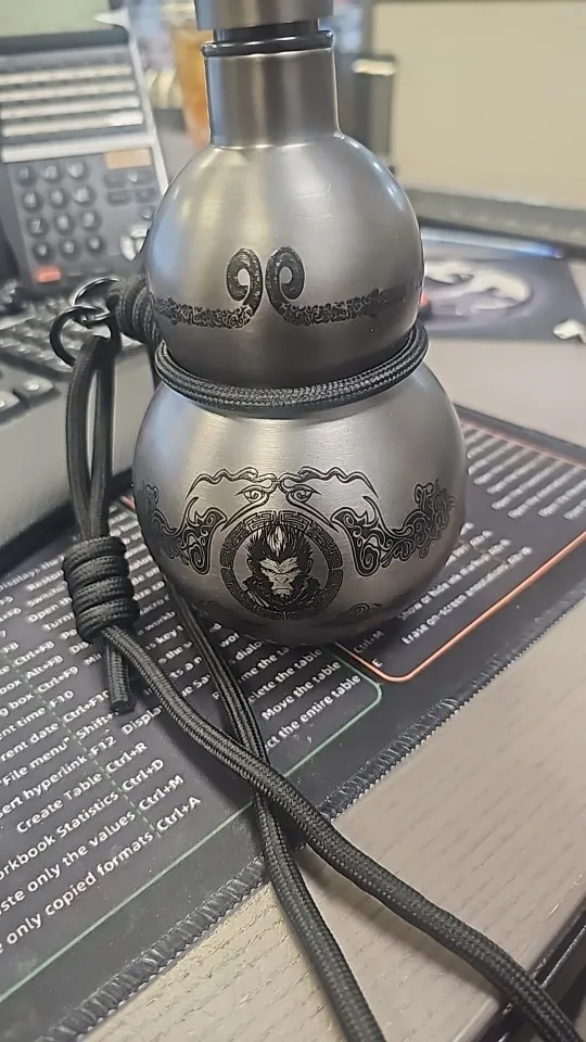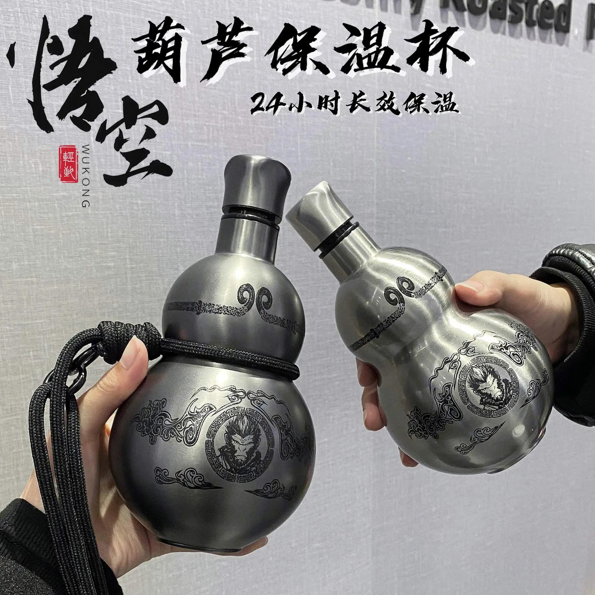 Introducing the new Black Wukong Style Gourd Insulated Cup, designed for those who appreciate both style and functionality. This double-layer vacuum insulated stainless steel thermos keeps your drinks hot or cold for hours, making it perfect for travel, work, or outdoor adventures.