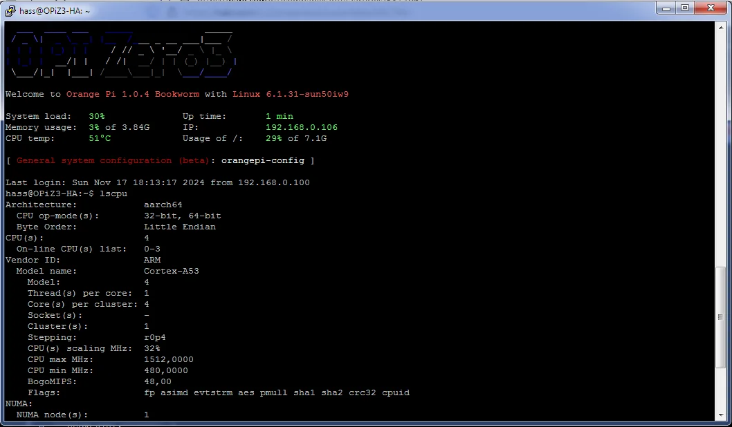 Почему то в Ubuntu определяется как H616 а не H618, а так хороший микрокомпьютер. Ubuntu, Debian, Orange pi ставятся без проблем а вот RetrOrangePi никак не могу поставить.