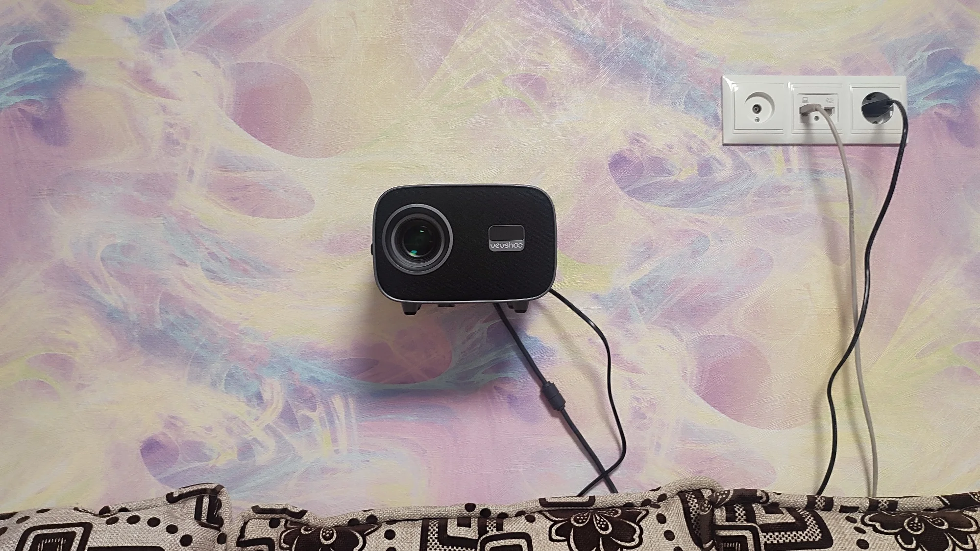 Это полноценный проектор, на стене есть отверстие для винта, прорезиненные ножки, для меня это один из лучших проекторов, которые я когда-либо видел. Это абсурдное качество изображения, достигающее размера 120 дюймов, фантастично, чтобы наслаждаться этим фильмом дома, похожим на кинотеатр, стоит помнить, что звук 5 Вт из него очень хороший????Но если у вас есть несколько динамиков, это еще лучше.