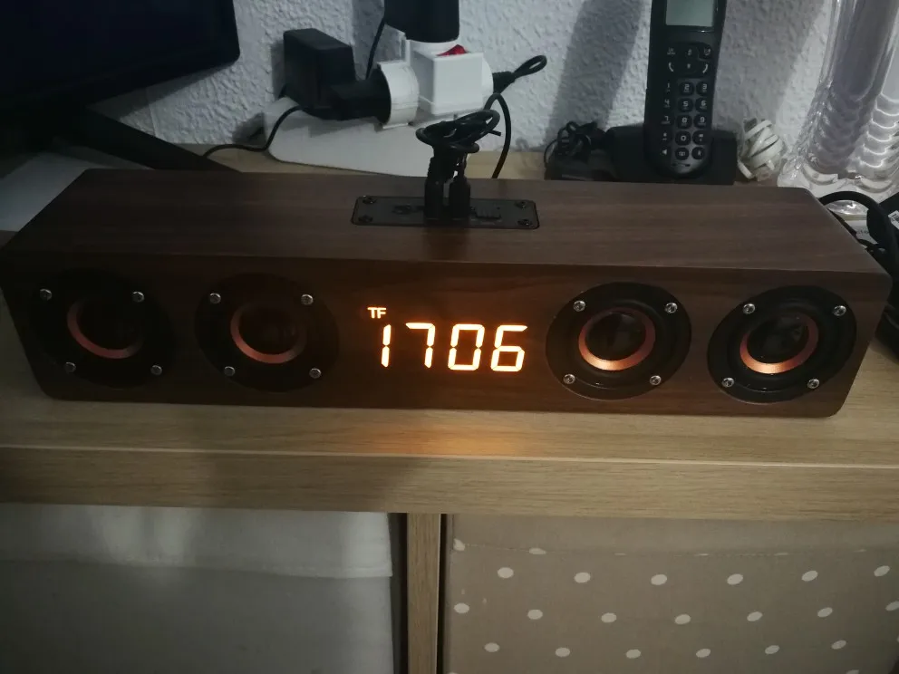 Деревянные часы bluetooth динамик