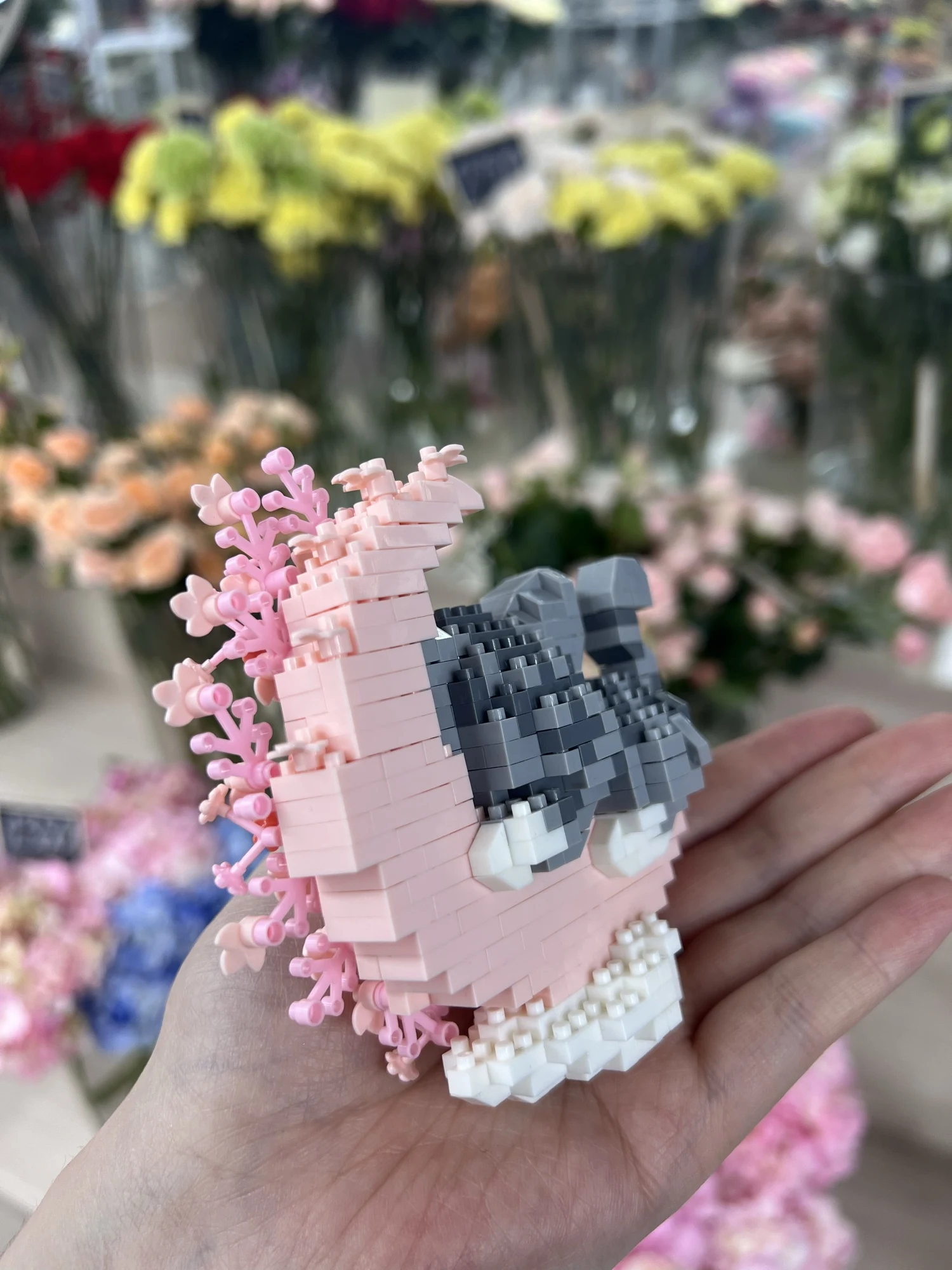 Милый конструктор, но процесс сборки был весьма неприятным. Инструкция недостаточно ясно показывает некоторые процессы, а весь последний эта с цветочками, оказался сущим сумбуром. Одной детали уха просто не было. Я заменила её, но общий вид мог быть испорчен. Некоторые детали слишком тугие или наоборот совсем не держатся, особенно единичные блоки, к которым в конце крепились цветы. Самый первый такой блок просто висел на одном своём креплении из-за чего постоянно выпадал. Сами бутоны цветов намертво крепятся к каркасу, из-за чего снять их при желании, неповредив деталь, проблематично. Товаром я довольна и теперь эта красивая фигурка будет отлично располагаться на одной из моих полок.