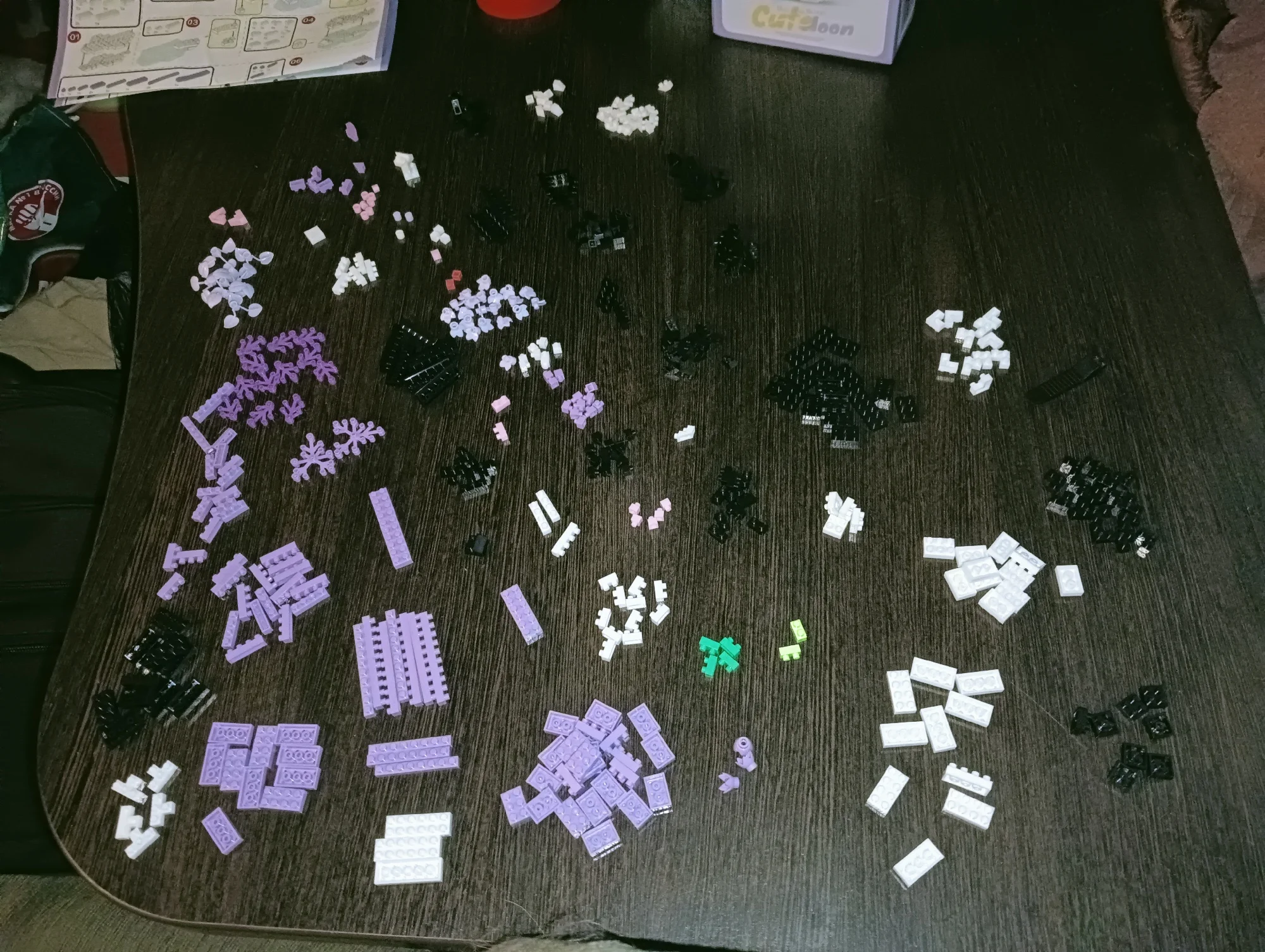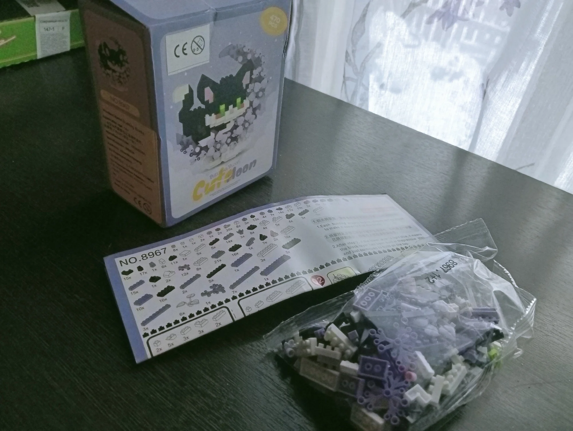 Конструктор хороший, милый. Пришёл с товарами 27 ноября (28-ого забрали с "Комбо"), но...был собран только 4 декабря :') Коробка была слегка мятой, но это мелочь - не в подарок, для себя, вот только блин...Детальки были прям ну ОЧЕНЬ тугими и вставлялись тяжело (были и исключения). Либо у меня слабые руки, либо детальки такие. Пришлось воспользоваться ещё одним "инструментом" для скрепления. Также во время процесса они упрыгивали куда-то, а маленький квадратик под мордочкой напротив - цеплялся хлипко. С тонкими фиолетовыми и сиренивыми деталями лучше быть по аккуратней - при случайном сгибе появляются не очень приятные белые следы у центра. Но эй, тут были и запасные детали и даже какая-то чёрная длинная чумба-юбма, которой также на инструкции нет. Забавно. Инструкция большая, но по не везде всё понятно. Чего стоял 1-ый шаг. В первый день, он мне обошёлся аж 5-6 часов (запутано было), если не считать 1-2 часовую сортировку. Вот вам мой совет: Если делать фигурку, то лучше с кем-то (конструктор был сделан в одиночку) или если у вас сильные руки, чтобы не пользоваться "вспомогательными объектами". Хотя тем, кому нравятся конструкторы - берите без проблем. Просто до этого мне не доводилось встречаться с ними...по крайней мере с теми, где много мелких деталей. Первый раз можно так сказать. Звезду пришлось снять ТОЛЬКО из-за тугих до жути деталек, которые мне не давали покоя, и запутанной слегонца инструкции. Из-за неё фигурка , в каких-то частях, несколько раз переделывалась. А во всём остальном – нормально. Хорошая киса на фиолетовой / сиреневой луне.