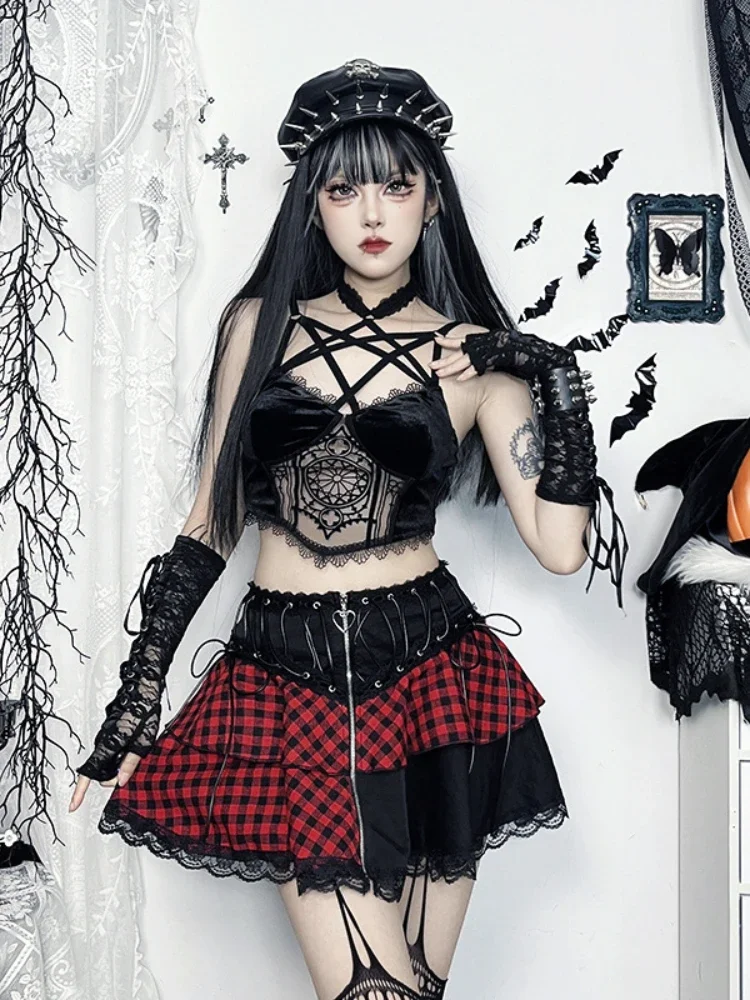 - Женская готическая юбка-трапециевидной формы с высокой талией