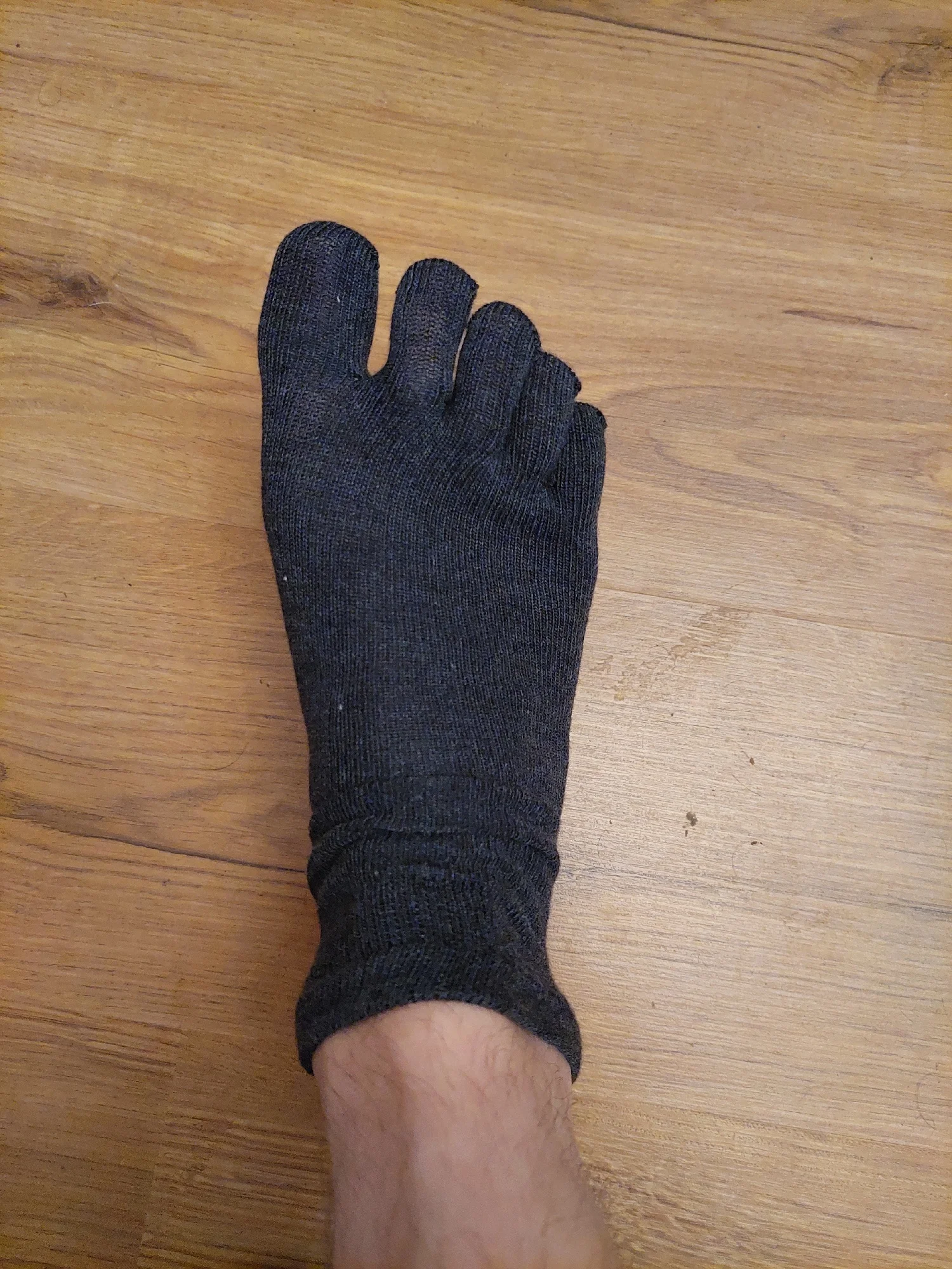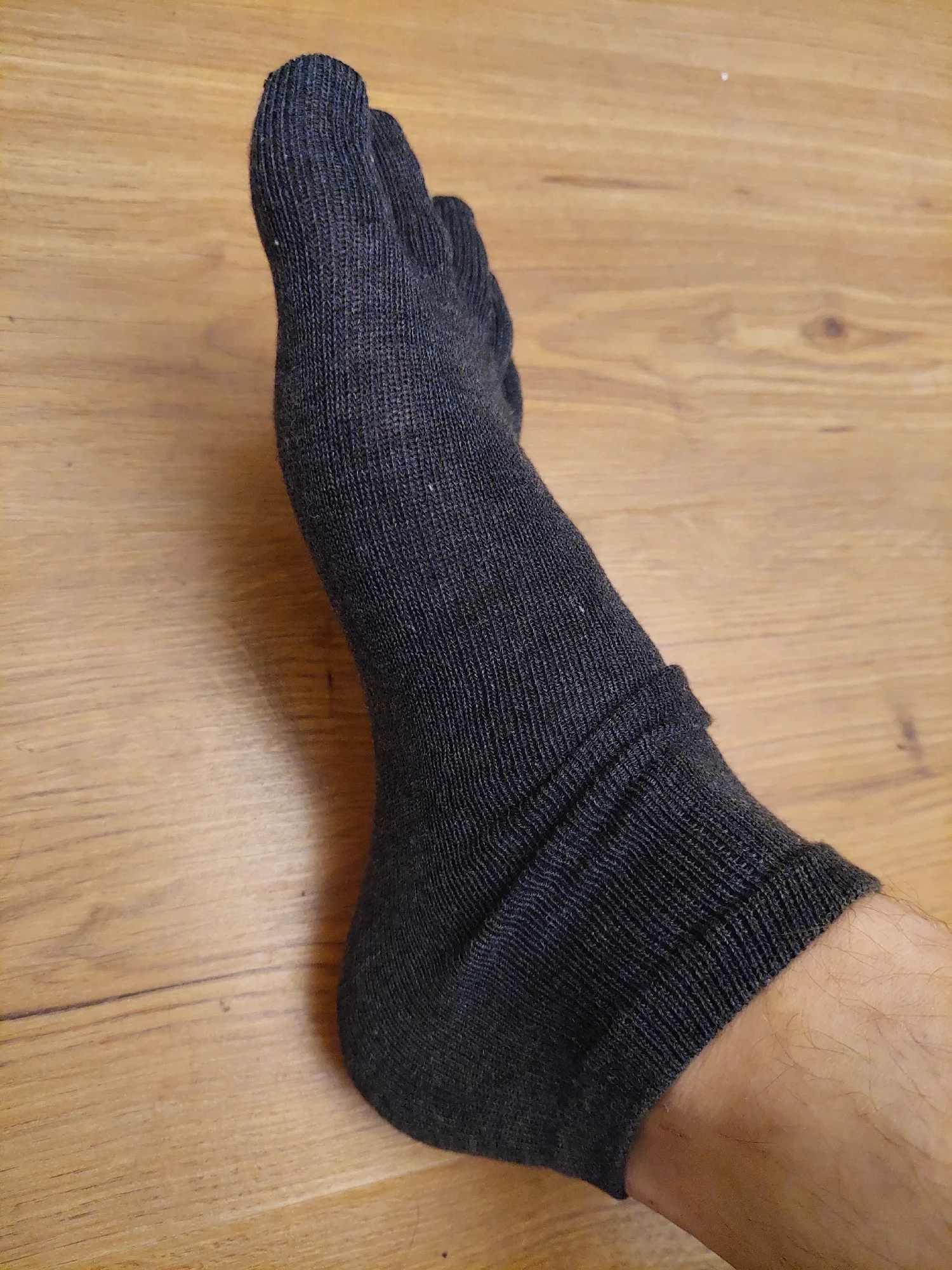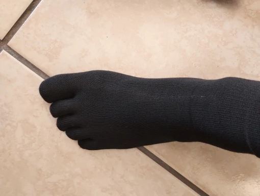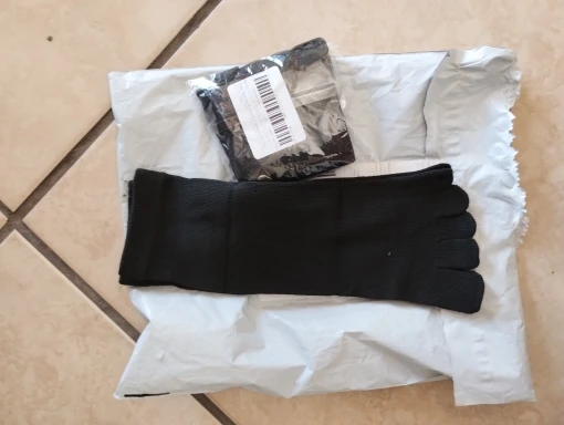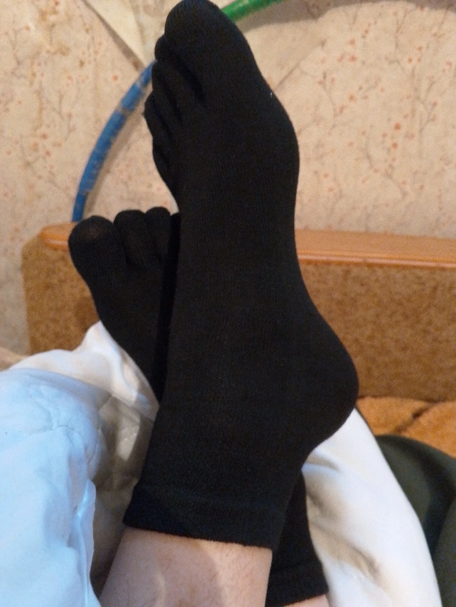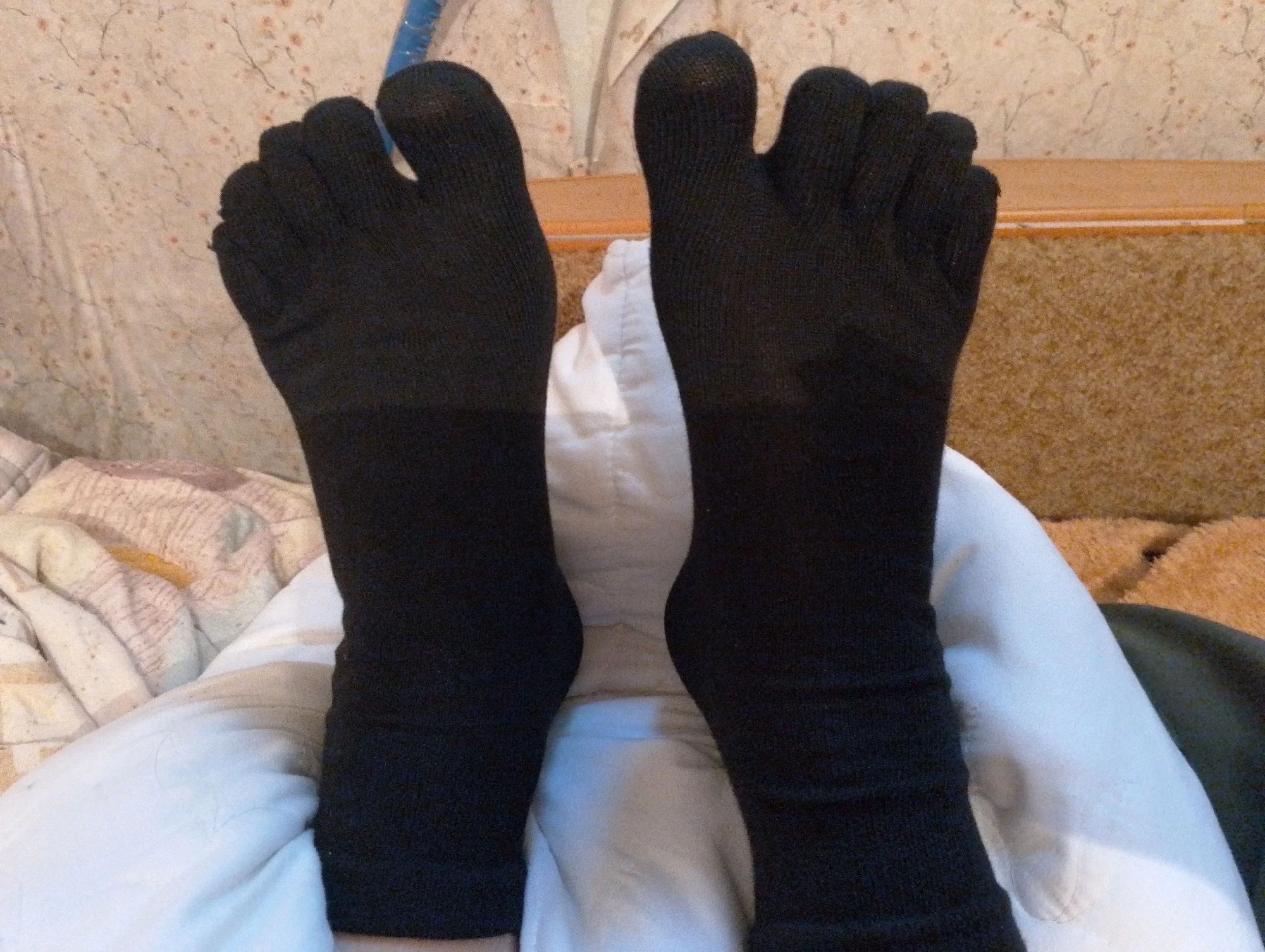 Посылка пришла быстро и без следов. Носки служили на моей ноге. Я подумал, что это странно, что они прямые, как перчатка для ног. Но они хороши и у них есть пальцы. Ха-ха.