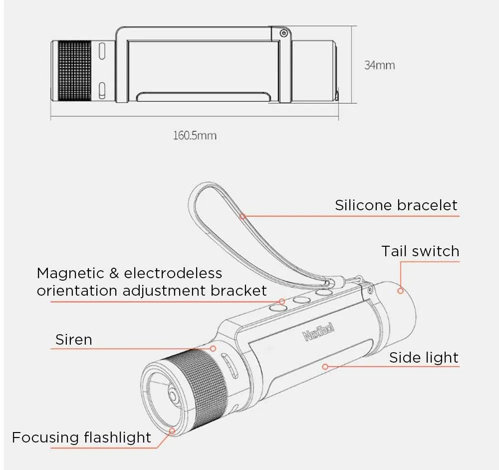 Инновации и технологии в одном | - Основной свет: Фонарик 1000 лм 240 м Режимы затемнения и масштабирования - Боковой свет в качестве рабочего освещения: 360° вращение Лампа для магнитного обслуживания - Боковой свет в качестве оповещения SOS: Стробоскоп с красным и белым сигнальным светом С сиреной с высоким децибелом одновременно - Может быть аккумулятором для мобильного телефона - Быстрая перезарядка Type-C (USB-C) |