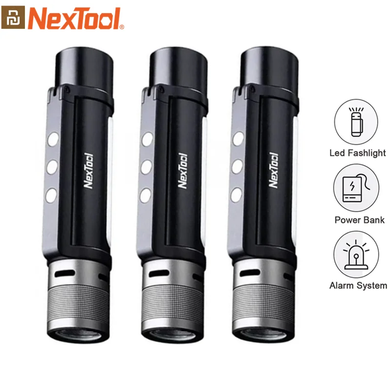 Многофункциональный дизайн 6-в-1, фонарик, походный фонарь, рабочий фонарь, сигнальная лампа, мобильный источник питания, звуковая и световая сигнализация.