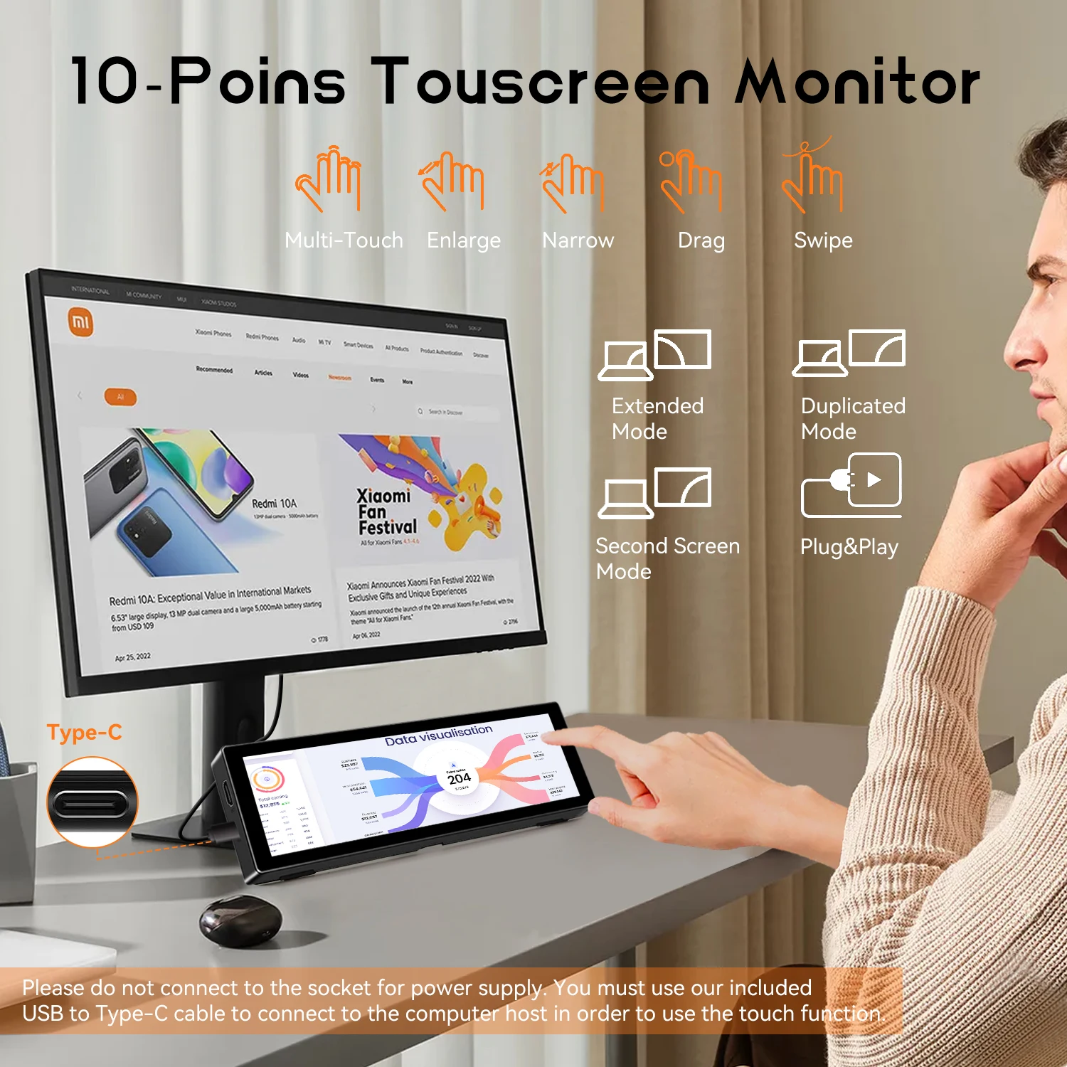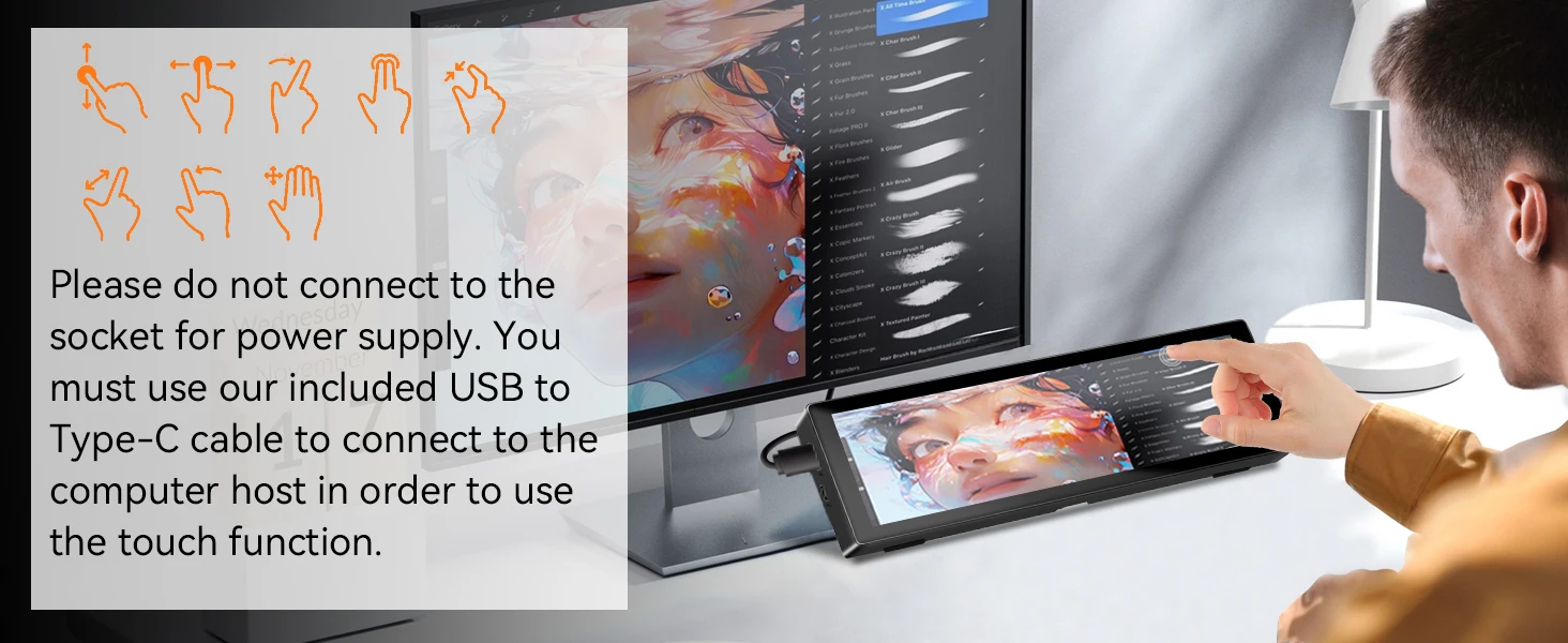Используйте USB-кабель для подключения USB-порта хост-компьютера к интерфейсу питания сбоку экрана для обеспечения питания