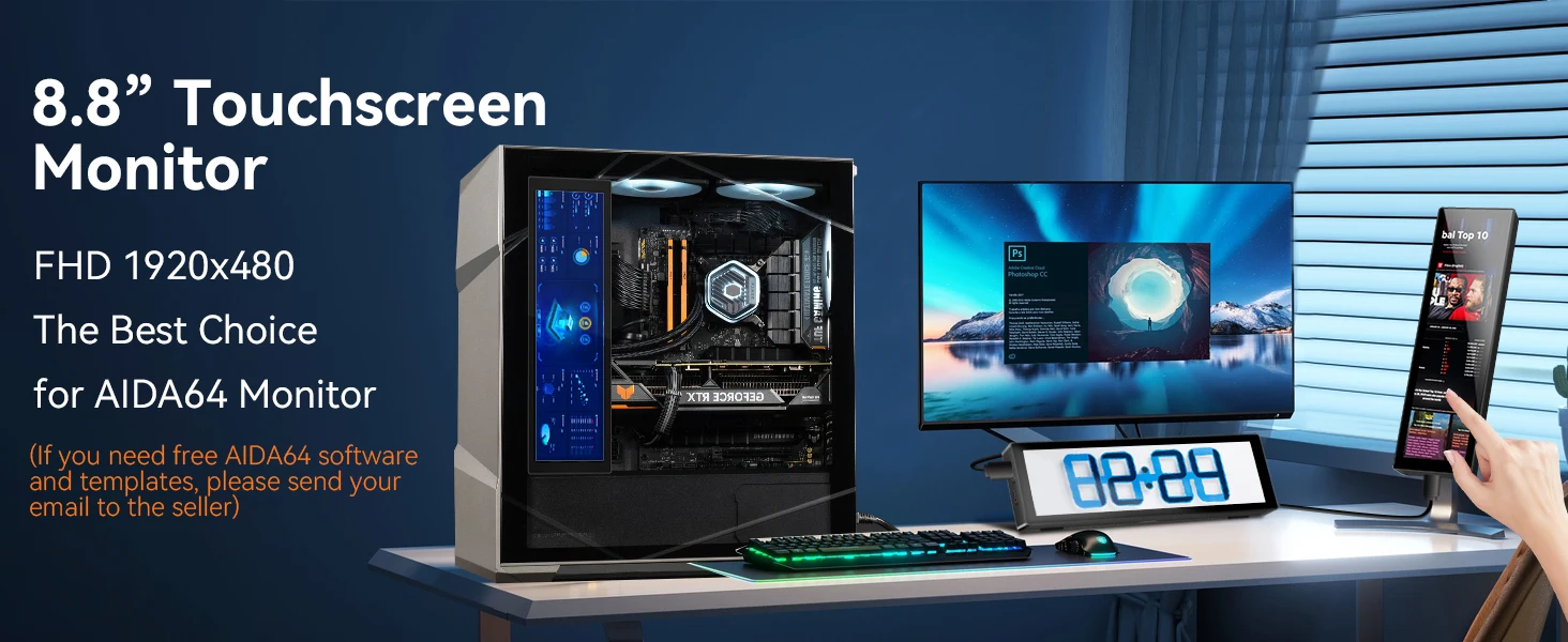 8,8 дюймовый HDMI Сенсорный длинный широкий монитор 1920x480 PC температурный дисплей ПК сенсорная панель дисплей RPi AIDA Малый удлинитель монитор