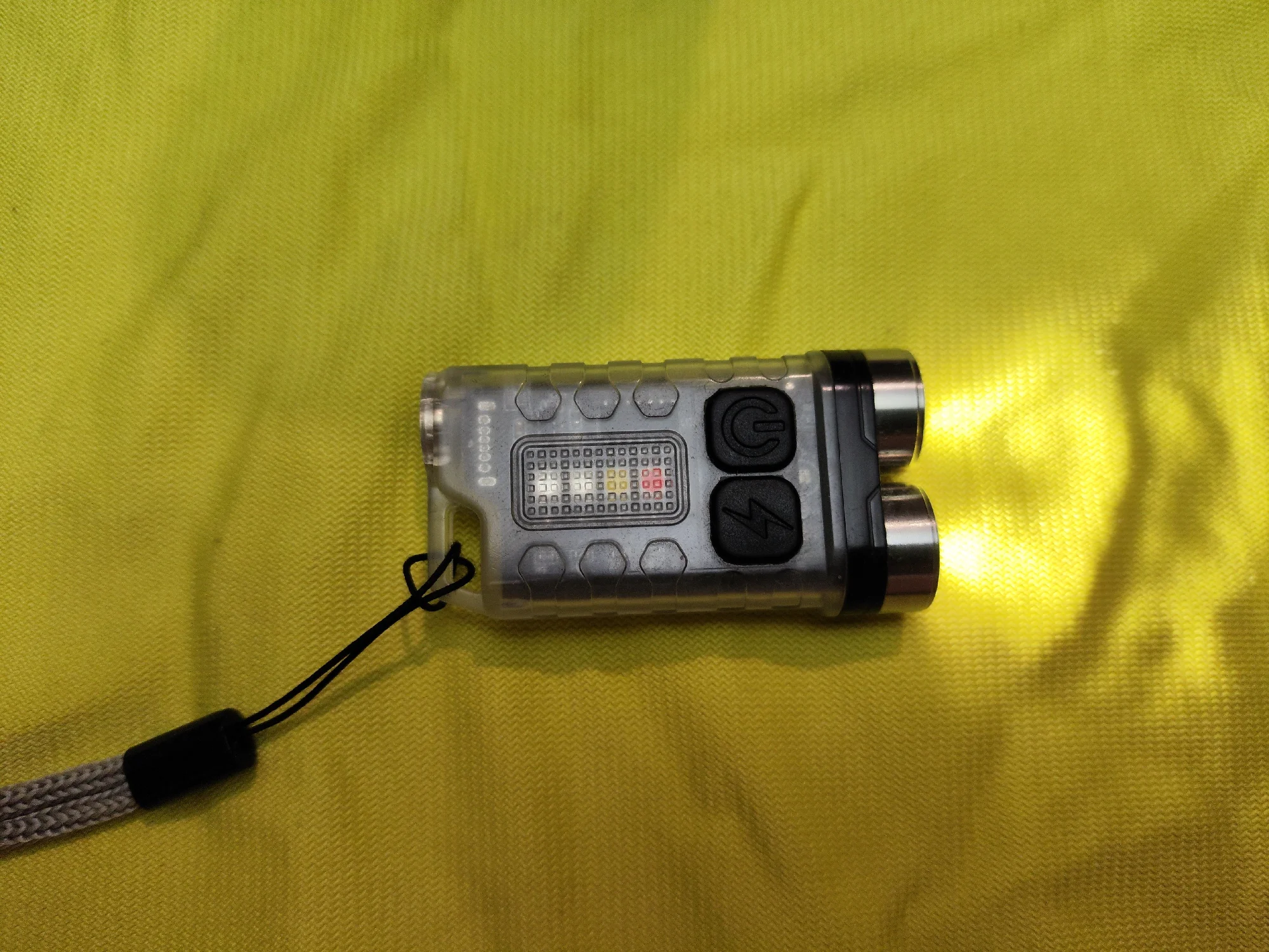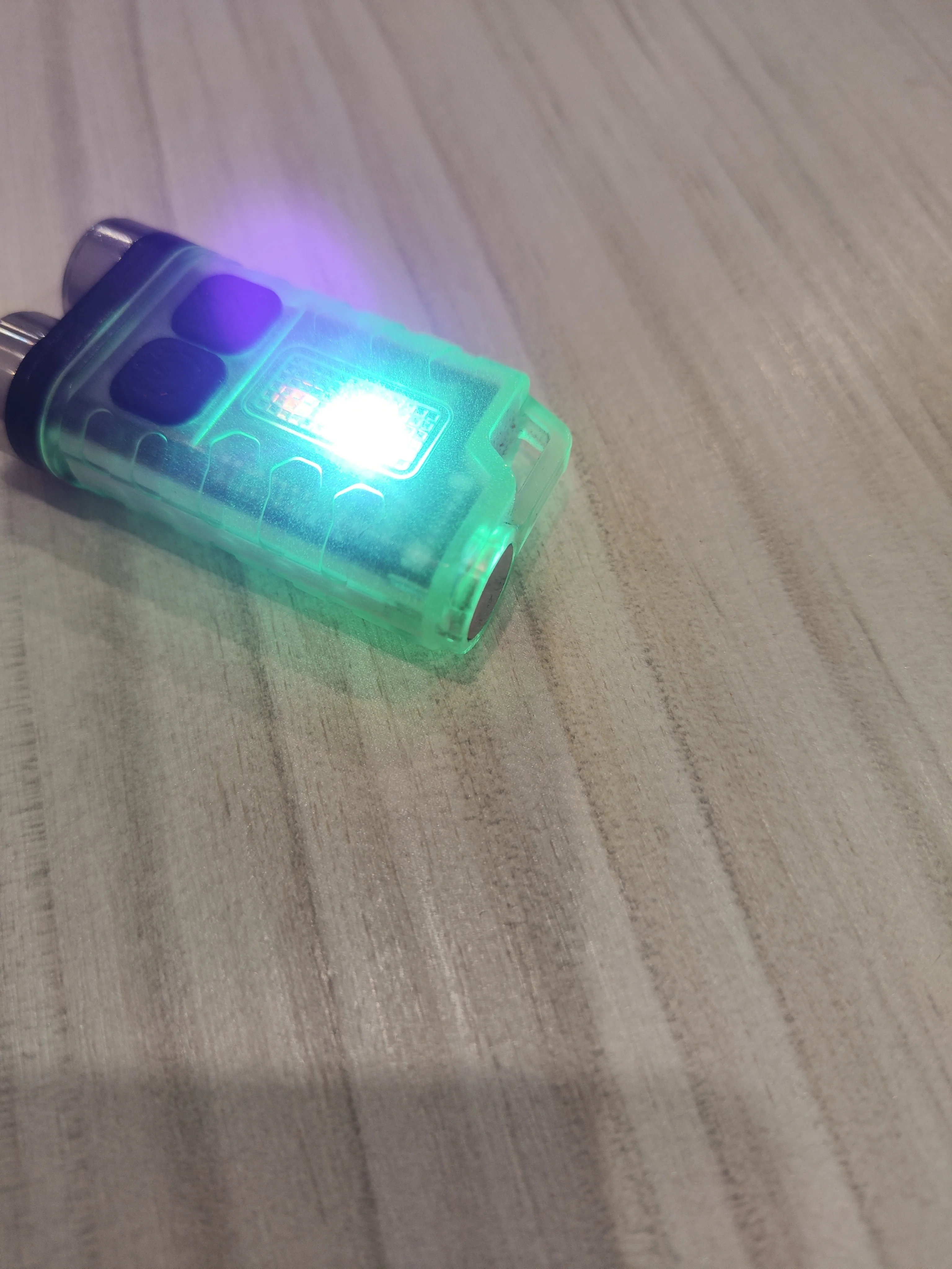 Цена оказалась завышена, покупал якобы по акции и потратил бонусы, а потом нашел такой же небрендированный фонарь но с ценой ниже и без всяких акций, за это минус звезда. Вторую звезду снял за то что пластик фонаря в том месте где крепится магнит пришел с трещинами и одна из этих трещин увеличивается, думаю это негативно скажется на влагозащите фонаря и магнит со временем потеряется. Теперь по самому фонарику. Вещь хорошая, яркость в турбо со свежим зарядом удивляет как для его размеров, немного не нравится самый низкий режим основного света, хотелось бы чтоб он был вроде мунлайта, не более 1-5 люмен, но имеем что имеем. Дополнительные светодиоды кроме красного для меня почти бесполезны, особенно взывает недоумение холодный белый при зажатой кнопке, пальцами перекрывается практически вся область свечения, кнопка наверно должна находится на противоположной стороне от света, чтоб это хоть как то работало, ну да ладно, эргономика тут в силу малых размеров в любом случае страдает. Ультрафиолет очень слабый и практически не работает даже по деньгам. Возможно в черном исполнении ситуация будет получше, так как флюоресценция при включении ультрафиолета моментально реагирует и вносит в свет паразитный зелёный оттенок, что возможно мешает нормальной работе, но в качестве неяркой вариации бокового света пойдет к применению. Полицейскую мигалку включать при стражах правопорядка не советую, могут возбудиться, во многих странах запрещено использовать данную вариацию световых сигналов кому либо кроме полиции, не знаю зачем ее тут добавили. Оба режима света имеют память, на каком выключили на этом и включится, видел что на старых версиях это не так, то есть производитель потихоньку совершенствует модель. Свет скорее теплый чем холодный, возможно из за этого есть жалобы что он уже не так ярко светит как первые выпуски с холодным светом. Ещё хотелось бы съёмную клипсу как на старших моделях, чтоб можно было к козырьку кепки прицепить и использовать как налобный в ситуациях когда руки заняты. В целом фонарик неплох, но есть два но. Первое это цена, 10 баксов за него перебор, баксов 7, как я нашел в другом магазине, было бы самый раз. Второе это размер, как для наключника, все таки он великоват, что то вроде boruit v1 или s11 на ключах смотрится уместнее, ношу его просто в кармане сумки, с петлёй для быстрого извлечения.