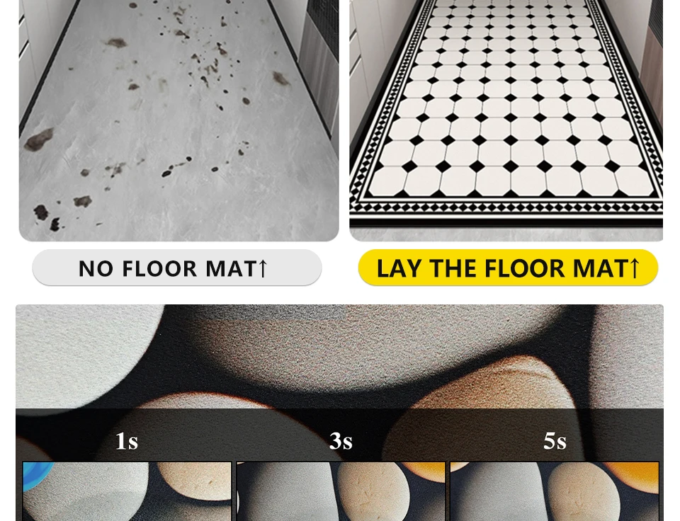 Этот напольный коврик изготовлен из материала диатомной грязи. Его основная особенность-водопоглощение, маслопоглощение, быстрое высыхание и противоскользящее покрытие. Предотвращает попадание грязи, уменьшает количество кухонных хлопот, и в то же время его мягкая и эластичная ткань также может защитить посуду от падения и поломки.