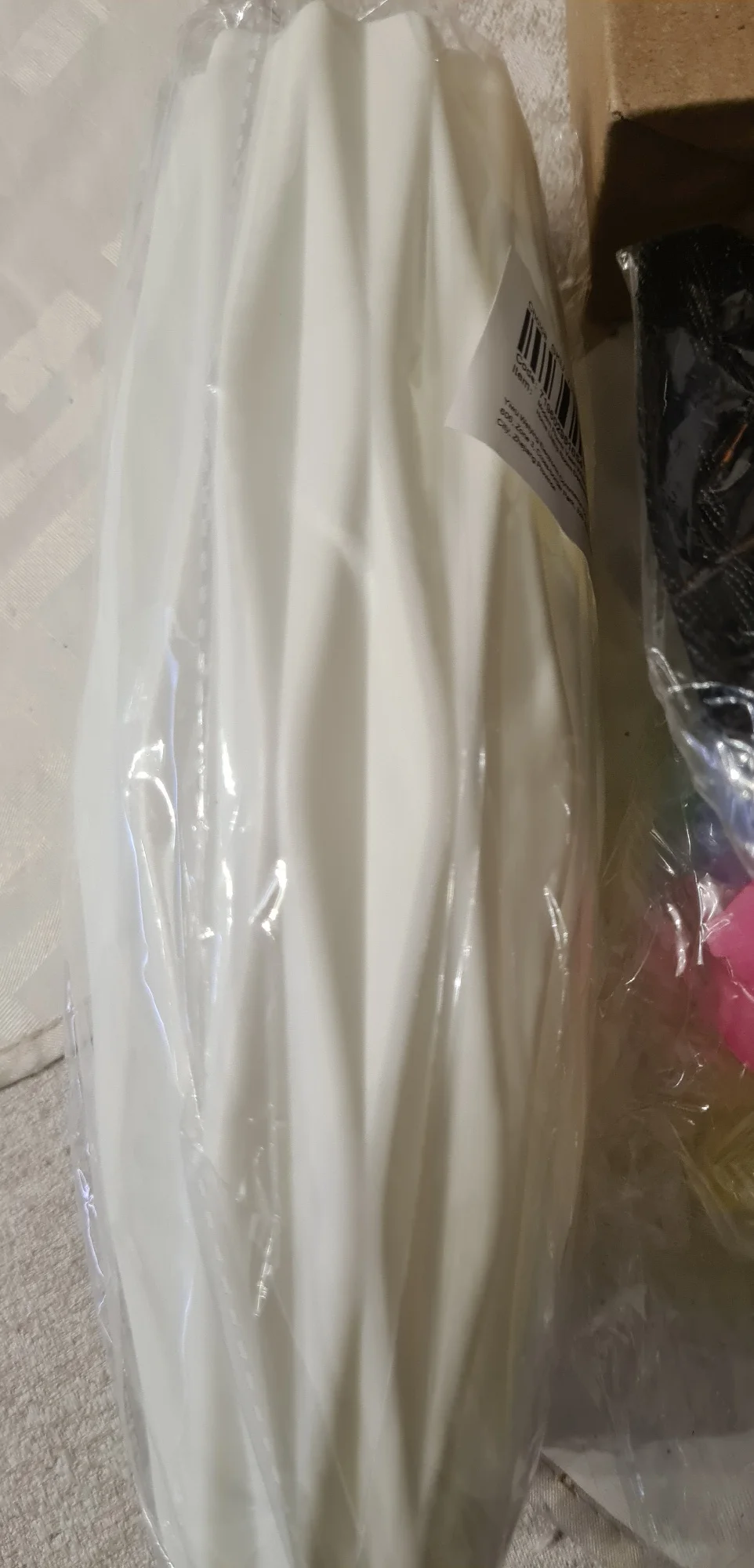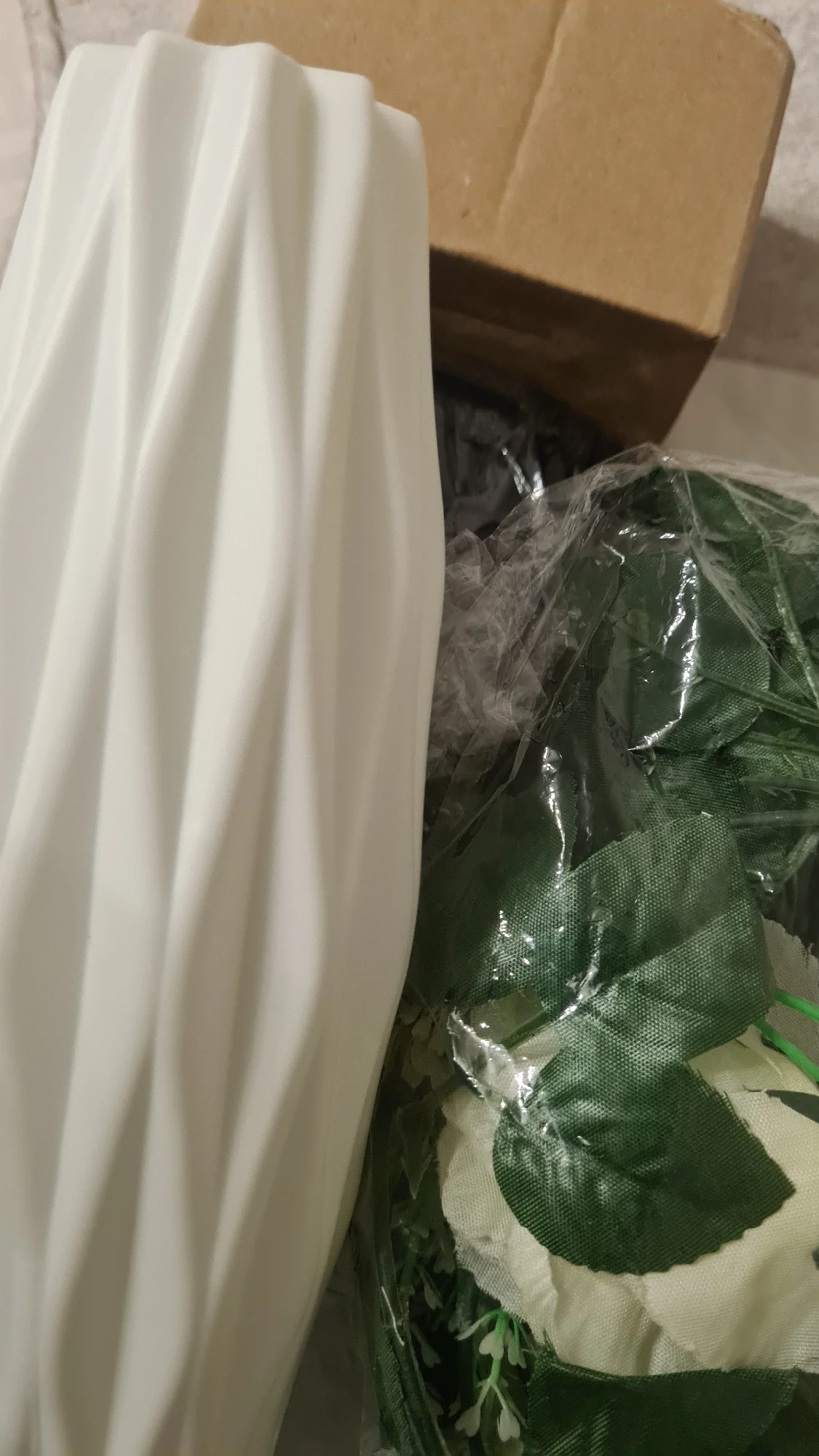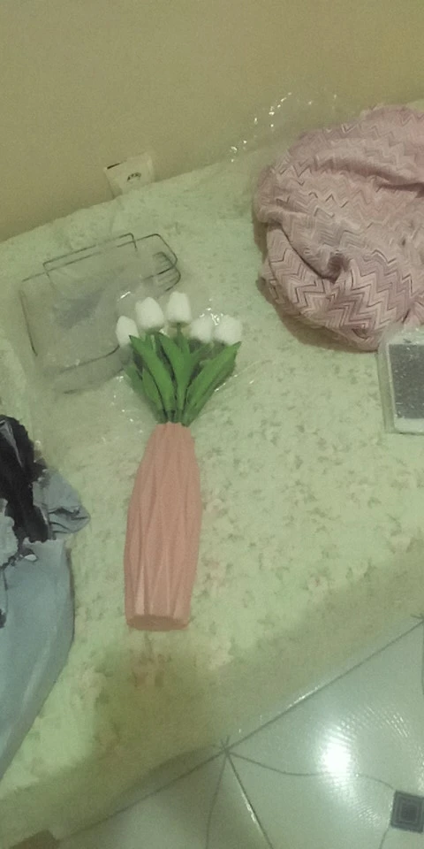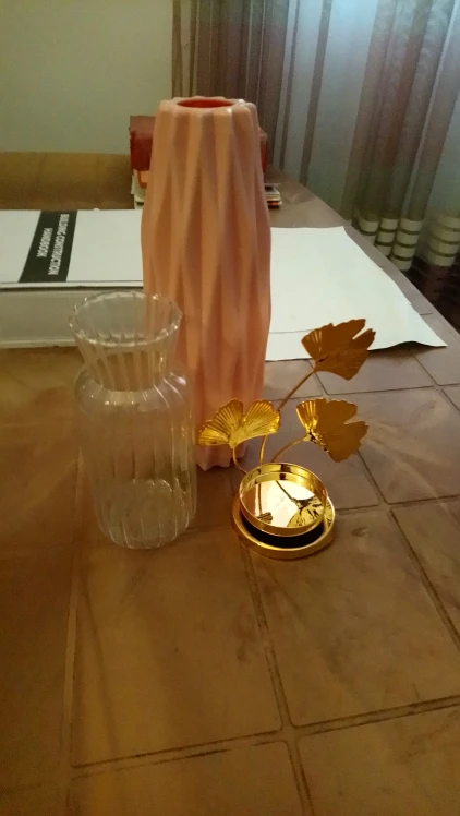 Получил заказ в течение 3 недель быстрой доставкой. Качество материала удовлетворительное, хотя стекло немного тонкое. Пластиковая ваза действительно хорошо смотрится и была в хорошем состоянии. Подсвечник тоже был хорош, но один край был изогнут из-за менее безопасной его упаковки.