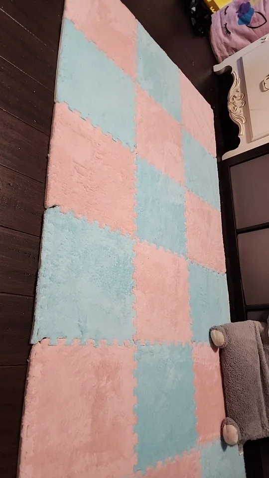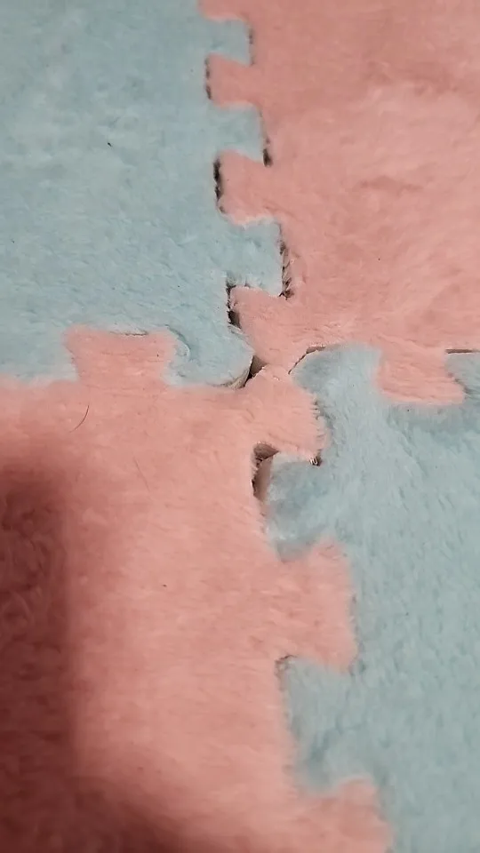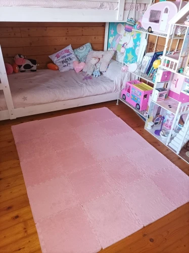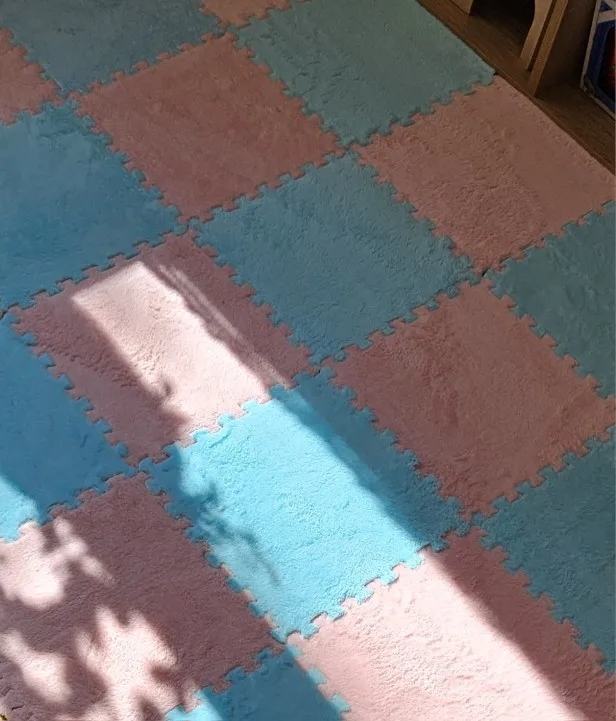 1. Материал-поверхность пушистый бархат из хлопка и полиэстера, теплая и удобная. Дно-пена EVA высокой плотности, обеспечивающая отличную поддержку и амортизационный эффект для всех твердых поверхностей пола. Защищает полы или людей от царапин и вмятин. (Необходимо размещать на сухой поверхности, в ванную не рекомендуется класть.)