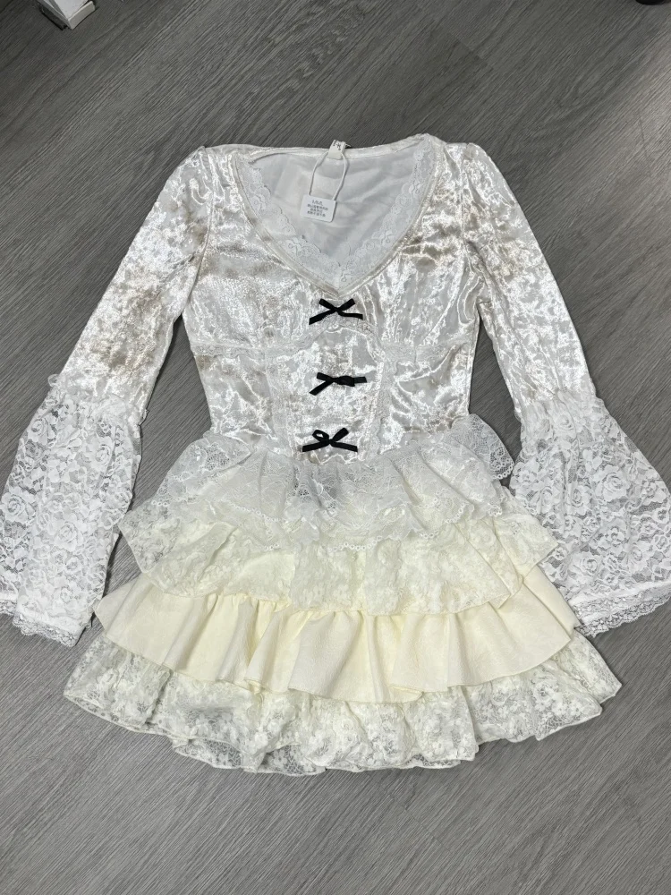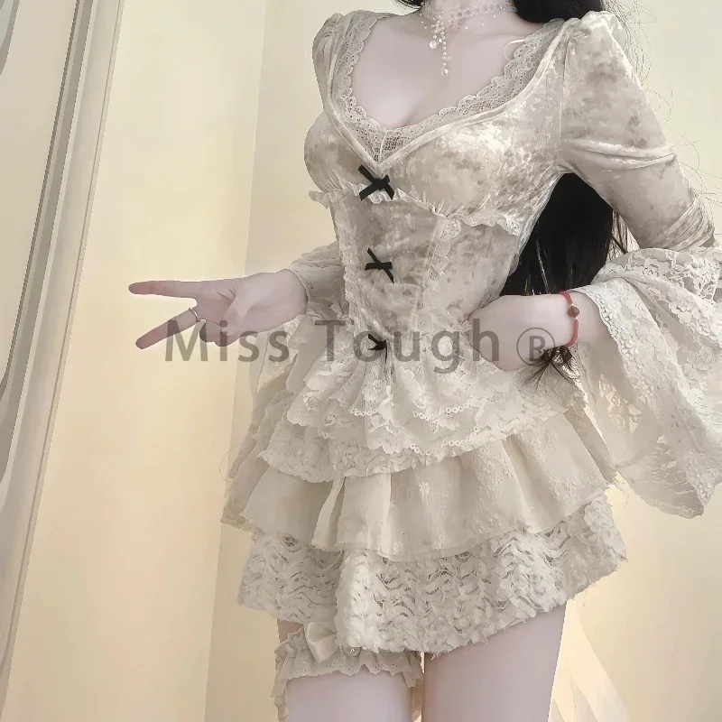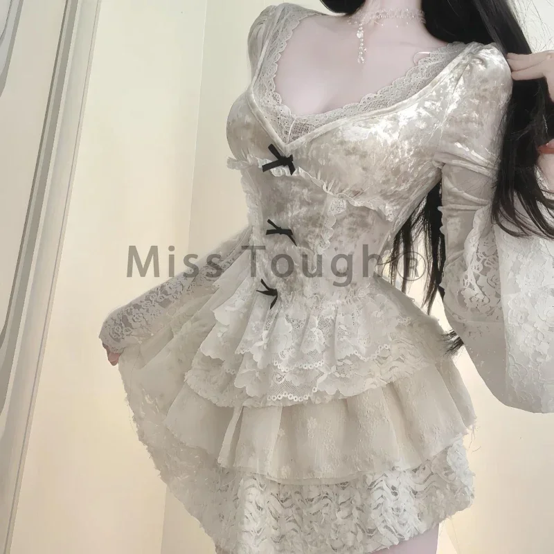 - Женский кружевной комплект с юбкой и длинными рукавами, S-2XL, цвет в...