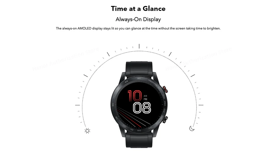 Всегда включенный AMOLED-дисплей продолжает гореть, поэтому вы можете смотреть на время, не требуя времени, чтобы экран был ярким.