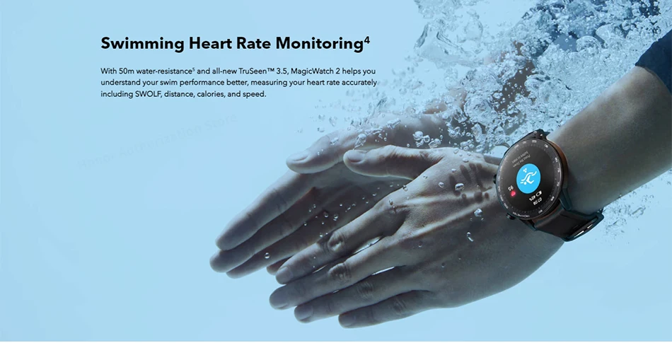 С водонепроницаемостью 50 м5 и совершенно новым TruSeen. 3.5, MagicWatch 2 поможет вам лучше понять эффективность плавания, точно измеряя частоту сердечных сокращений, включая SWOLF, расстояние, калории и скорость.